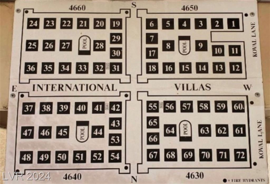 From Las Vegas Blvd. go East on Tropicana; North on Koval Ln; Turn into middle enterance of International Villas & go to Bldg.14