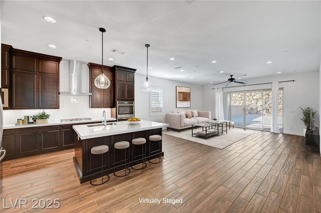 Welcome to this stunning single-story gem in Summerlin, located in the gated community of Crystal Canyon.  Inside, you'll find an open floor plan with a large great room and a show stopping chef's kitchen, with stainless appliances, double oven, boasting luxurious quartz countertops, an abundance of storage including a walk-in pantry, a stylish backsplash. You'll also find spacious living with bedrooms that feature private en-suites, offering comfort and privacy.  A versatile den adds flexibility to the layout.  Centrally located off Far Hills and the 215, this home offers convenience with easy access to Downtown Summerlin, the Las Vegas Ballpark, and more. Don’t miss this exceptional opportunity to own a piece of Summerlin’s finest living in an unbeatable location!