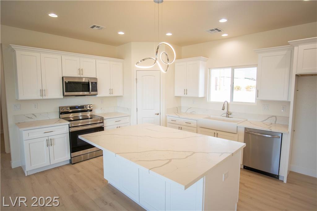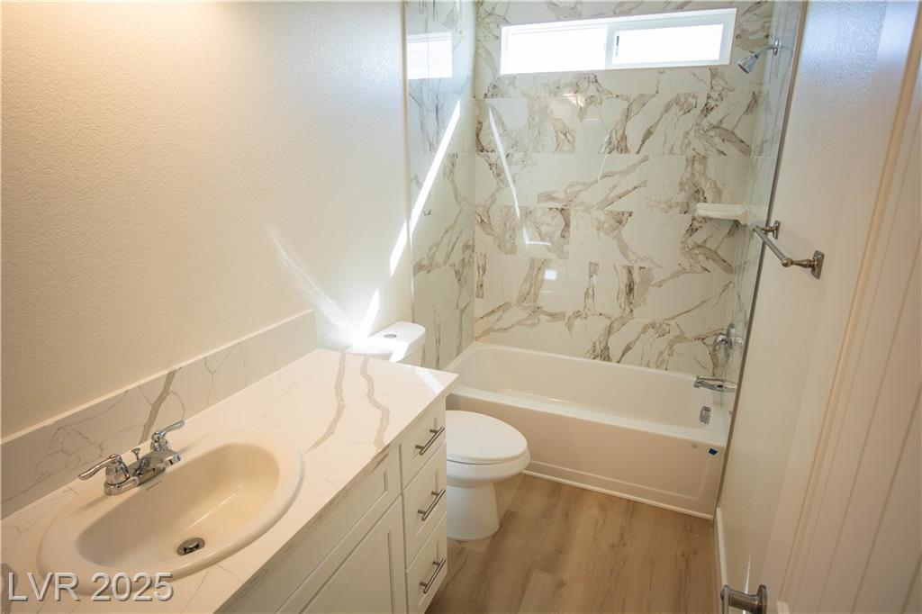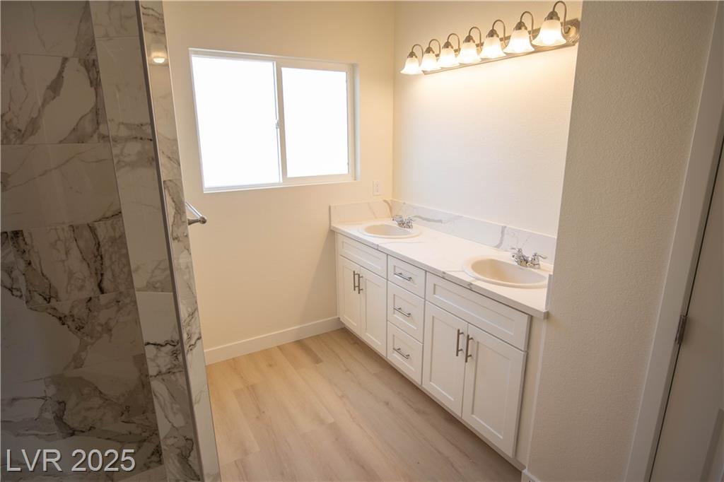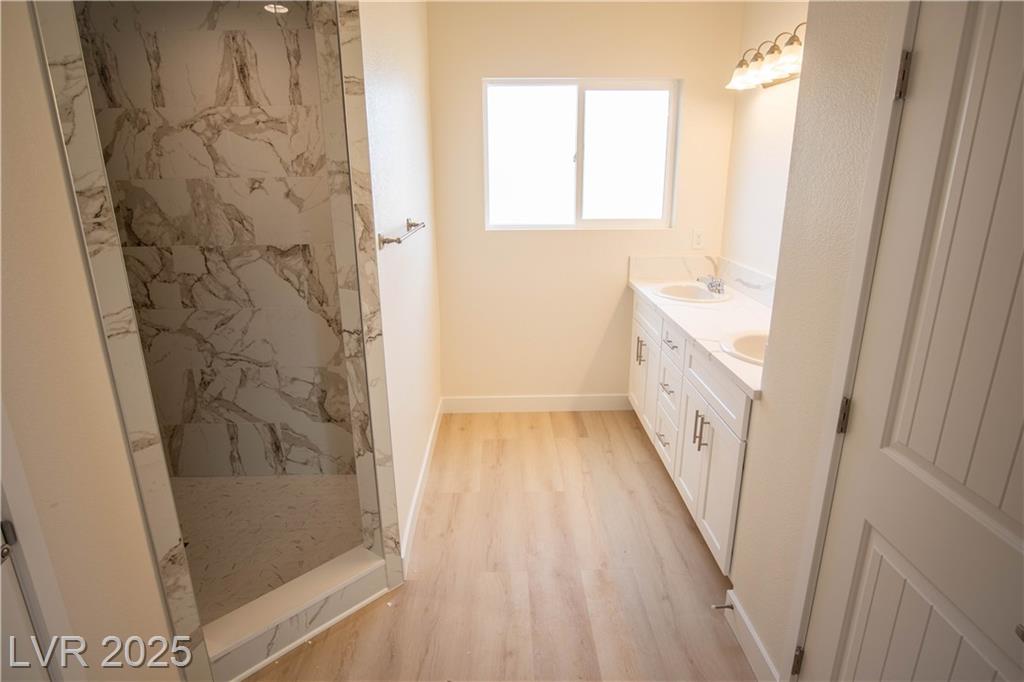 Welcome to your brand new, 3-bedroom, 3-bathroom home with 1,915 sq. ft. of open-concept living, nestled against a picturesque mountainside. This modern home features solid surface flooring throughout and a gourmet kitchen with quartz countertops. All three bathrooms boast elegant porcelain tile showers, adding a touch of luxury. The first primary en suite includes an extra-large walk-in shower with porcelain tile, dual sinks, and plenty of space for relaxation. The second primary suite also offers a walk-in shower, ensuring comfort for guests or family members. Additional features include integrated internet wiring, a media cabinet, and a satellite mast. The low-maintenance front yard showcases beautiful desert landscaping, enhancing the home’s curb appeal. Enjoy breathtaking mountain views while living in a home that combines style, comfort, and convenience. This is a perfect opportunity to experience modern living in a serene setting. Don’t miss out on this incredible home!