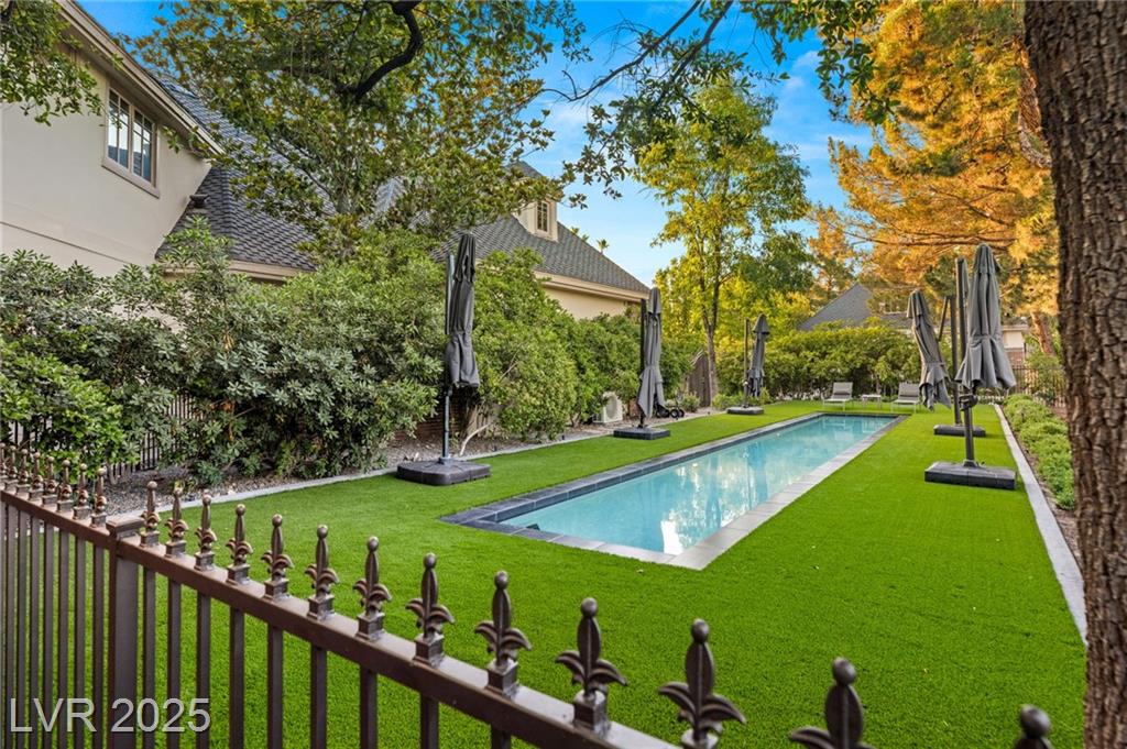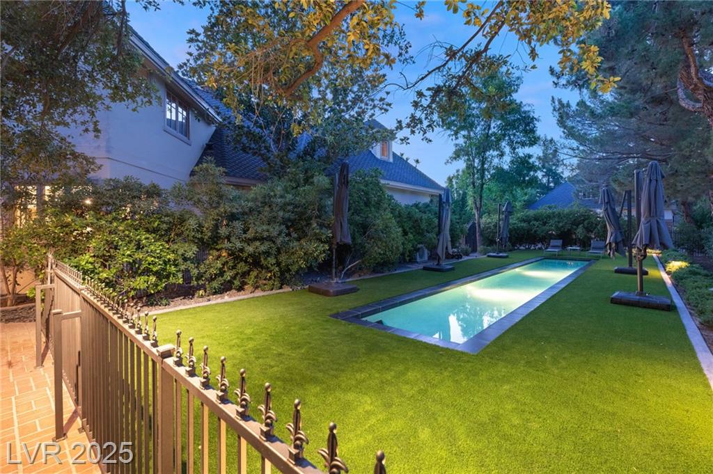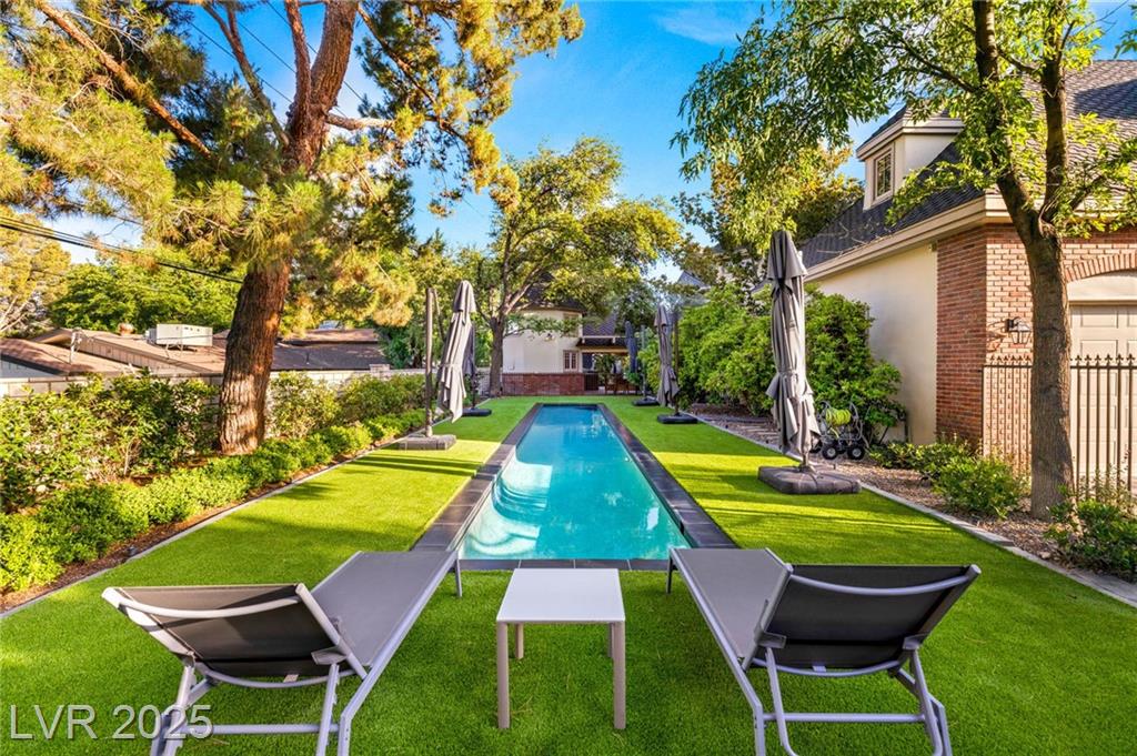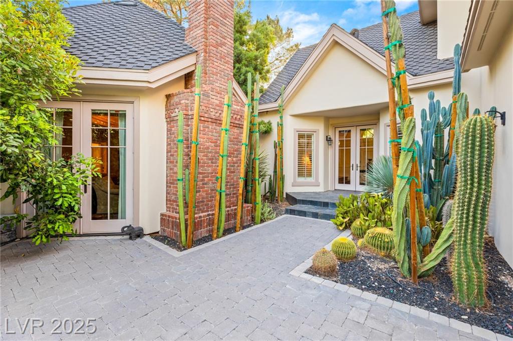 Experience the perfect blend of Santa Barbara modern design and French countryside charm in this unparalleled sanctuary. Spanning 7,660 sq. ft. on nearly an acre in Rancho Nevada Estates, this sanctuary is surrounded by lush landscaping, mature trees, vibrant flower beds, and calming water features. A detached casita/apartment offers versatile space for guests or multi-generational living. Located just moments from the Las Vegas Strip and airport, you can embrace the peace and serenity of this verdant oasis. The pool house and expansive outdoor spaces create an ideal setting for entertaining. This exclusive estate is a rare fusion of elegance, natural beauty, and modern luxury. Don’t miss the chance to own this sanctuary—it's not just a home, it’s a lifestyle.