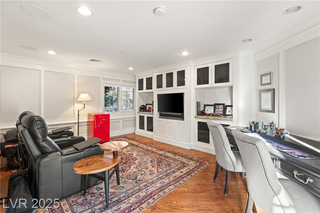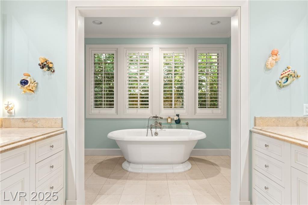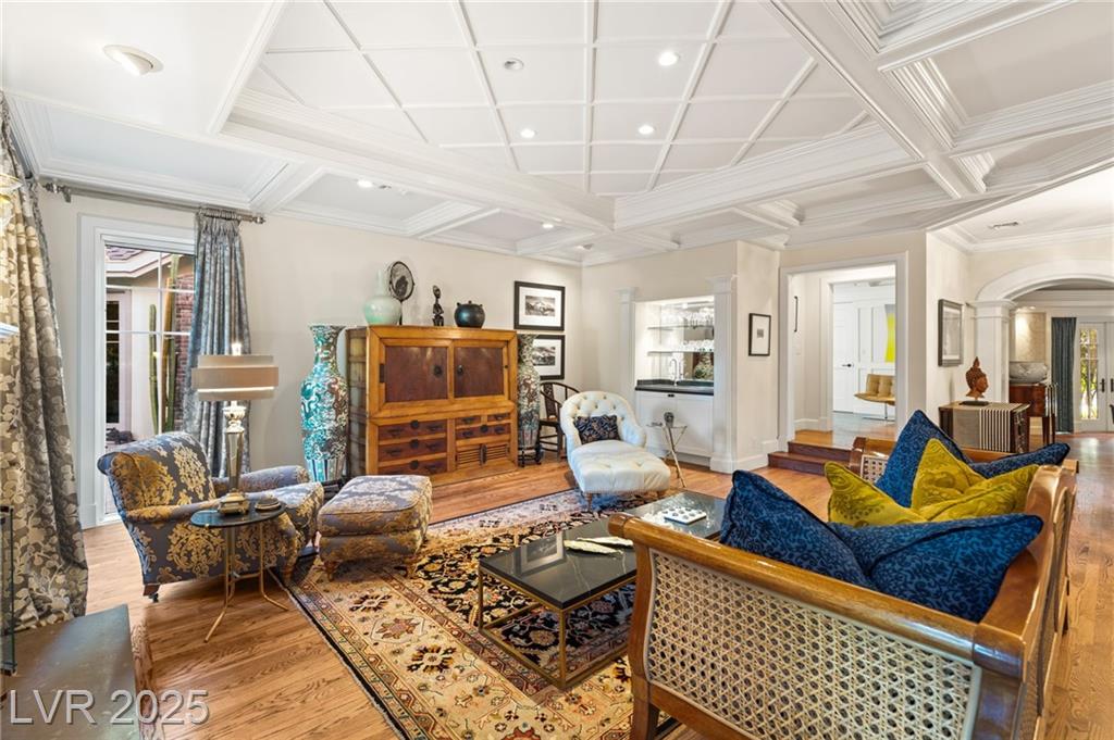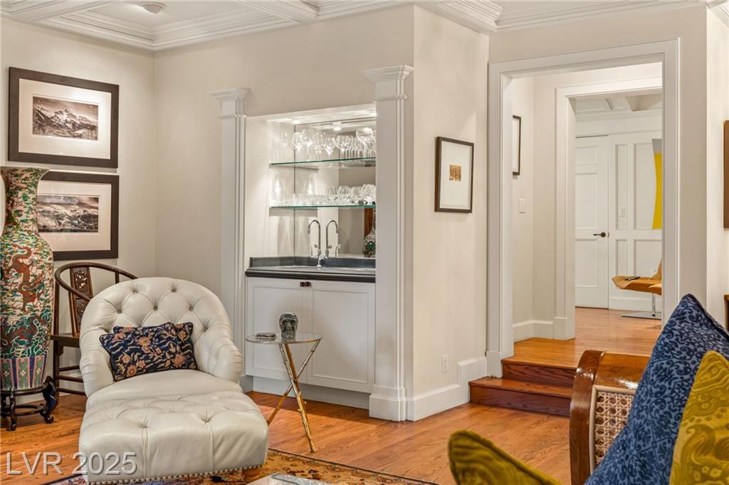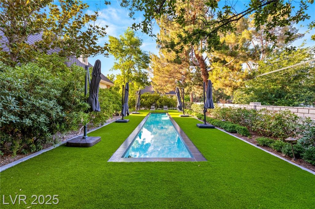 Experience the perfect blend of Santa Barbara modern design and French countryside charm in this unparalleled sanctuary. Spanning 7,660 sq. ft. on nearly an acre in Rancho Nevada Estates, this sanctuary is surrounded by lush landscaping, mature trees, vibrant flower beds, and calming water features. A detached casita/apartment offers versatile space for guests or multi-generational living. Located just moments from the Las Vegas Strip and airport, you can embrace the peace and serenity of this verdant oasis. The pool house and expansive outdoor spaces create an ideal setting for entertaining. This exclusive estate is a rare fusion of elegance, natural beauty, and modern luxury. Don’t miss the chance to own this sanctuary—it's not just a home, it’s a lifestyle.