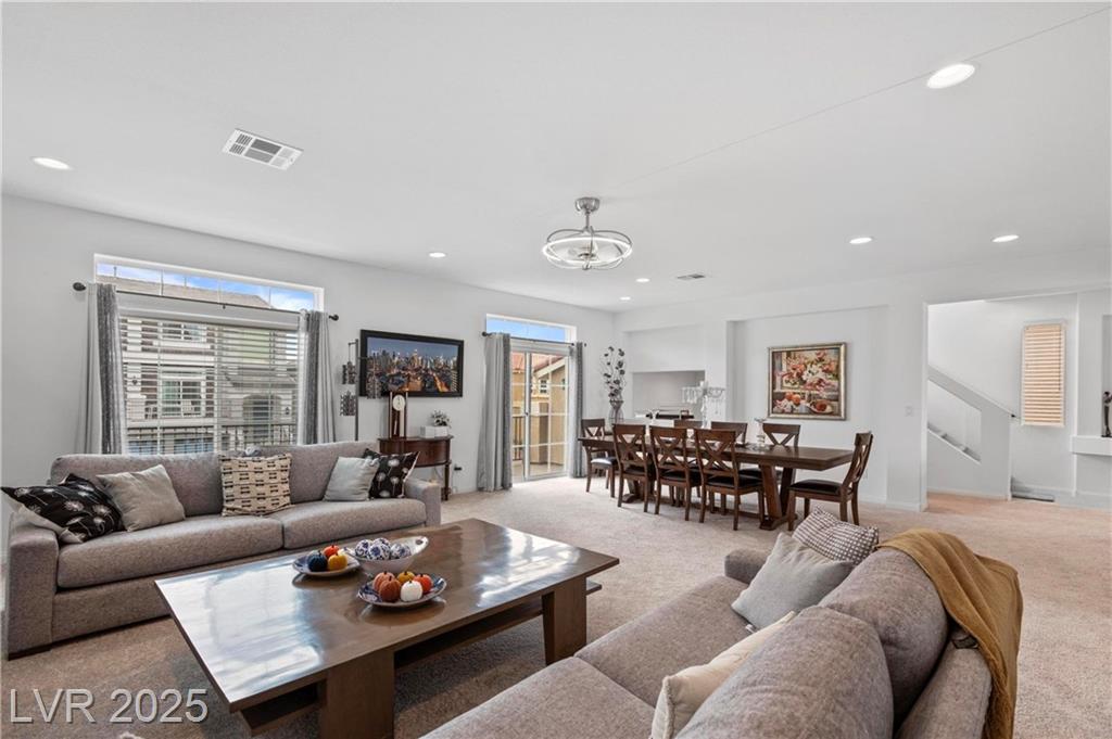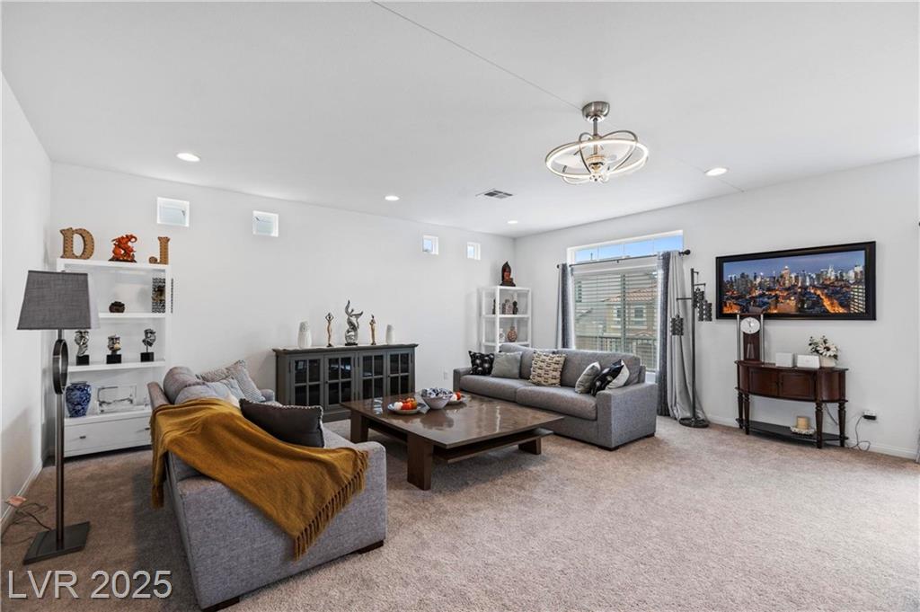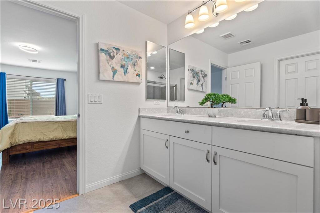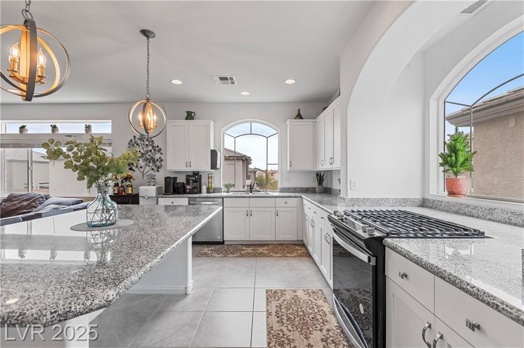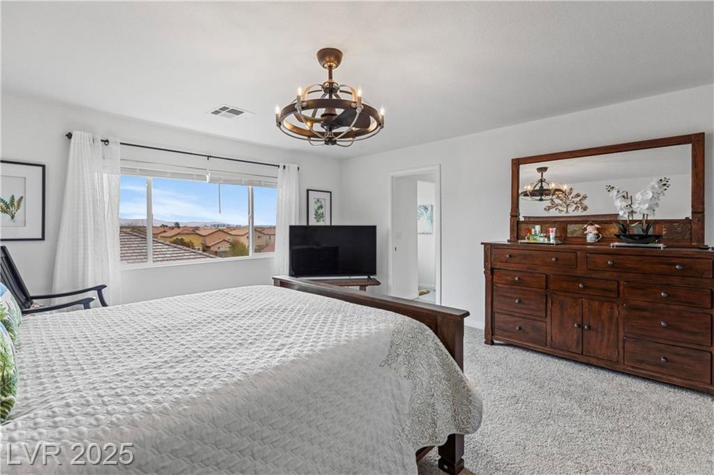 A true entertainer's dream. This stunning tri level home features 5 bedrooms, 3.5 bath, 3 car garage. Dual primary suites provide the ultimate comfort and privacy. The kitchen boasts upgraded cabinetry, large island, open floorplan, with lots of natural lightings. More privacy and flexibility, dedicate each floor to a different function to enhance entertainment. Additional features include large balcony on second floor, stainless steel appliances, enlarged walk in showers, walk in closets, large laundry room, low maintenance landscaping backyard, extended paver driveway, and many more. Enjoy the Southern Highlands parks, hiking trails, entertainment, community events, excellent rating schools, without having to pay for the Masterplan fee. Located only 15 minutes from the strip, easy access to highway and shopping plazas.