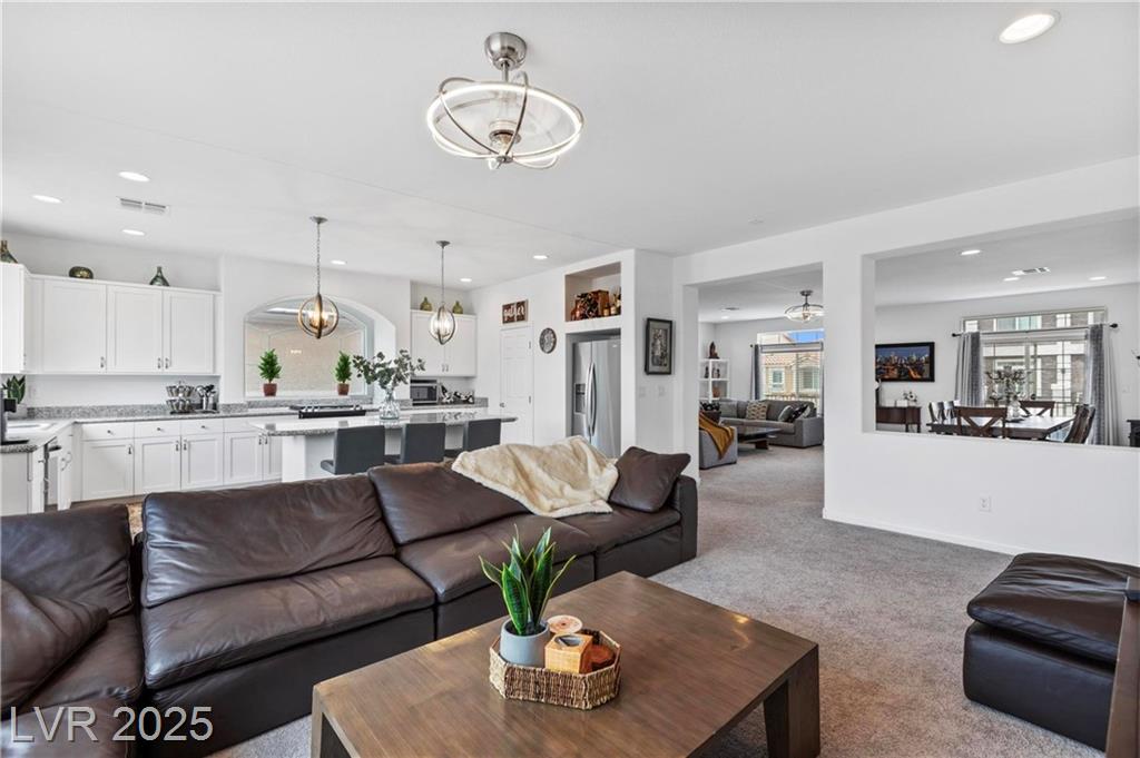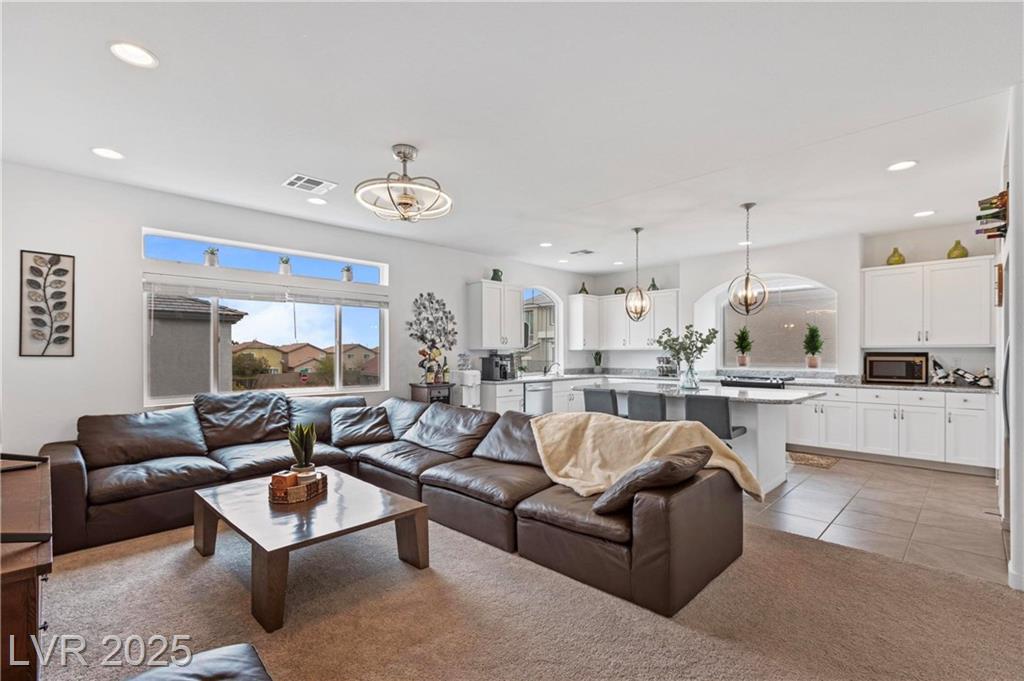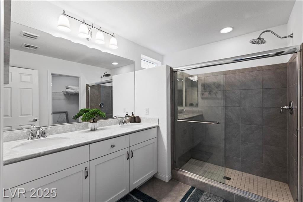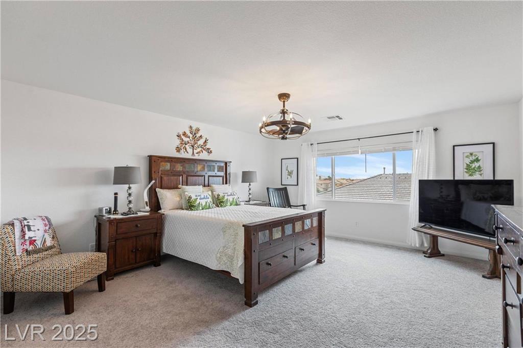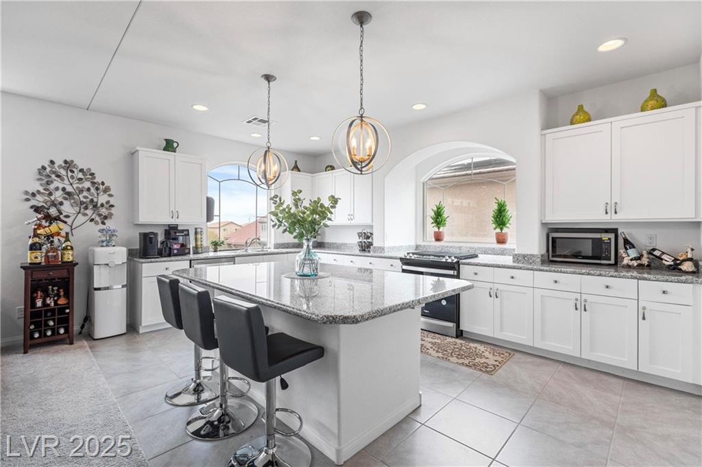 A true entertainer's dream. This stunning tri level home features 5 bedrooms, 3.5 bath, 3 car garage. Dual primary suites provide the ultimate comfort and privacy. The kitchen boasts upgraded cabinetry, large island, open floorplan, with lots of natural lightings. More privacy and flexibility, dedicate each floor to a different function to enhance entertainment. Additional features include large balcony on second floor, stainless steel appliances, enlarged walk in showers, walk in closets, large laundry room, low maintenance landscaping backyard, extended paver driveway, and many more. Enjoy the Southern Highlands parks, hiking trails, entertainment, community events, excellent rating schools, without having to pay for the Masterplan fee. Located only 15 minutes from the strip, easy access to highway and shopping plazas.
