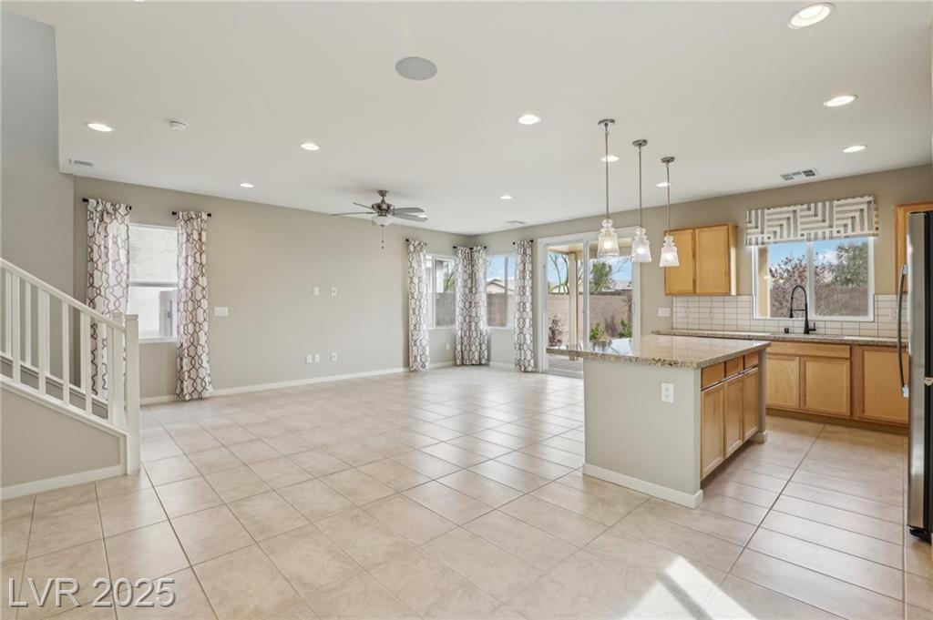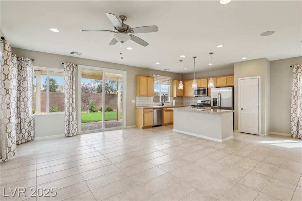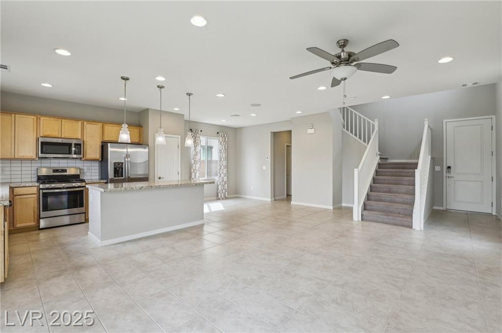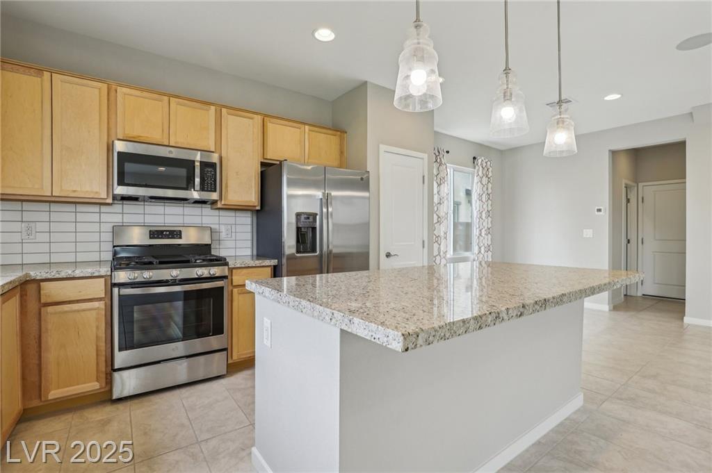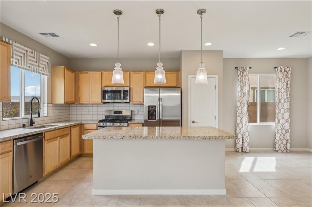 Check out this beautiful, like-new, former model home by Taylor Morrison! This home offers a fully open floor plan with generous upgrades and premium options! These include upgraded kitchen and bath countertops, a designer backsplash, and pendant lighting over the island in the kitchen. The entry door and stair railing. All the plumbing fixtures. Trim and hardware. Two-tone interior paint. Flooring and an epoxy-coated garage floor to complete the home entirely. Easy maintenance, designer desert landscaping with a covered patio in the backyard! Ideally situated in the rapidly growing area of North Las Vegas, this location offers quick access to both the 215 and I-15 freeways, placing you just minutes from the VA Hospital, major shopping centers, beautiful parks, and exciting new developments still to come.