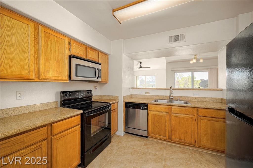 Southwest Las Vegas Condo For Sale 2 bedrooms, 2 full baths, with a balcony off living room, Condo is near the new Durango Hotel Casino, LV Strip, airport, freeway access ,dining & shopping, close to the newly opened up SW Costco on Buffalo. Brand new ceramic tile floors in kitchen, the two full bathrooms and at front door entry. Great amenities such as community pools, spa, playground-park, facilities, green belt and more! Kitchen has granite counter tops and a laundry room. Primary bedroom with a full bathroom and separate 2nd bathroom also has a full bathroom. Living room has a vaulted ceiling. Kitchen has a pantry and breakfast counter, and laundry closet. Close proximity to I-215 freeway access at Rainbow, dining, shopping, the LV Strip, and West Summerlin. Balcony has lovely mountain and Las Vegas Valley views in the distance. Per Seller, new HVAC system, refrigerator, laundry washer & dryer, new tile floors, new ceiling fans w/ remotes, near LV airport, LV Strip, & new Costco.