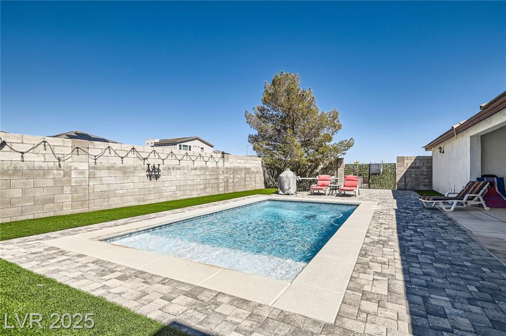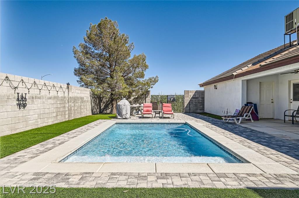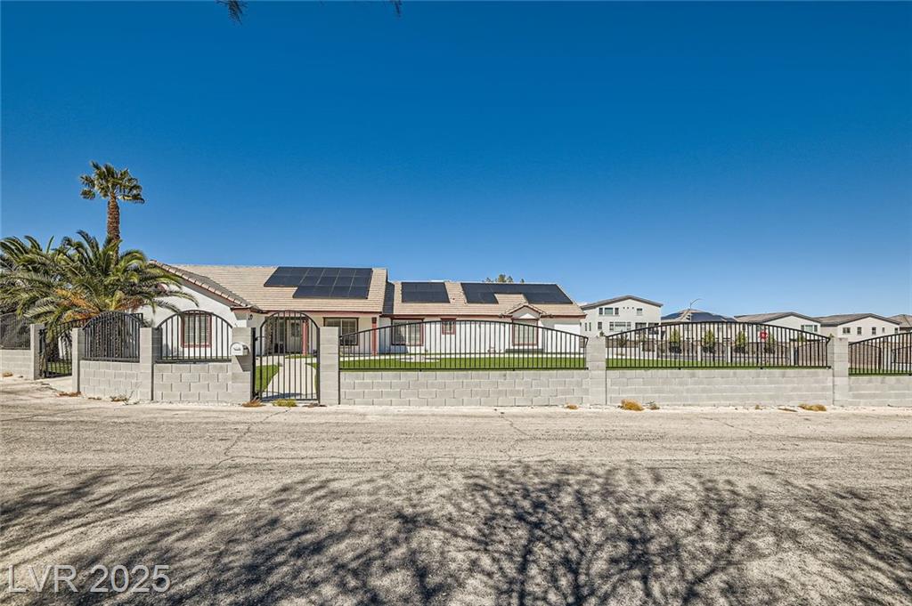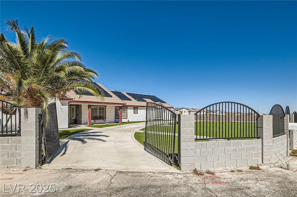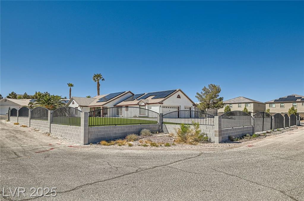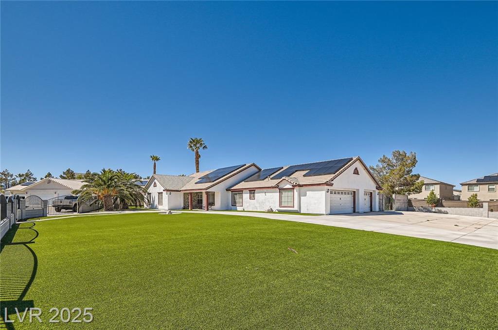 Welcome to your Southwest oasis. This custom 4 bedroom single story home with NO HOA, new custom sparkling pool and PAID OFF SOLAR PANELS. It is the corner home situated in a 4 home cul-de-sac street. There are over $300k in recent upgrades to this home. The driveway was extended out to the street as well as a beautiful iron fence to the property. Step into your backyard with a new sparkling pool with tile/ concrete surround paired with artificial turf. The backyard also features a covered patio. The kitchen features newer custom cabinetry and granite countertops as well as a built-in oven, and an electric cooktop on spacious island. Paid off solar. This property is on a shared community well.