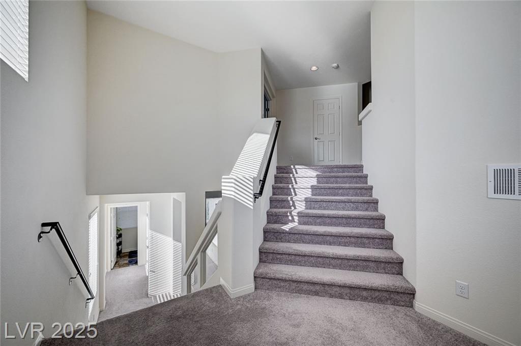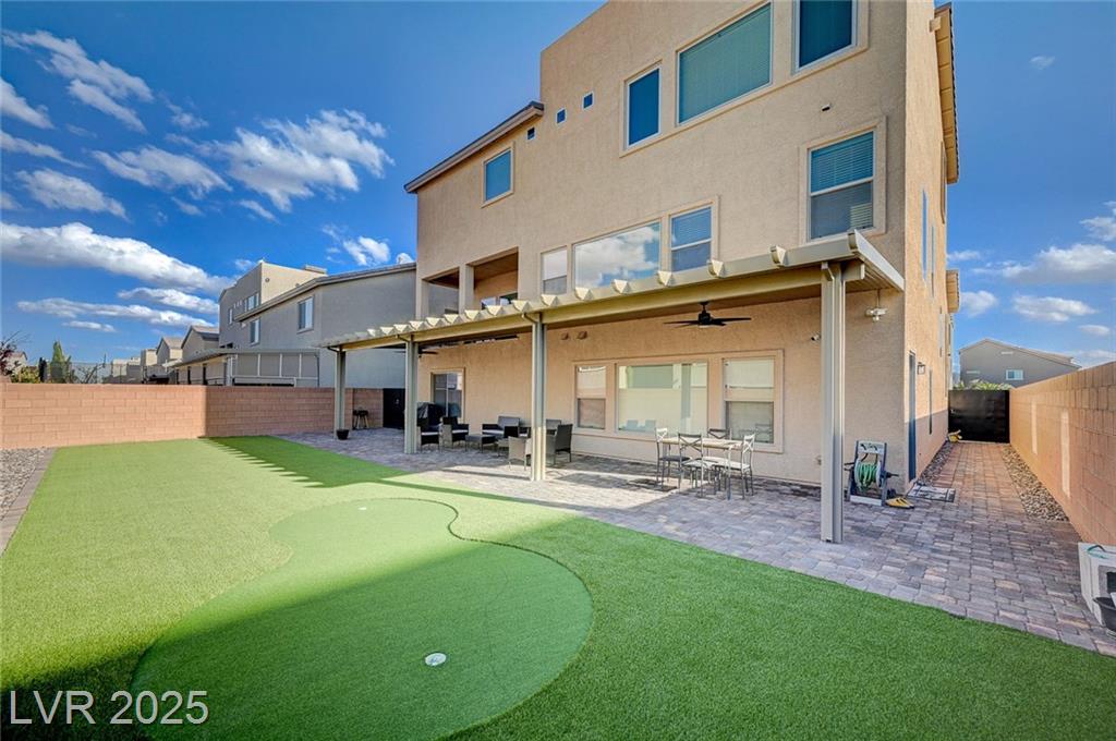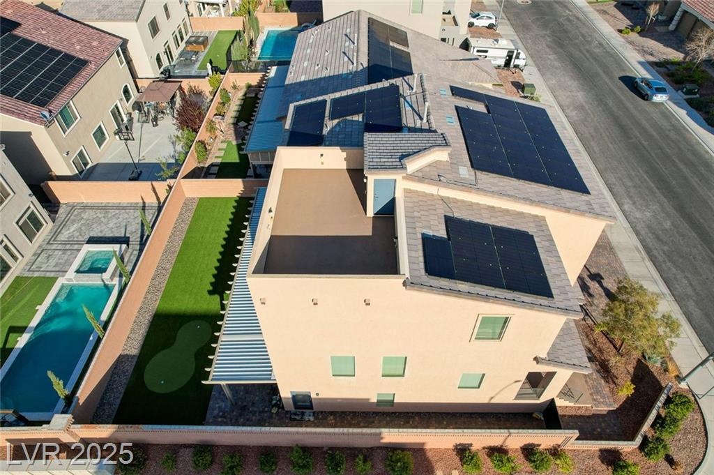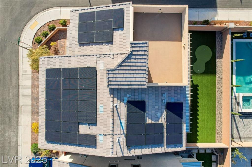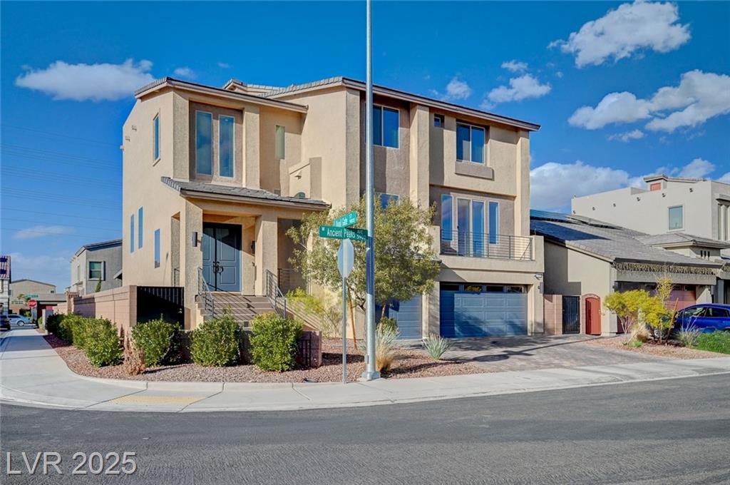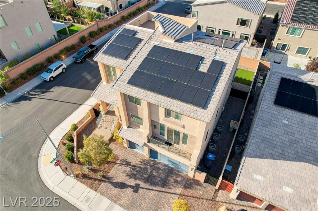 Luxury Three Story, 5 Bedroom, 3 ½ Bath 4664 sq.’ Home with Roof Deck on Premium Fully Fenced Corner Lot located in Highlands Ranch Community in SW Las Vegas. Features Include Two Primary Bedrooms located on the First & Third Floors, a Living Room, Great Room and Den. Upstairs Primary Bath features a separate tub and walk in shower. Kitchen has a Huge Island / Breakfast Bar, Walk In Pantry, Upgraded Cabinets with Granite Countertops. Three High Efficiency A/C Units provide separate zones for Htg. & Clg. Other Features include a Three Car Finished Garage, Front and Rear Balconies, Huge Covered Patio including your own private Putting Green. 37 Rooftop Solar Panels deliver ample power to operate the home at a net zero cost to the current Home Owners. Solar Panels are still under a Full Warranty. Roof top Deck features Electrical Outlets, Lighting and Water. The 360-degree view of the city makes it a perfect place to watch the Holiday Fireworks displays from the safety of your home.