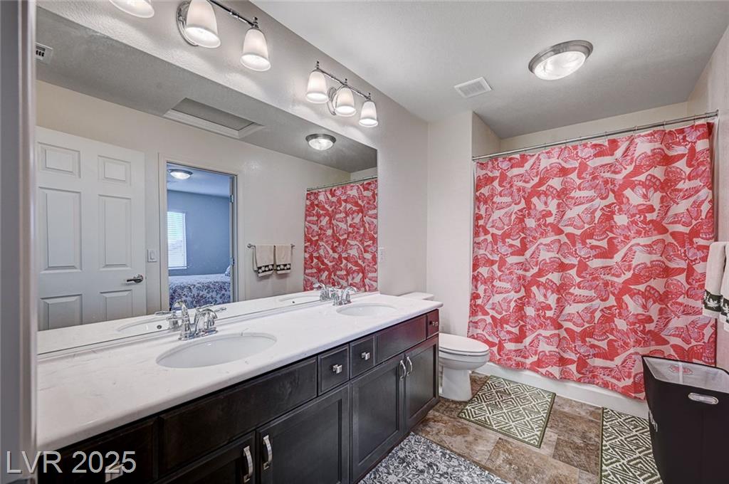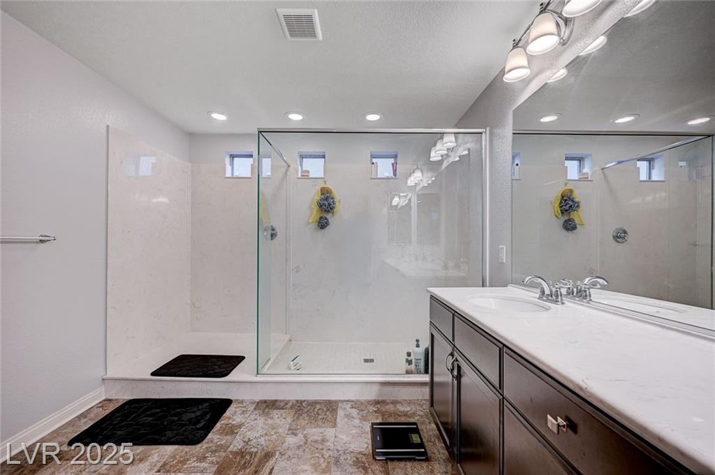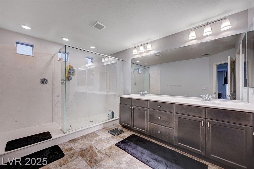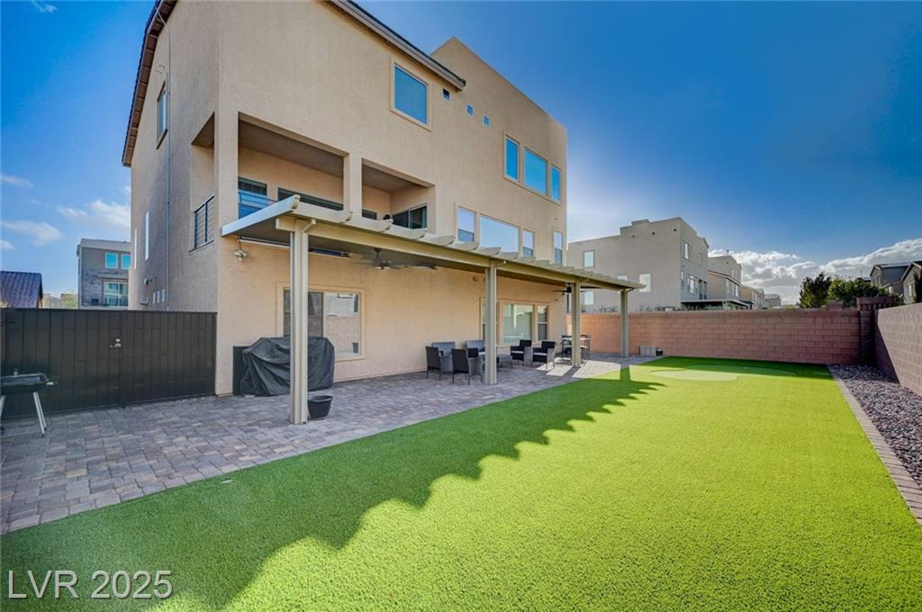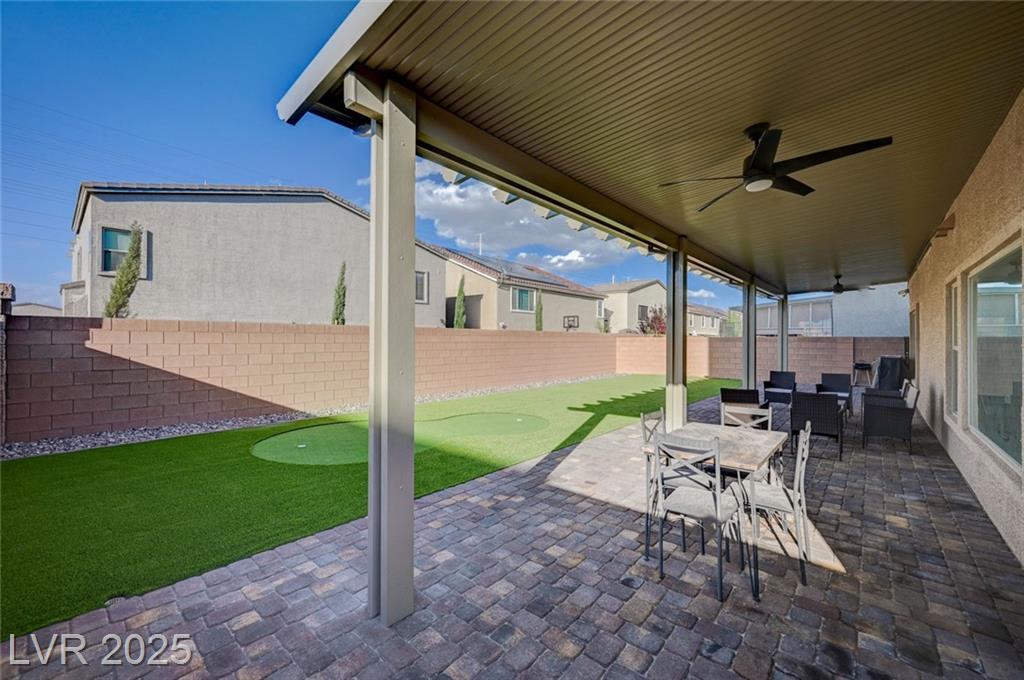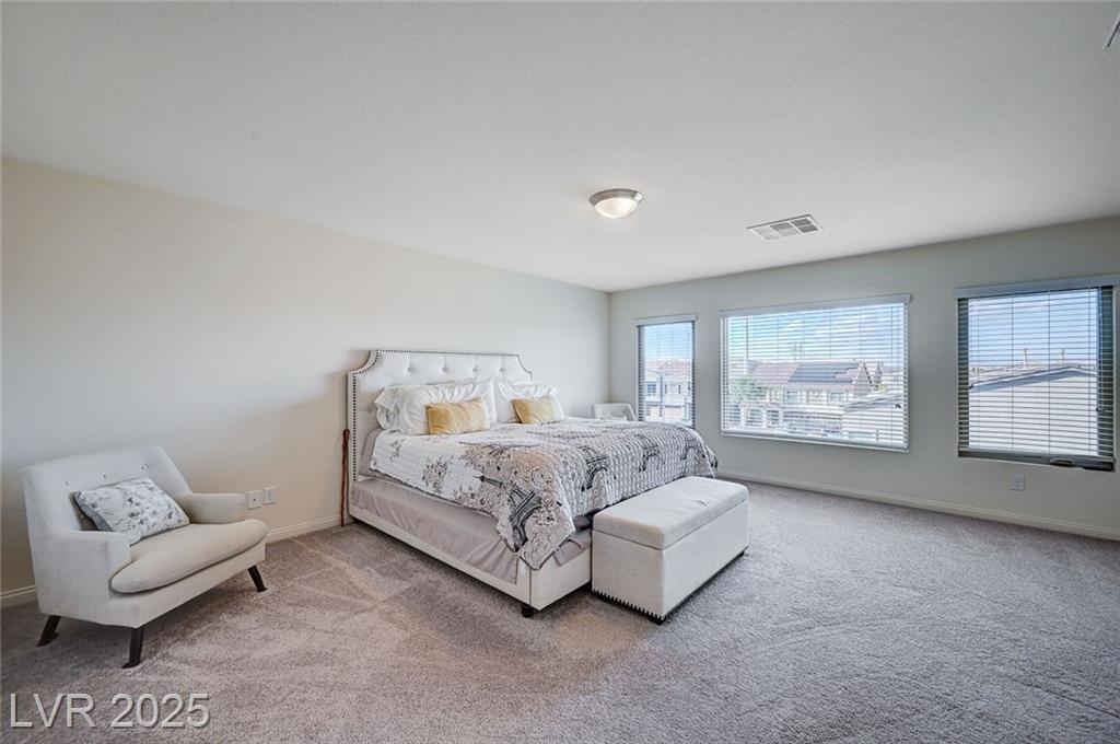 Luxury Three Story, 5 Bedroom, 3 ½ Bath 4664 sq.’ Home with Roof Deck on Premium Fully Fenced Corner Lot located in Highlands Ranch Community in SW Las Vegas. Features Include Two Primary Bedrooms located on the First & Third Floors, a Living Room, Great Room and Den. Upstairs Primary Bath features a separate tub and walk in shower. Kitchen has a Huge Island / Breakfast Bar, Walk In Pantry, Upgraded Cabinets with Granite Countertops. Three High Efficiency A/C Units provide separate zones for Htg. & Clg. Other Features include a Three Car Finished Garage, Front and Rear Balconies, Huge Covered Patio including your own private Putting Green. 37 Rooftop Solar Panels deliver ample power to operate the home at a net zero cost to the current Home Owners. Solar Panels are still under a Full Warranty. Roof top Deck features Electrical Outlets, Lighting and Water. The 360-degree view of the city makes it a perfect place to watch the Holiday Fireworks displays from the safety of your home.