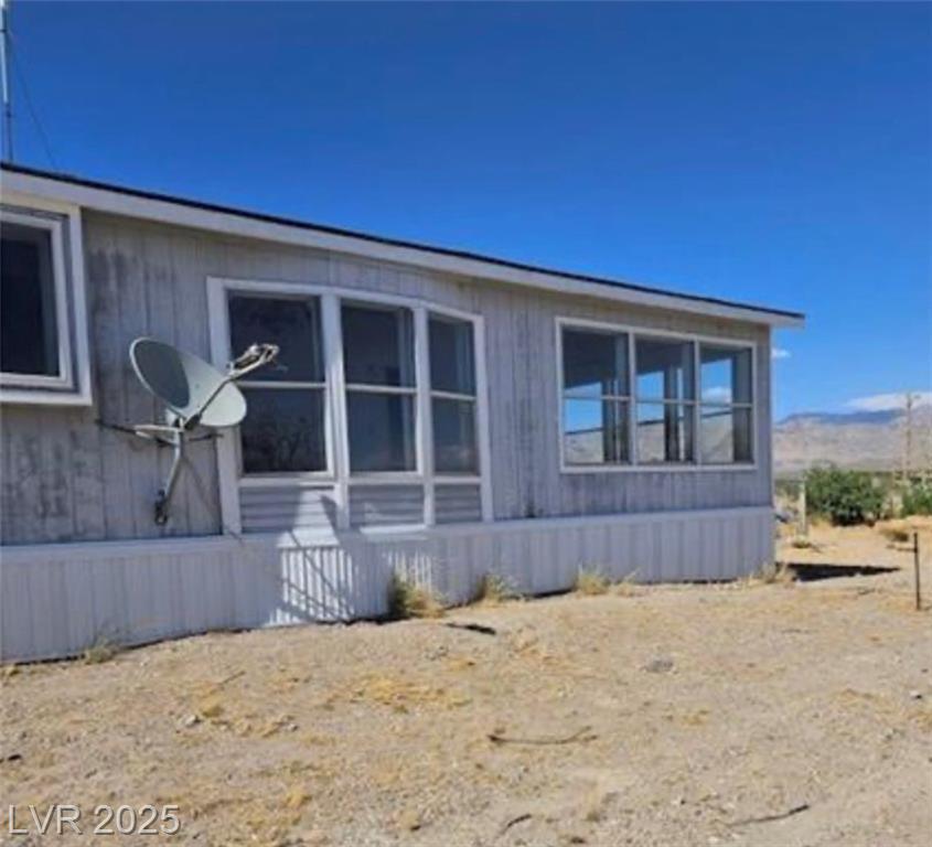 NO HOA. This quite land has over 2 acers!!! **HUGE LOT** Located Just an hour and a half **OUTSIDE OF LAS VEGAS** located just 42 miles from the M Resort / Desert Living at its best! The property has a manufactured home that features 3 bedroom and 2 full bathrooms. The home is converted into real property. Make this the investment or home of your dreams! EASY OFF GRID LIVING...Double Wide... Fresh paint and NEW flooring!!