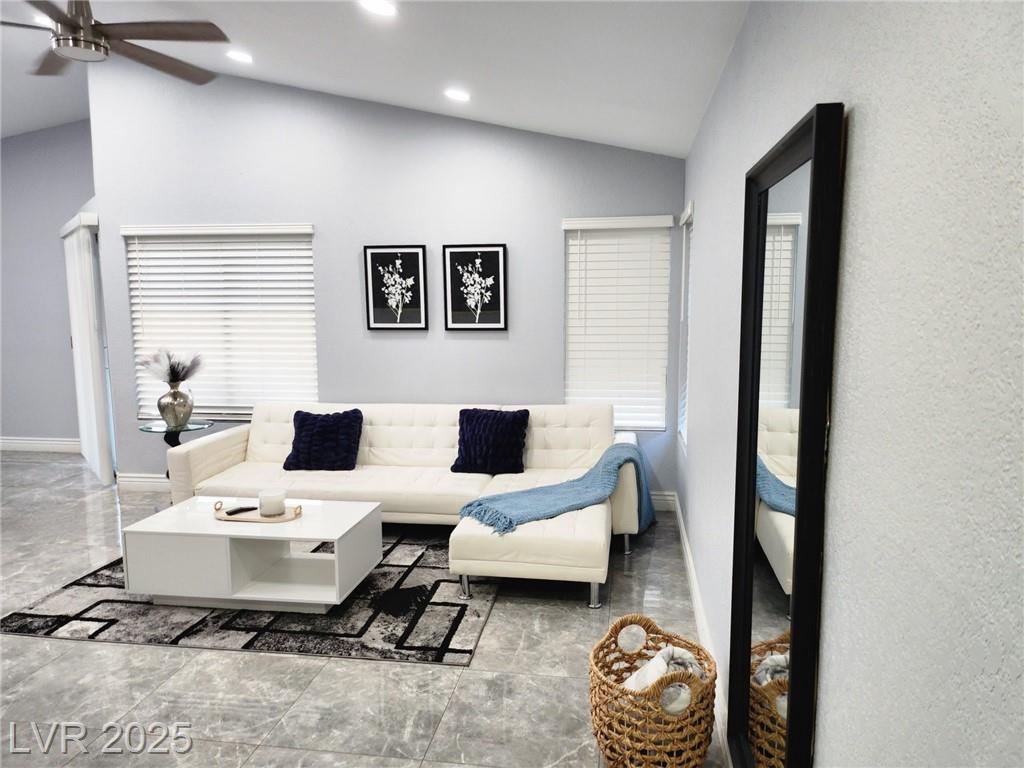 From Paradise & Warm Springs turn on Paradise & head North Right/ East on White, then Right/ South on Rhapsody Lane. Property is on the Right/ West Side of the street.