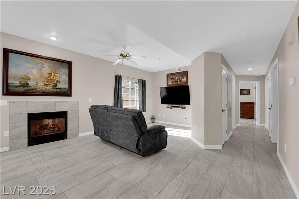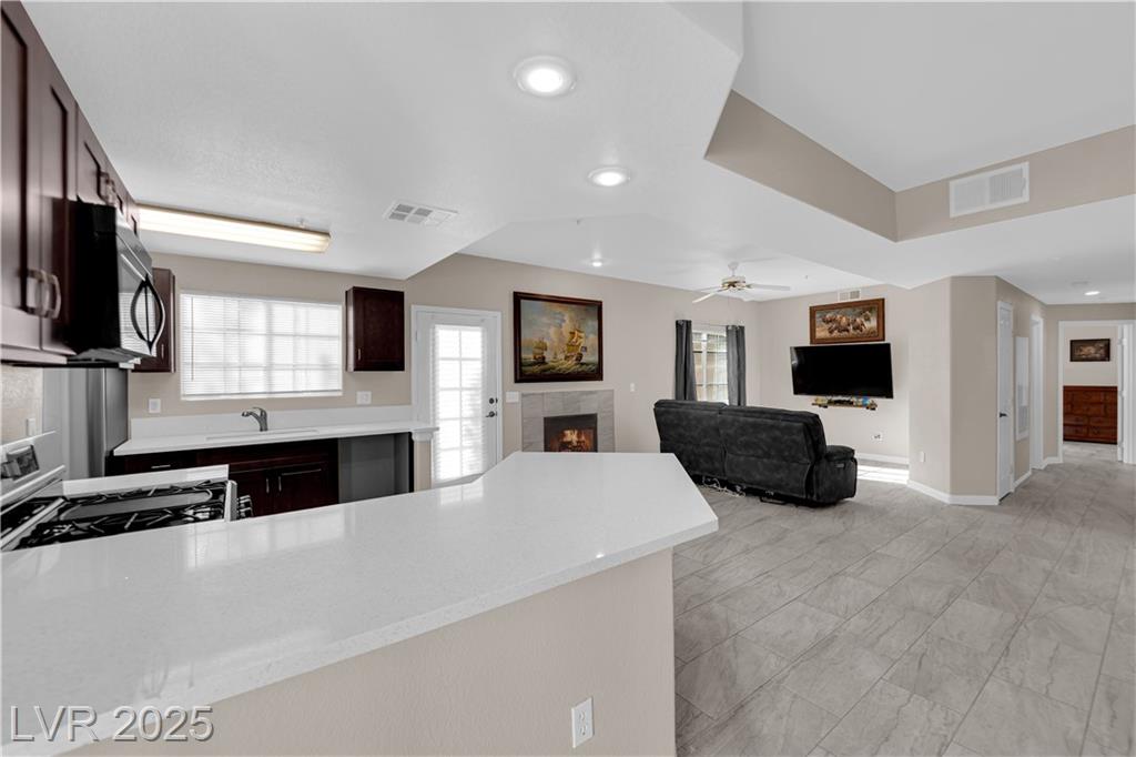Stunning First-Floor Condominium in Green Valley! This spacious 2-bedroom, 2-bathroom home boasts an open floor plan with modern tile flooring and sleek quartz countertops. The primary suite offers two generous walk-in closets and a luxurious en-suite with dual sinks. Enjoy the outdoors with two private patios perfect for relaxation. Located in Henderson, home to over 70 parks and 220 miles of scenic walking trails, this condo offers easy access to freeways, the iconic Strip, and a variety of shopping and dining options. A two-car garage adds convenience to this perfect home! Don't miss out—schedule a tour today!