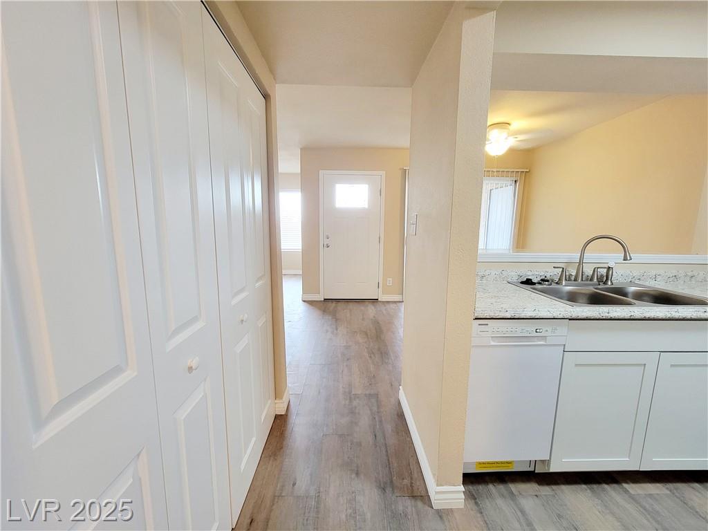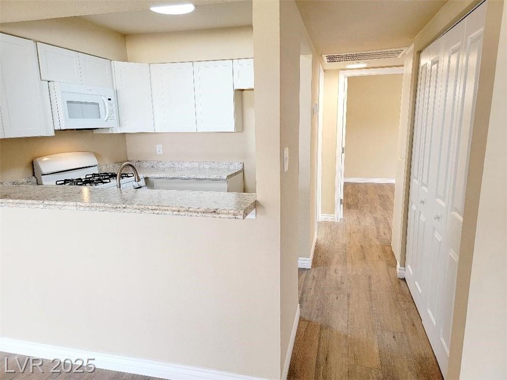 Sundance Beauty 2 Bed 1.5 Bath Strip and City Views , Large Balcony all redone, Complete Remodel Top to Bottom, Kitchen has all new custom Cabinets, Stove, Dishwater, Counter tops, Microwave , garbage dis, Faucets, sink, Lighting, Vinyl Flooring , All New 6 panel doors, Flooring, Baseboards, Custom paint, all ceilings with lights, resurfaced ceilings , Wood light Window covers , Both Bathrooms all New Vanity's , sinks , hard ware, paint , flooring , lights , toilets , French doors in Primary , Natural lighting , AC is only a few years old, New water heater, Water, Sewer , Trash included in the HOA, Community pool, Club house , Airport Close by , Close to strip ,Close to UNLV , Lots of shops, restaurants , Everything has been replaced to make it perfect . just move right in