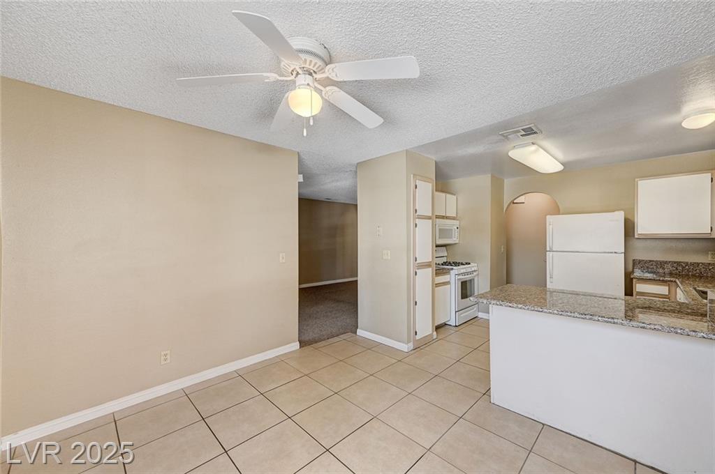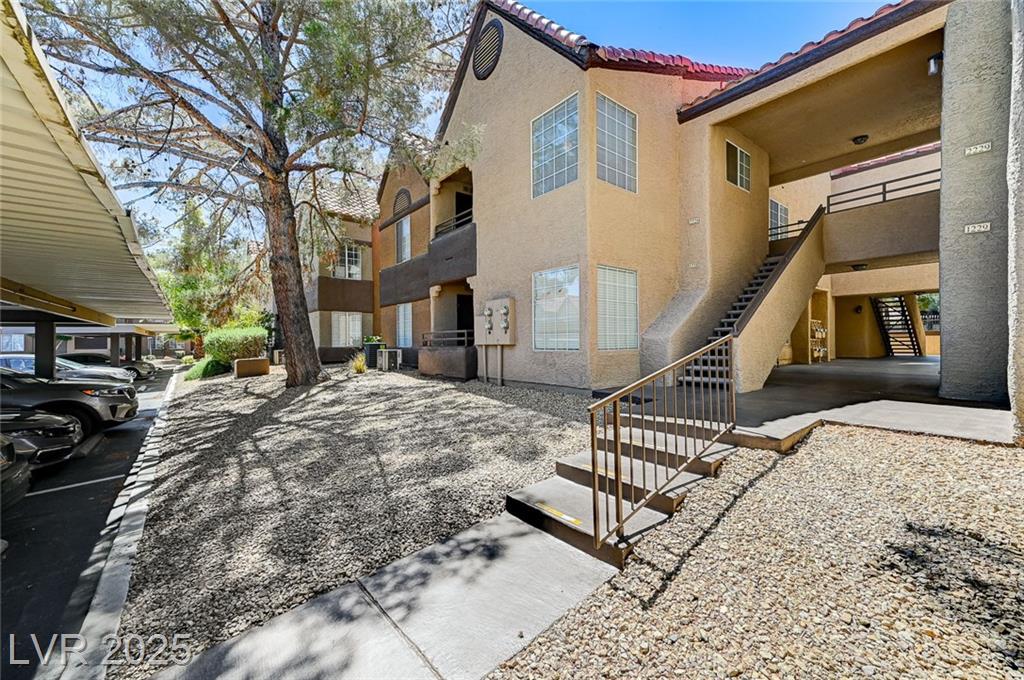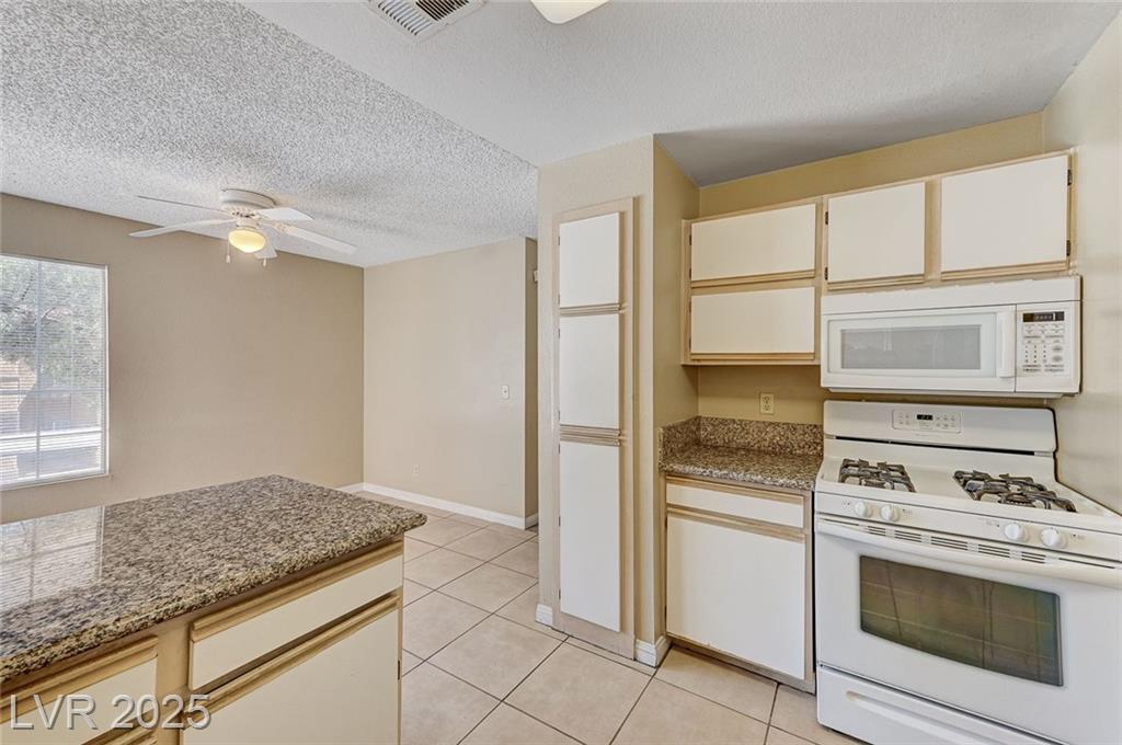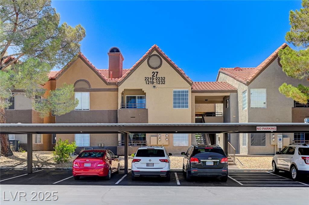 Highly desirable 3 bedroom condo in the guard gated community of "The Residence at Canyon Gate". Excellent location in Summerlin off Sahara and Fort Apache, near shopping, dining, Downtown Summerlin, Red Rock Resort, and EZ LV Strip access. Fabulous resort style amenities including pools, spas, fitness center, tennis court, basketball & racquet ball courts, and walking paths for you and your pet. Community has recently undergone building renovations including new roofs, paint, asphalt, landscape refreshed, and pools resurfaced. Seller has paid off the special assessment for this work. This home has NEW A/C unit (7/2024). Granite counter tops in the kitchen, breakfast bar, dining nook, formal living room with fireplace, sliding glass door to covered balcony, bedrooms with fans/lights, mirrored closet doors, and all appliances convey. Good storage with linen storage in the Primary bathroom. HOA on site. Sold as is.