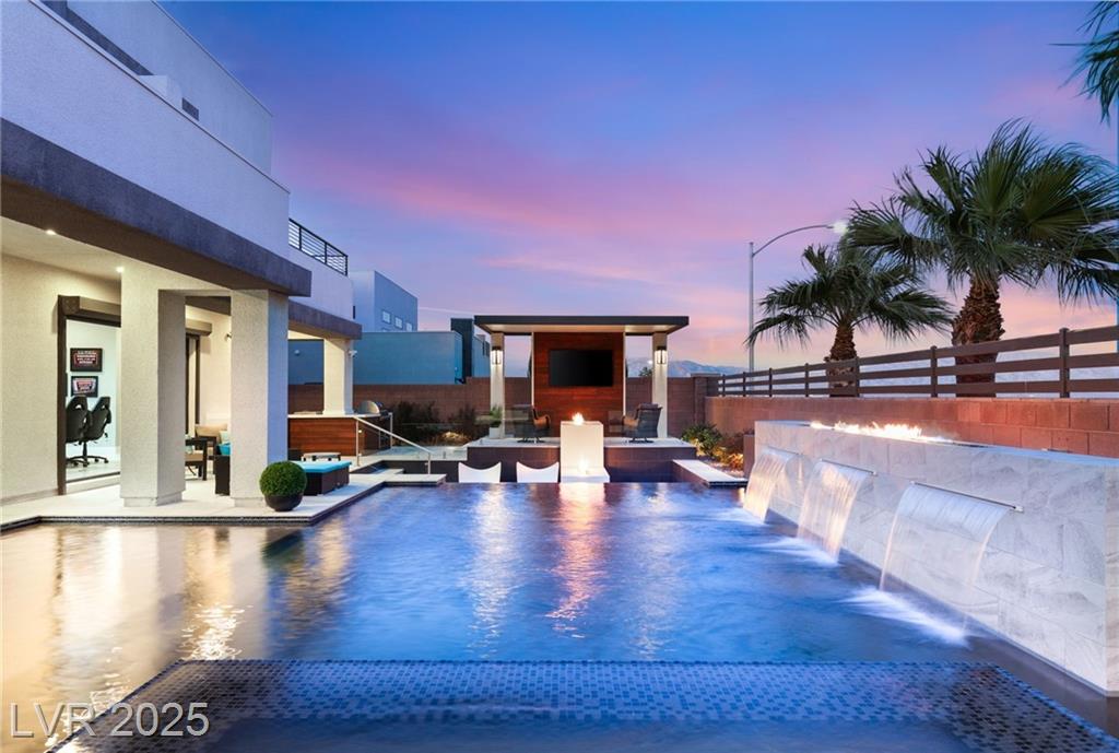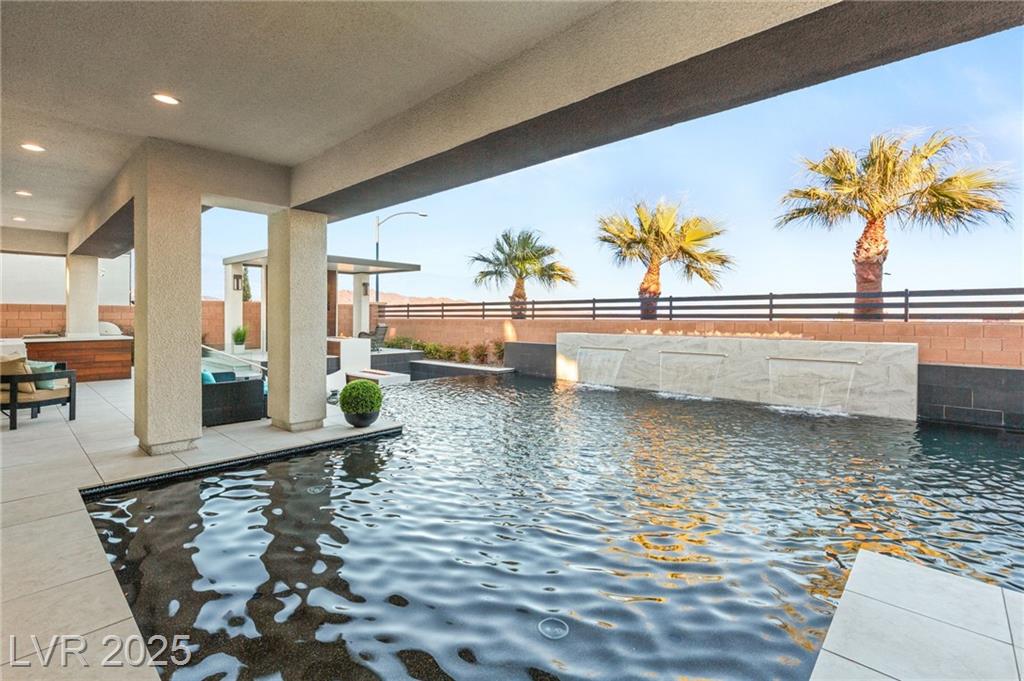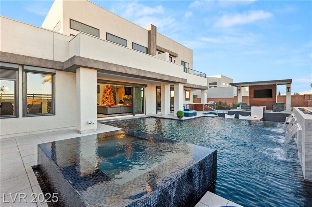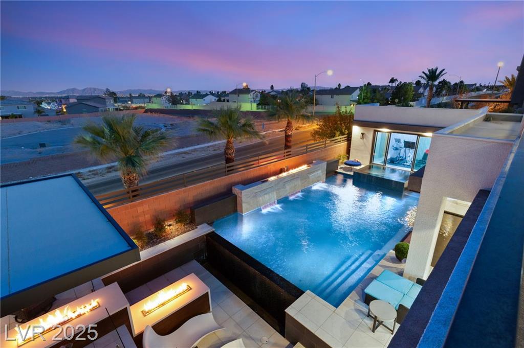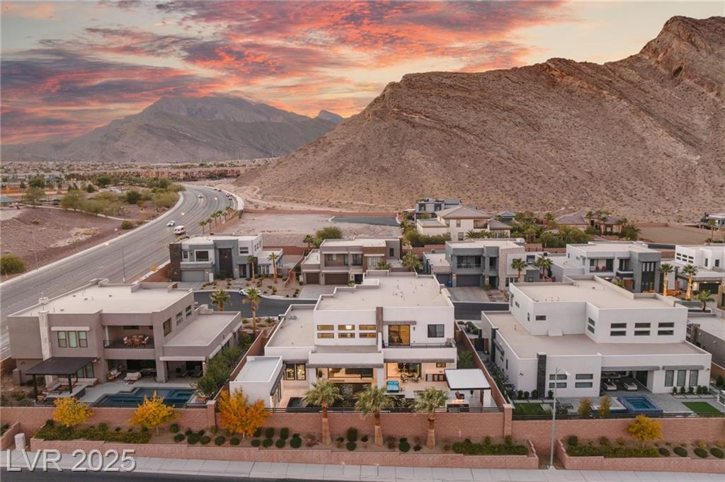 Set on a sprawling 0.26-acre lot at the base of Lone Mountain, this exceptional home offers premium finishes and unparalleled upgrades. The soaring ceilings and a sleek fireplace in the great room create a dramatic yet inviting space. An adjoining game room has a wet bar with wine fridge, perfect for entertaining. A chef-inspired kitchen boasts professional stainless appliances, a huge island and plenty of cabinet space.Upstairs, a versatile loft provides limitless possibilities. The primary suite is a true sanctuary complete with a private balcony, a spa-like bath plus a custom-designed closet. The resort-style backyard showcases a beach entry pool and raised spa, outdoor kitchen and multi-level seating areas perfect for dining or relaxing. Additional highlights include an attached 3-car garage with sealed floors and LED lighting,advanced Ring security, Rolladen shutters and five Nest thermostats. This home is a rare gem offering luxury, style and functionality in a premier location.