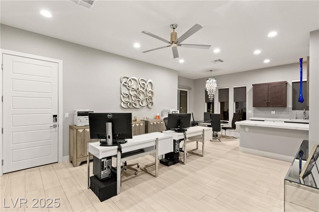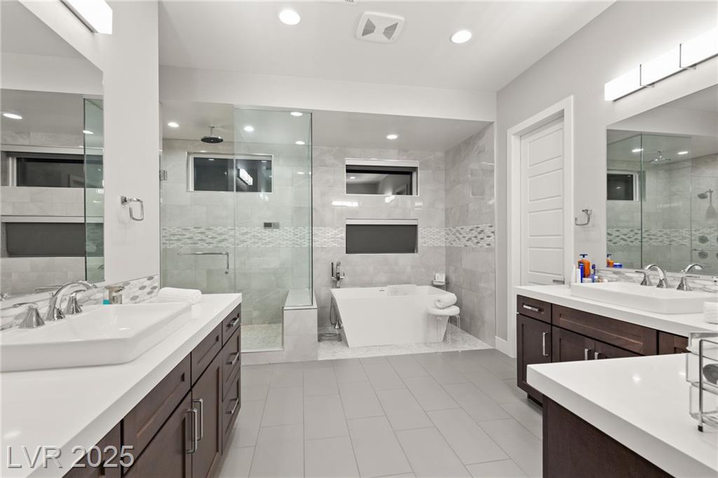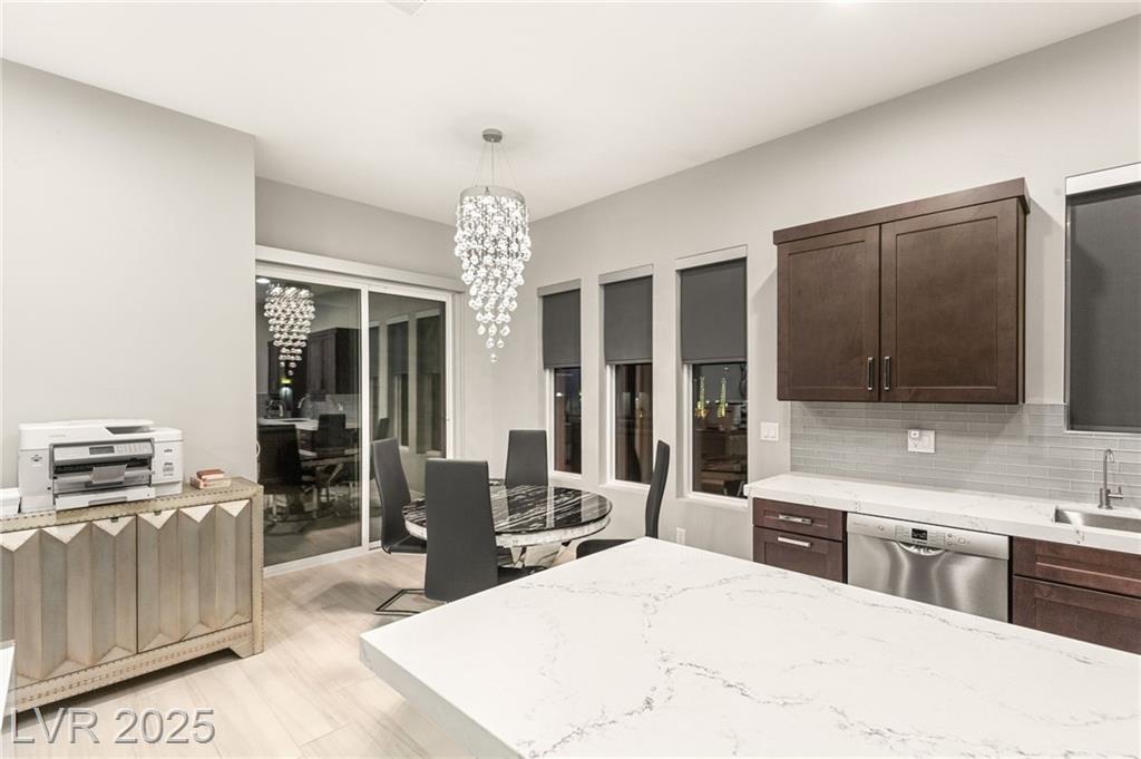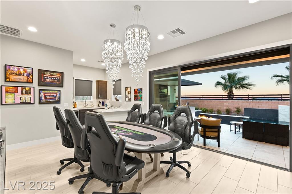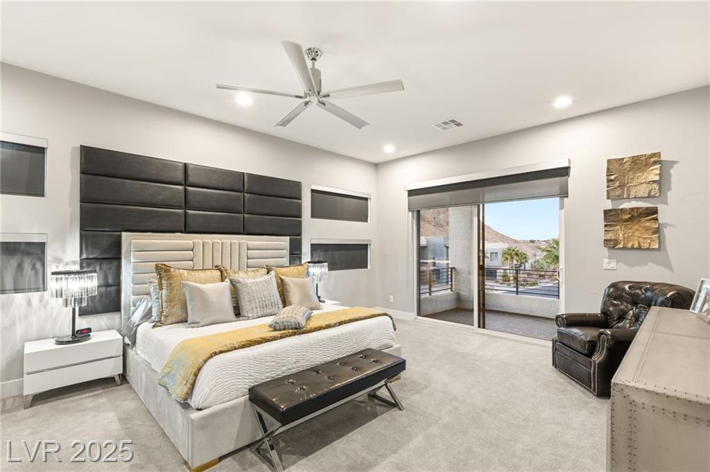 Set on a sprawling 0.26-acre lot at the base of Lone Mountain, this exceptional home offers premium finishes and unparalleled upgrades. The soaring ceilings and a sleek fireplace in the great room create a dramatic yet inviting space. An adjoining game room has a wet bar with wine fridge, perfect for entertaining. A chef-inspired kitchen boasts professional stainless appliances, a huge island and plenty of cabinet space.Upstairs, a versatile loft provides limitless possibilities. The primary suite is a true sanctuary complete with a private balcony, a spa-like bath plus a custom-designed closet. The resort-style backyard showcases a beach entry pool and raised spa, outdoor kitchen and multi-level seating areas perfect for dining or relaxing. Additional highlights include an attached 3-car garage with sealed floors and LED lighting,advanced Ring security, Rolladen shutters and five Nest thermostats. This home is a rare gem offering luxury, style and functionality in a premier location.