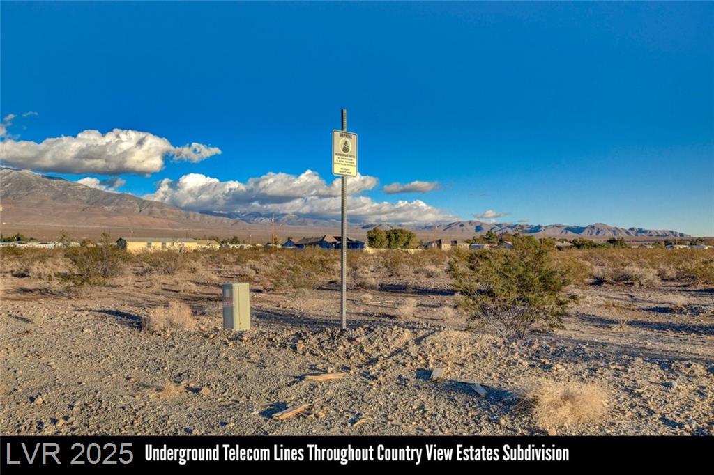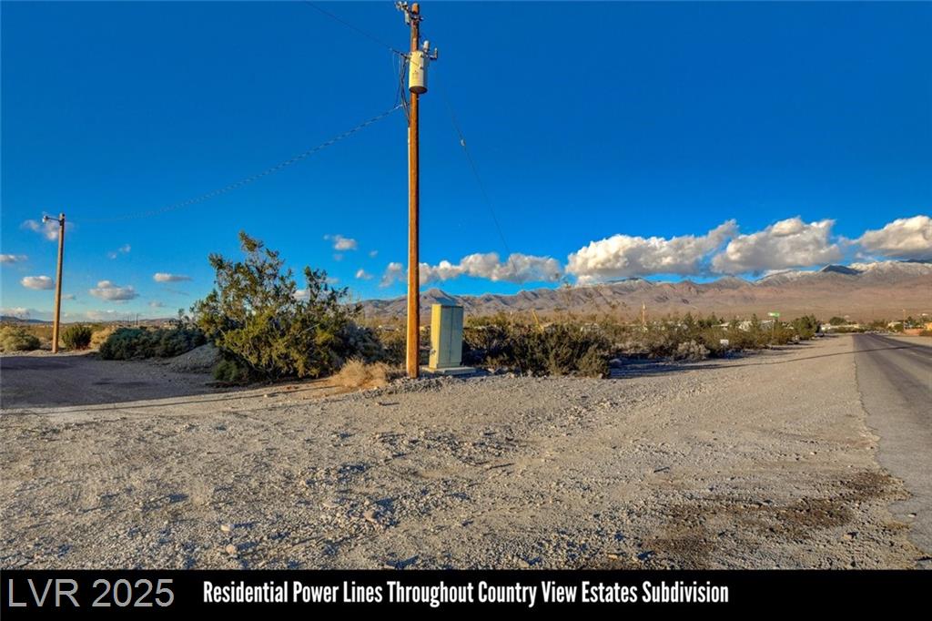 Spacious .448-acre lot with stunning city and mountain views! Located in a growing area of Pahrump, this property offers an excellent opportunity for future development. Water extension required—ideal for those planning ahead. Enjoy panoramic scenery and the peace of a desert setting while still being just minutes from town. Don’t miss this chance to secure a prime piece of land with strong future potential!
