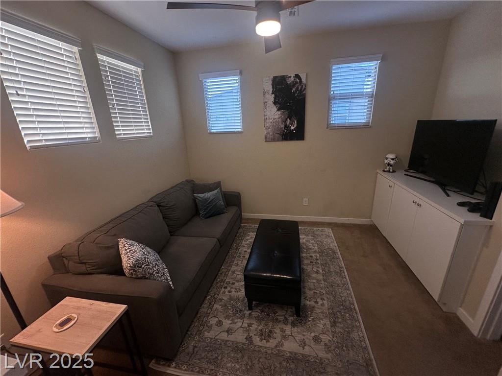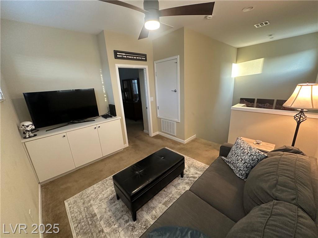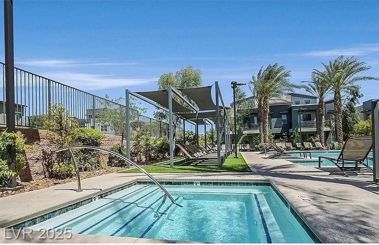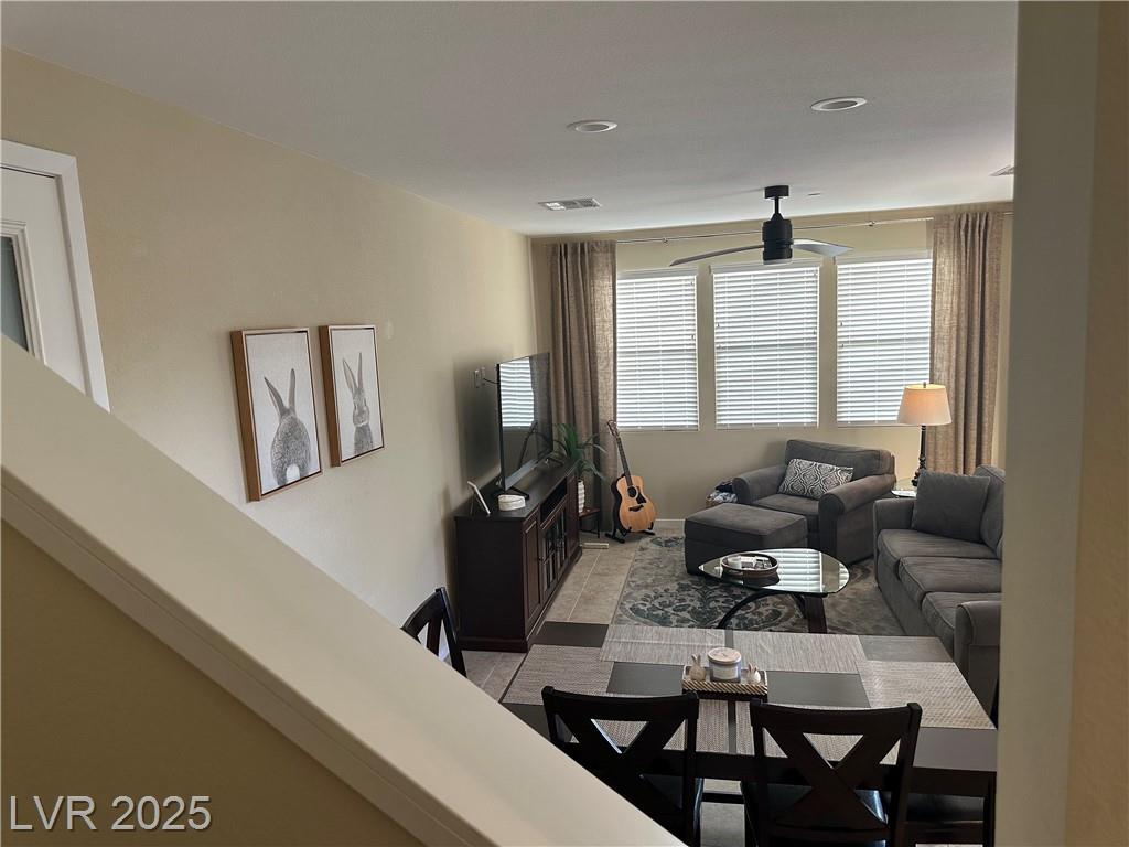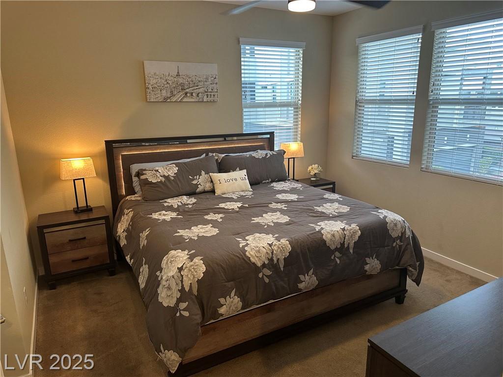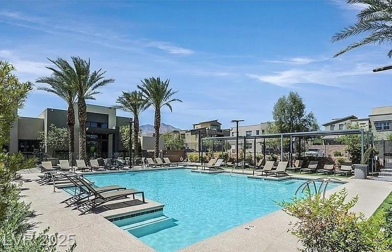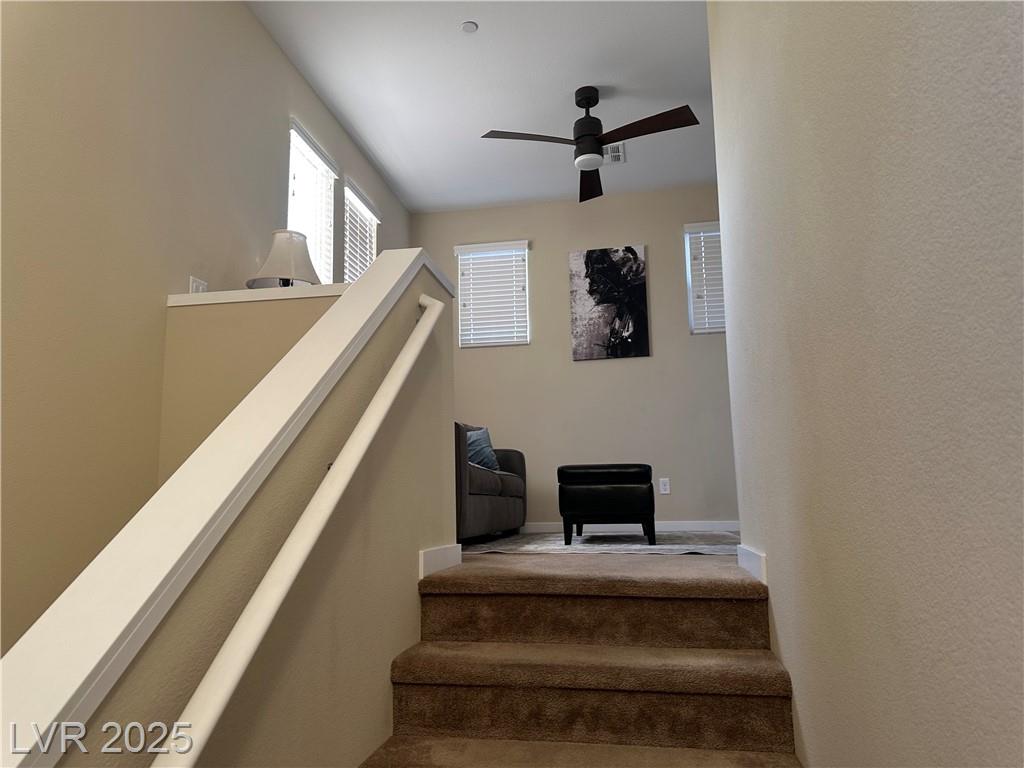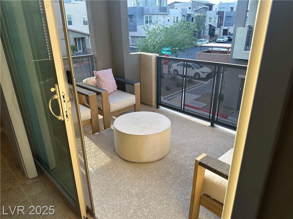 Fantastic Luxury Condominium located in PRIME Summerlin location walking distance to Downtown Summerlin and Red Rock Resort. MOVE IN READY with open spacious floorplan and lots of natural light. Spacious, living room space. Lovely, upgraded kitchen with stainless steel whirlpool appliances and quartz countertops. 2 primary bedrooms with ensuite baths. Upstairs loft area perfect for office or entertainment room. Modern fans, wood blinds, and tile and carpet throughout. End unit balcony wi peak-a-boo red rock views. 2 car garage, plus visitor parking. Affinity is the ultimate resort-style living w luxurious amenities including two year-round heated pool and spa, state-of-the-art fitness center, yoga room, pool table, outdoor fire pit lounge, and BBQ terrace. Excellent location near Downtown Summerlin, Red Rock Casino, Las Vegas Ballpark, City National Arena. Short driving distance to the Red Rock hiking trails. Luxury living at its finest. Come make this beautiful home yours today!