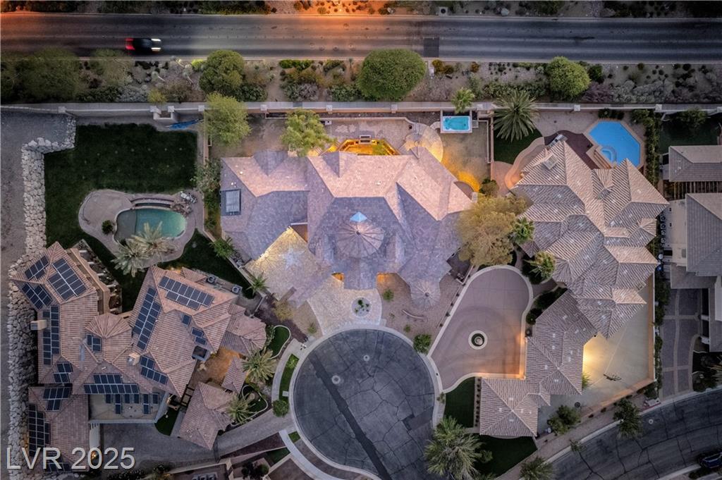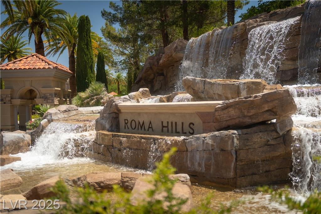 WELCOME HOME to this stunning Roma Hills estate, with elevator access to over 10,800sf of luxury living on three levels.The great room (Strip views) is substantial with kitchen, family room with built-ins, and wet bar. Versatile floorplan w/ main level featuring a bedroom suite (ideal for second gen or live-in staff) plus two add'l bedrooms. Upstairs the primary bedroom suite showcases Strip views enjoyed from the wrap-around shower or walk-out balcony. The basement offers a great assortment of entertainment: wine room, built-in bar, large theater room with stage, exercise room, sauna/steam shower, and courtyard w/ fireplace. Multiple access points to the tranquil backyard with covered patio including the 12-ft glass door slider. Custom millwork, stone, and intricate tile throughout. All BRs with BAs and walk-in custom closets. This guard-gated community nestled in the mountains delivers tranquility and lifestyle. *Install your favorite brands w/ $50,000 credit for kitchen appliances!*