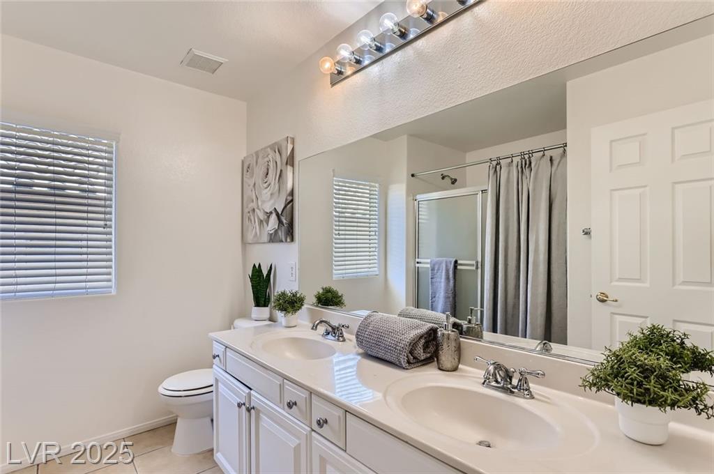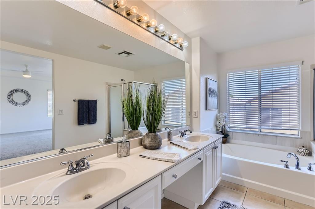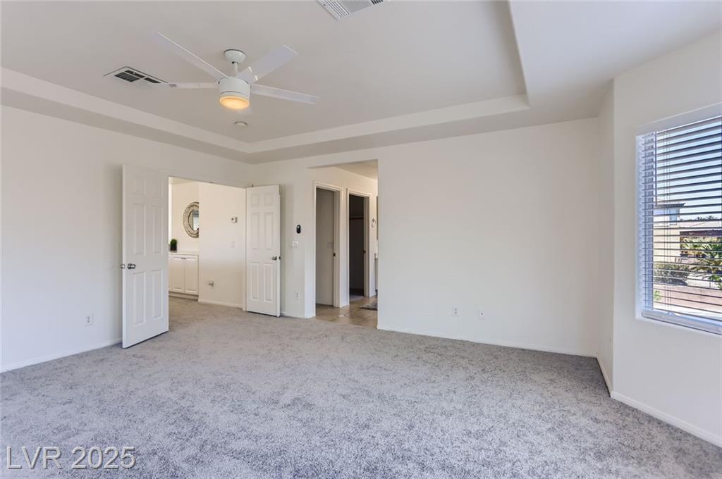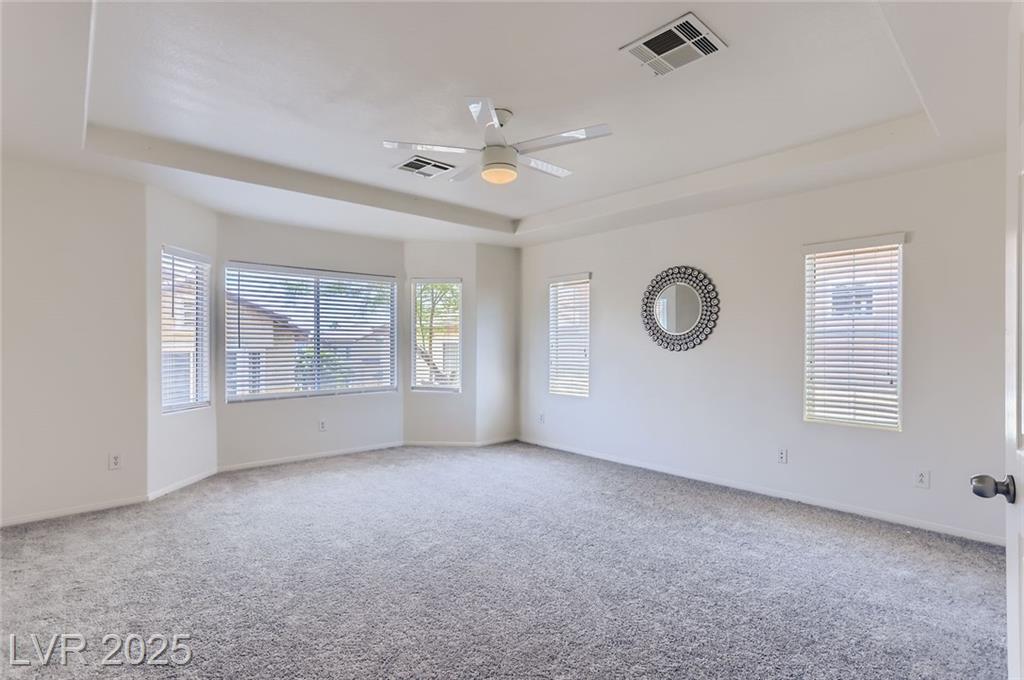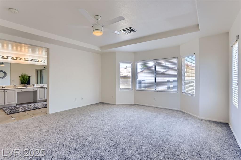 Beautiful 4BR/4BA home in the desirable Tides community with a pool, spa, and fitness center! Prime Southwest location near Spring Mountain & Durango, close to schools, shopping, and the Vegas Strip. Spacious layout with formal living, dining, and family rooms, plus a downstairs bedroom/office. Features include 9ft ceilings, tile flooring downstairs/carpet upstairs, wood blinds, ceiling fans, and a huge laundry room. Kitchen offers granite counters and custom cabinets. Upstairs has two large primary suites with walk-in closets, private baths, and balcony access. Inviting backyard with patio; exterior front yard landscaping maintained by the community.