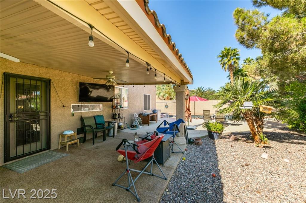 Welcome to this spacious 5-bedroom, 3-bathroom Green Valley home featuring a flexible loft space and thoughtful upgrades throughout, this property is designed for both everyday living and entertaining. Step outside to your private backyard complete with a recently repastered pool, brand new pool decking, and a soothing spa. Enjoy fresh citrus from mature trees and outdoor entertainment with the included mounted TV. A convenient backyard shed provides extra storage. Inside, the kitchen offers a large walk-in pantry and open flow. Each bedroom boasts large closets for plenty of storage. The home also features a newer 50-gallon water heater for added efficiency. Additional highlights include a 3-car garage featuring dedicated wiring for EV charging (charger not included), modern flooring, and an inviting layout ideal for a variety of lifestyles. Close to shopping, dining, and major commuter routes.