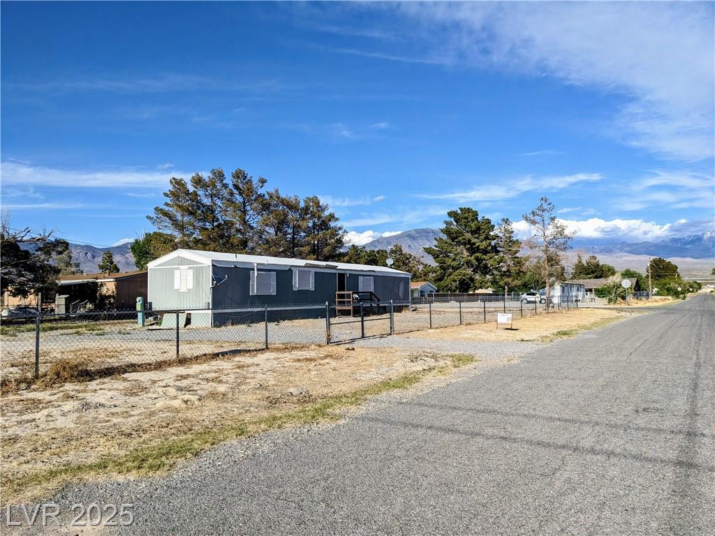 Nestled on nearly half an acre, this property offers breathtaking mountain views in Pahrump's serene north side. This charming two-bedroom, two-bath single-wide home is fully fenced for privacy. With its own septic tank and ample space, it’s perfect for enjoying full-time living or a relaxing getaway. Experience stunning sunrises and sunsets from your own slice of Nevada paradise. No HOA, no in a flood zone.