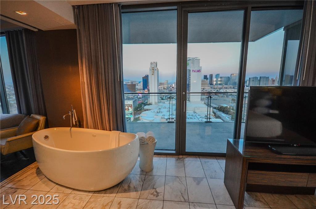 Wow! Elevate your lifestyle with this amazing 1220 sq ft. 1 bedroom, corner condo-hotel Palms Place unit on the 23rd floor! Views! Breathtaking panoramic views of the iconic Las Vegas Strip from 2 balconies & through floor-to ceiling glass walls. This fully furnished suite features a large living area w/ spectacular Strip Views! Spacious primary bath w/ an oversized shower & separate tub, overlooking the Strip. Palms Place has direct access to Palms Resort & Casino via an indoor moving walkway: you’re just moments away from the excitement. Services include concierge, valet parking, pool cabanas, fine dining, a luxurious spa and state-of-the-art gyms. Use the unit alternately as a personal retreat or an investment opportunity. This unit can be easily used as an Airbnb or join the in-house rental program. Situated in the heart of Las Vegas, you're just moments away from top attractions, shopping, & vibrant entertainment! See this unit today and EXPERIENCE Las Vegas!