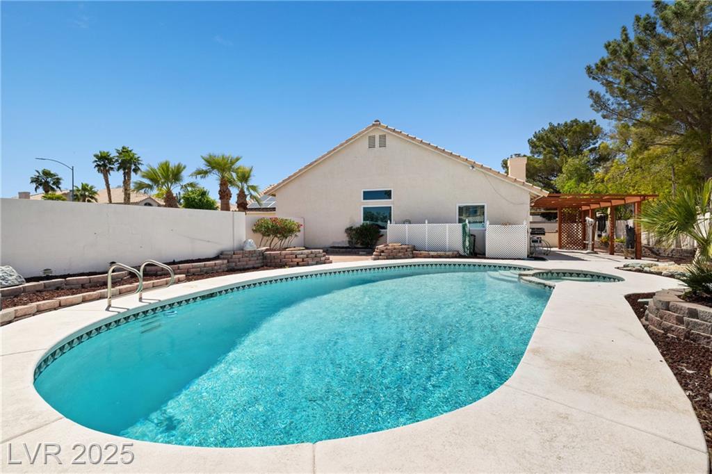 Super sleek single story on large cul-de-sac lot with no HOA! Soothing and private pool in back with great sun exposure. BBQ and patio too! Inside is bright and cheery interior with tile and plank flooring throughout. Island kitchen overlooks fireplace anchored family room. Sunny nook area too. Walk through the front door into a spacious area with flexibility living, dining, or both! Primary bedroom offers dual sink ensuite with separate tub and shower. Secondary bedrooms are ample and flooded with natural light. Den room has access from hall or appealign double door entry from foyer. 3 stall garage. Located in the desirable Northwest with easy access to the US95.