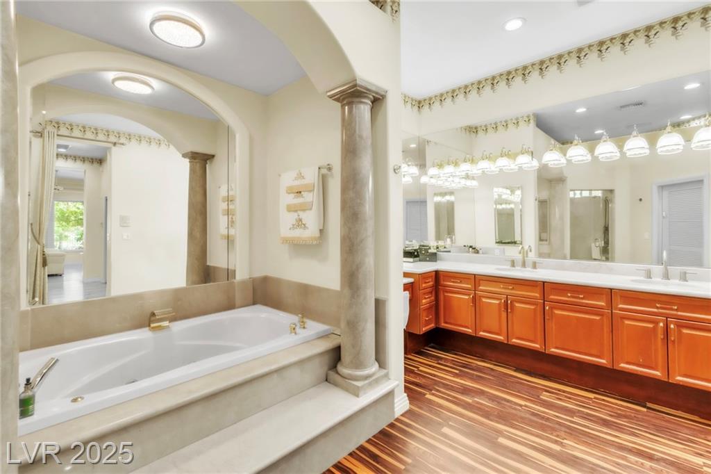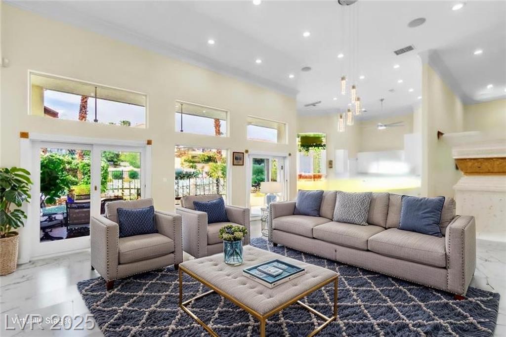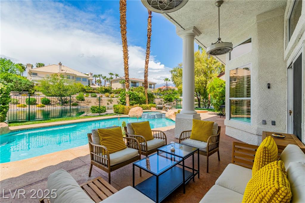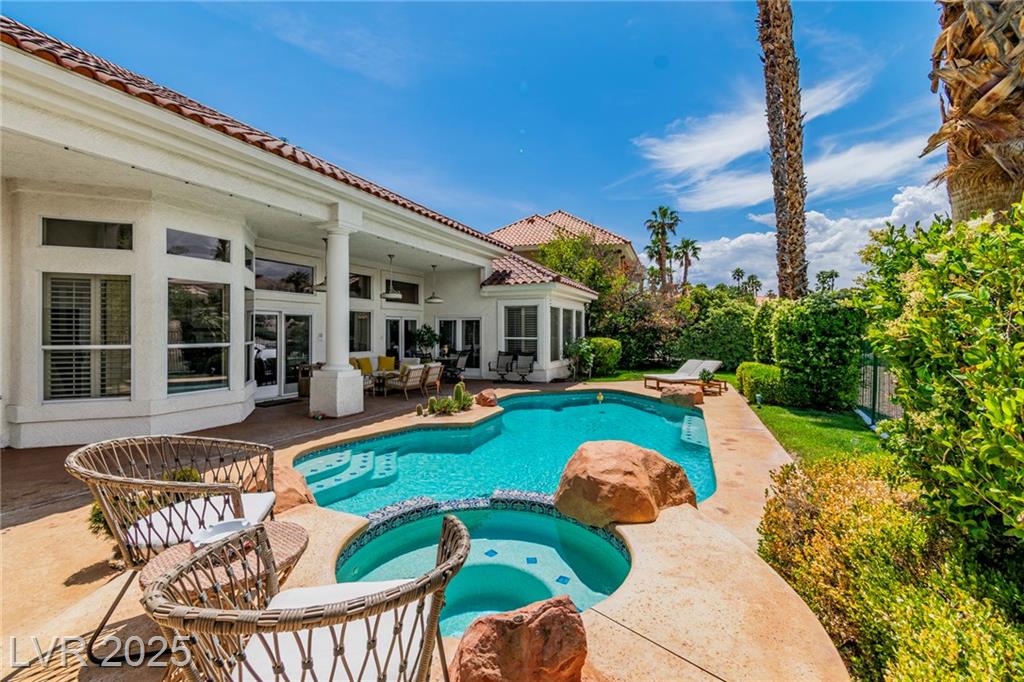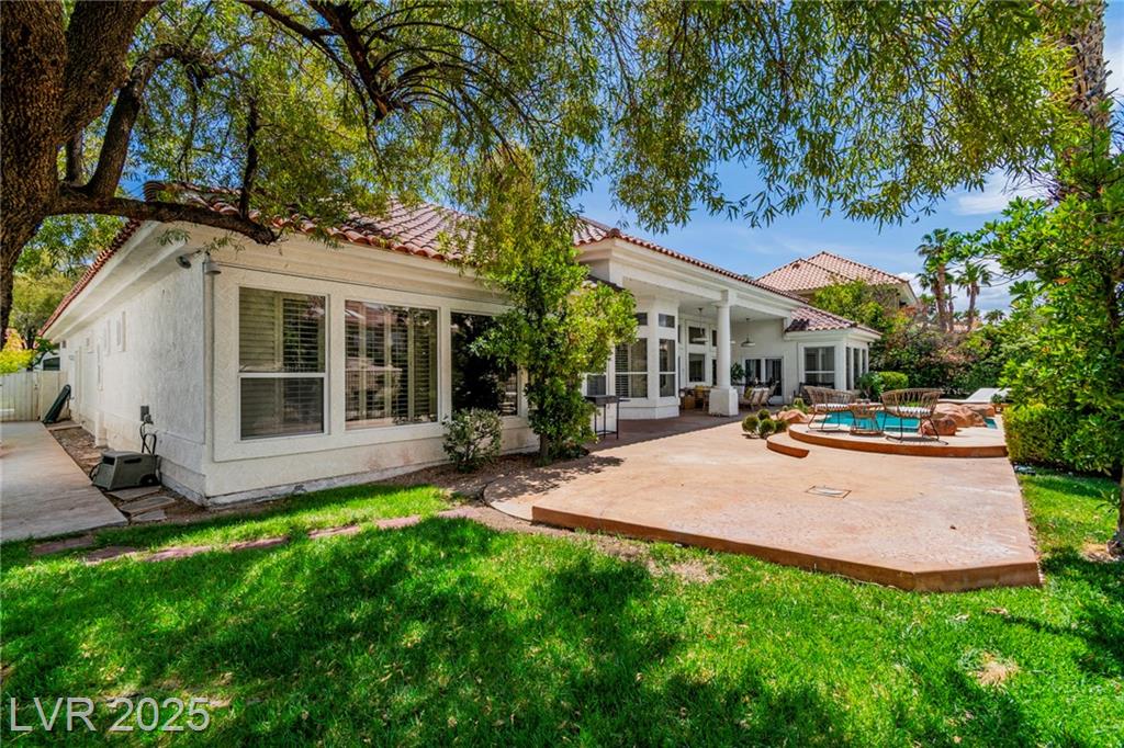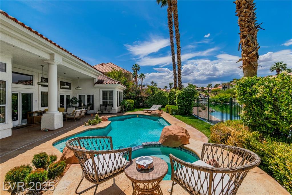 Don't miss this amazing single story luxury custom double guard gated home in the esteemed canyon gate country club with a breath taking lake view .This outstanding residence features custom cabinets, quartsite counter tops , custom flooring ,4 beds, an office , 3 car garage ,formal dining, formal living room and pool & spa.You are not just purchasing a luxury custom home but a country club life style inside canyon Gate. This amazing community offers the security of guard gated 24 hr security, Tennis and pickle ball courts with resident professional staff members offering private lessons, playing in club and league opportunities.Canyon Gate Country club also has fitness room, club house , community, pool, spa and exercise facilities . Conveniently located to down town Summerlin , Redrock country club , The Raiders Allegiant stadium, The Golden knights T mobile Arena,World famous Las Vegas strip ,BUYERS AND BUYERS AGENT TO VERIFY ALL INFO Hoa fees, school zones etc.