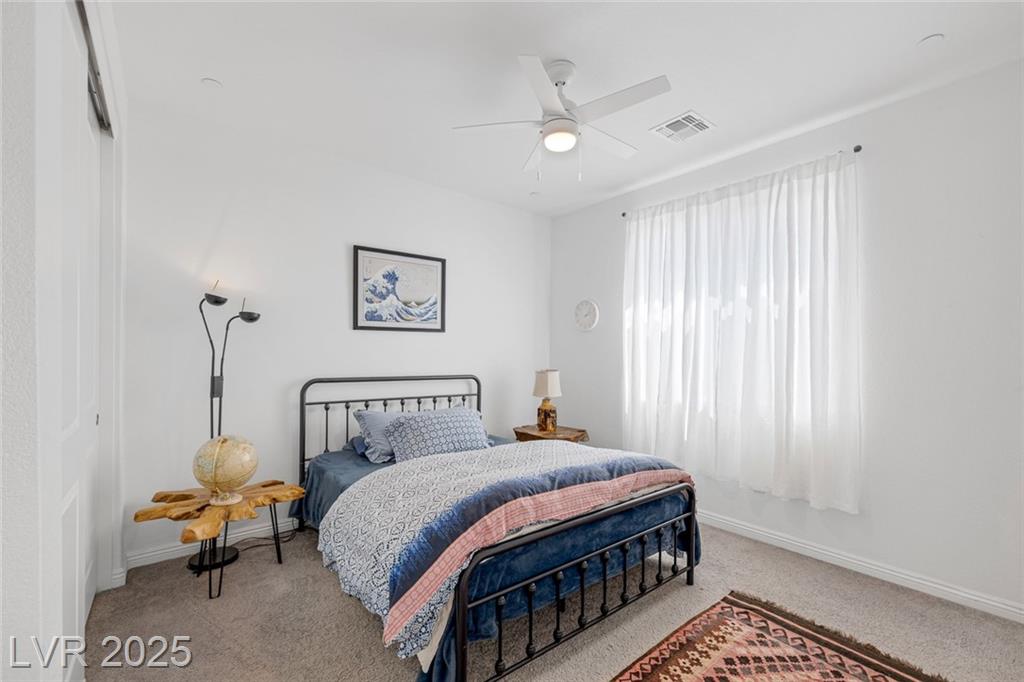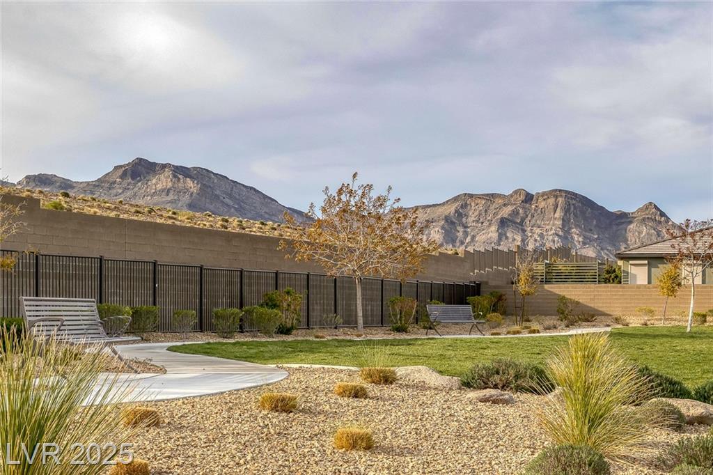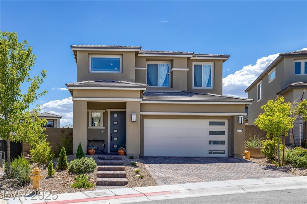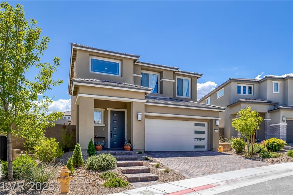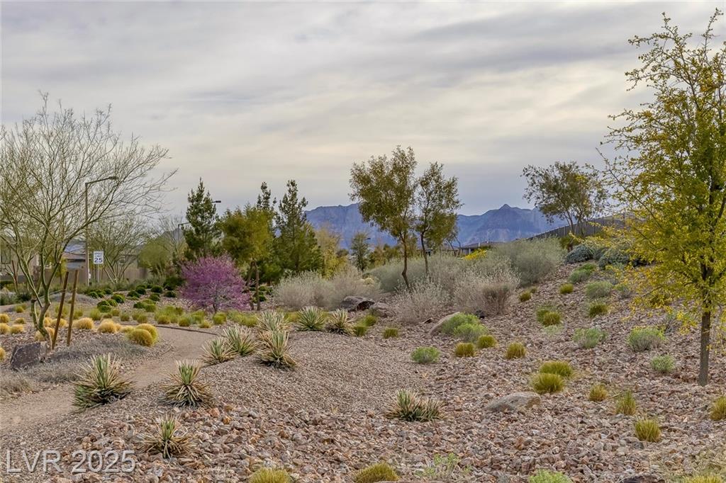 NEW PHOTOS ARE IN | Clean and bright with immaculate energy, this tranquil home lives like a single story with the Primary Suite on the main level and a RARE 4th bathroom. Open gathering rooms are filled with natural light and ample hidden storage expands usable areas, making it feel a little easier to breathe. Soaring vaulted ceiling with abundant light makes a cheerful entry and a large loft adds a 2nd living space. Spacious bedrooms include large closets and an ensuite upstairs. Nestled on a quiet tree lined cul-de-sac, find peace in this gated community with gorgeous views. Enormous pool-sized yard has been beautifully landscaped with rows of trees and smooth river pebbles, with a natural clover lawn on order! Located in the rare, small cross-section where the highest-rated elementary, middle and high schools converge, this community enjoys above-average appreciation. Near the best hiking, biking, and climbing in the highly sought after Summerlin community. SCHEDULE A TOUR TODAY!