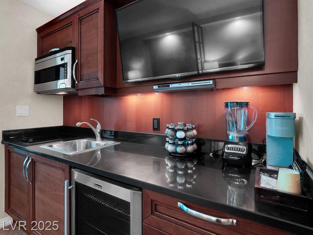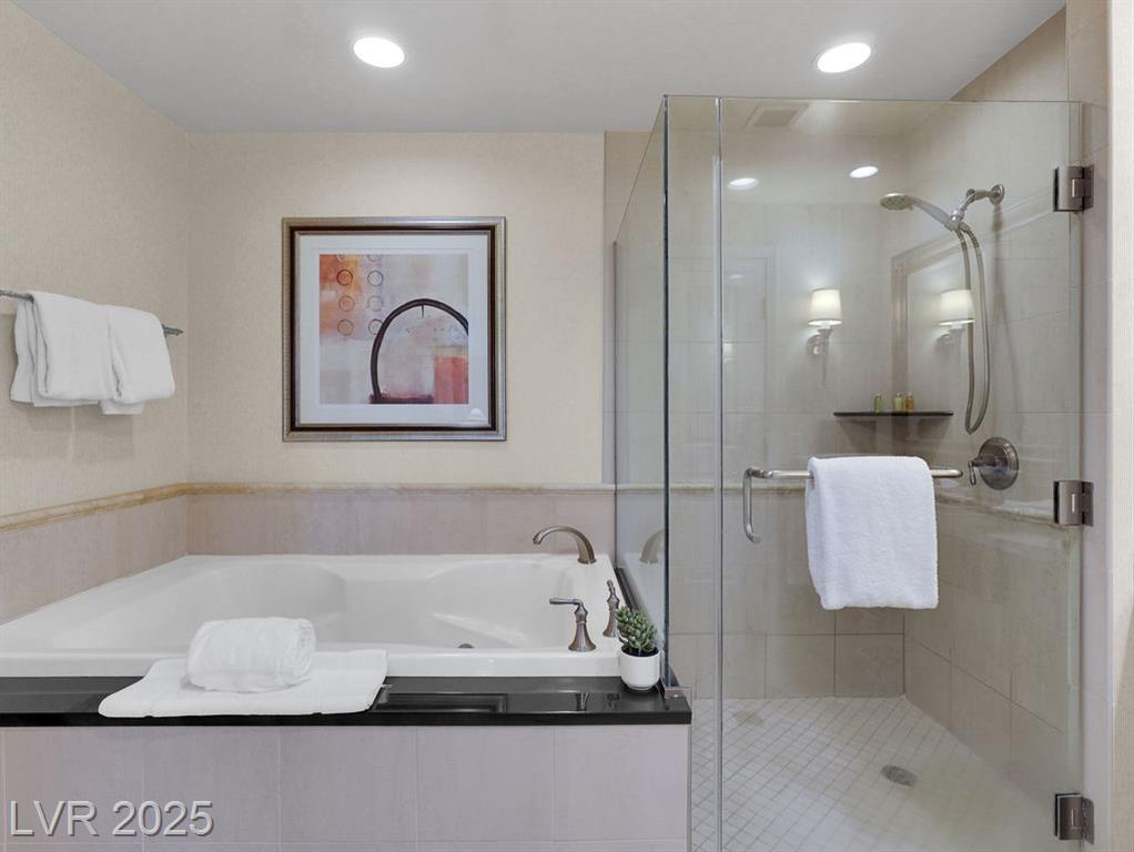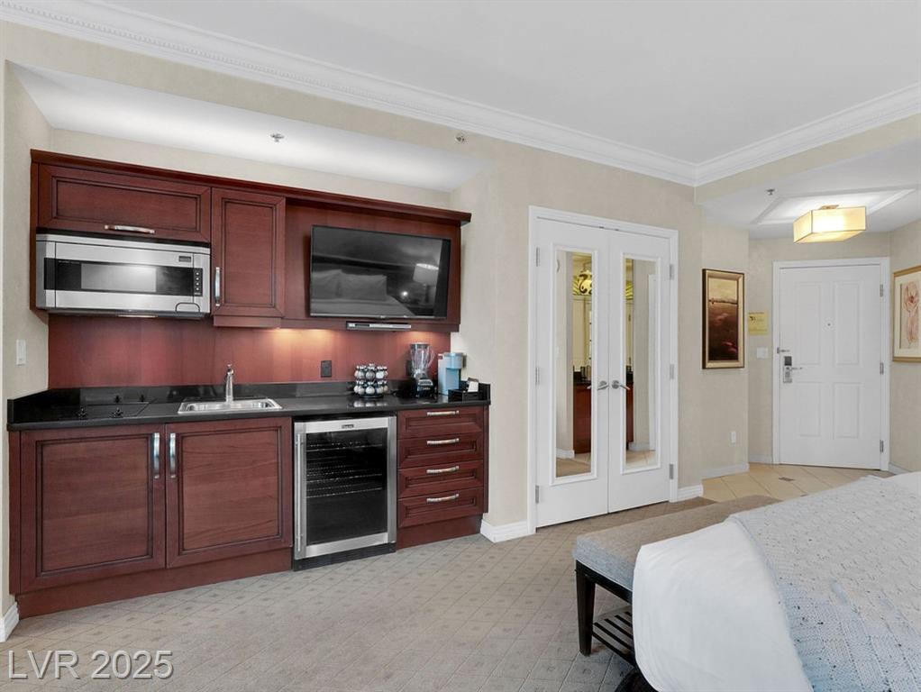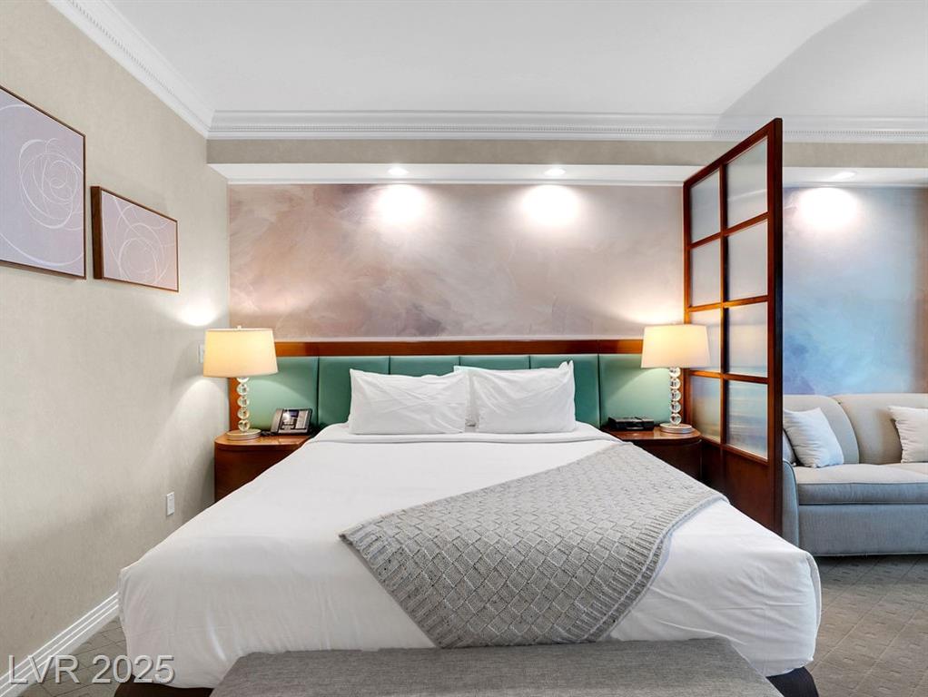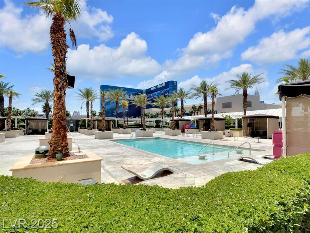 STRIP VIEWS. Beautiful studio condo in Tower 1 of MGM Signature. The fully furnished turnkey suite features a kitchenette with high end stainless steel appliances, a two burner stove, microwave refrigerator, sink with granite countertops. Built in entertainment center, closet with safe and extra bedding.Spacious bathroom with double sinks, jacuzzi tub, and walk in shower. The unit comfortably sleeps four, with a luxurious king bed and pullout sleeper couch.Enjoy MGM Signature's 3 private heated pools, spas and cabanas. Connected to MGM Grand, Wet Republic Ultra Pool, Lazy River and several high end restaurants. AIRBNB APPROVED. Schedule your private tour today.