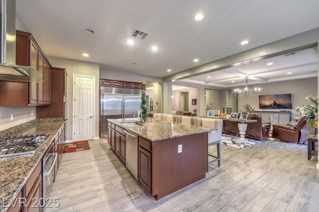 Here it is just what you were looking for. This impeccable NextGen home has separate living quarters for all your NextGen needs. 6 bedrooms 4.5 baths and 4589 square feet of living area. Large chef's/entertainer kitchen which features granite counters, large breakfast bar, stainless steel appliances and walk-in pantry. Dual Primary Bedrooms situated down stairs along with 2 additional bedrooms with Jack & Jill bathroom. Separate den area for NextGen needs. Upstairs features huge loft area with 2 more bedrooms and full bath. Large over-sized Family Room. This Home sits on a little of a 1/3 of an acre. Backyard is perfect for entertaining with large oversized patio and inviting inground pool and spa. Just waiting for the new Buyer to call this "HOME". Seller spent over $83,000 for the oversized covered patio and over $40,000 in landscaping.