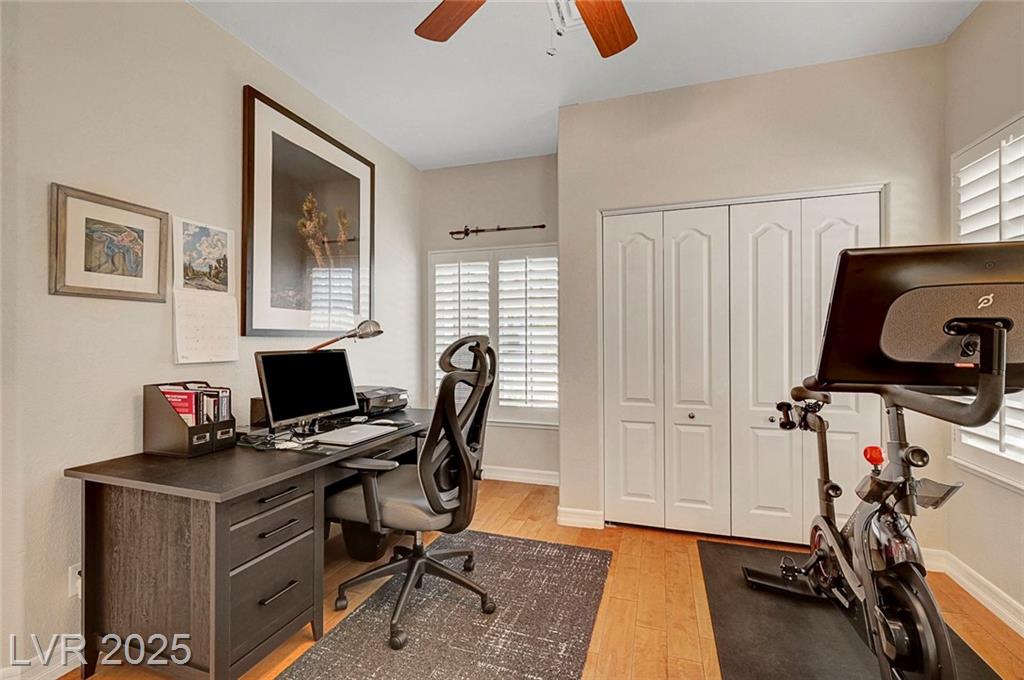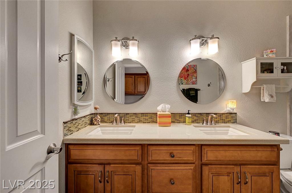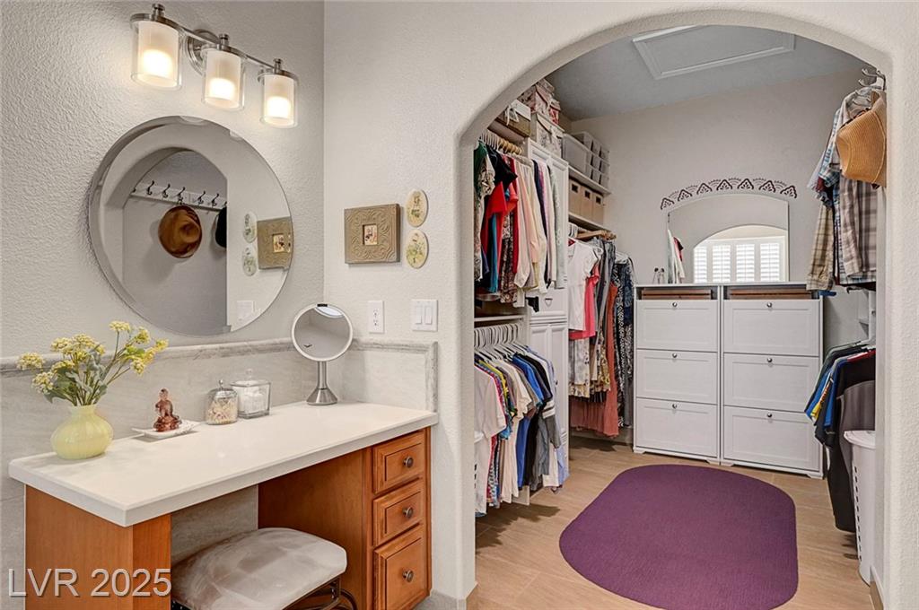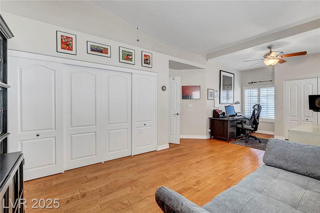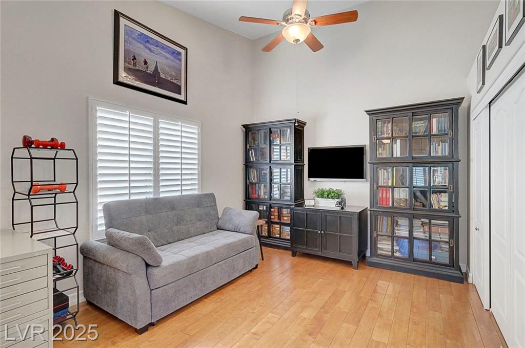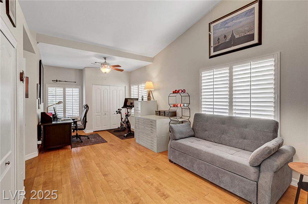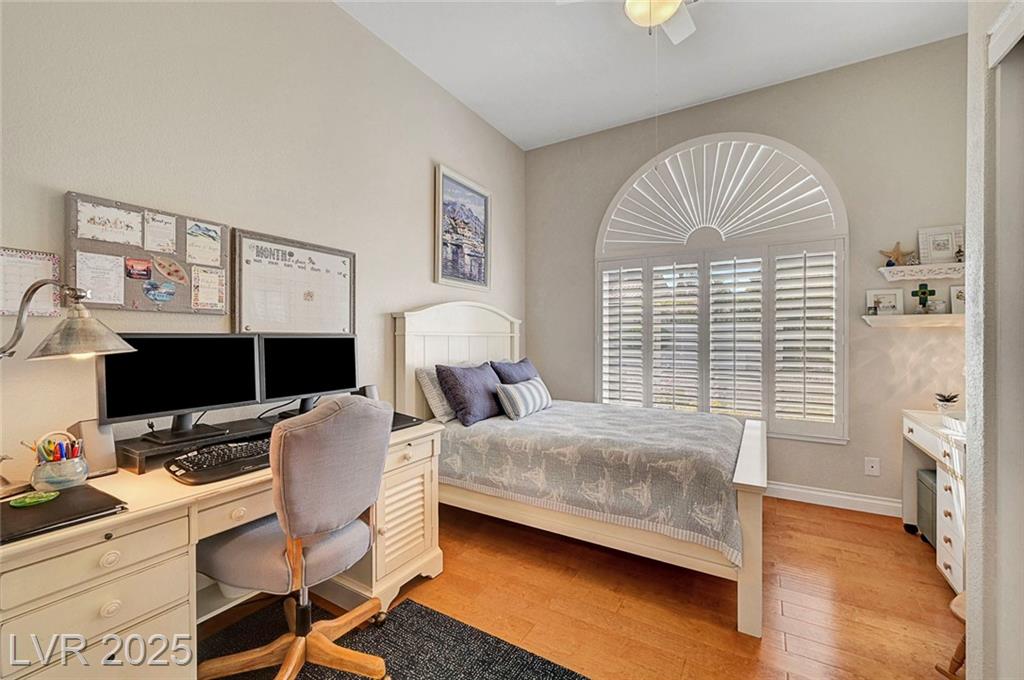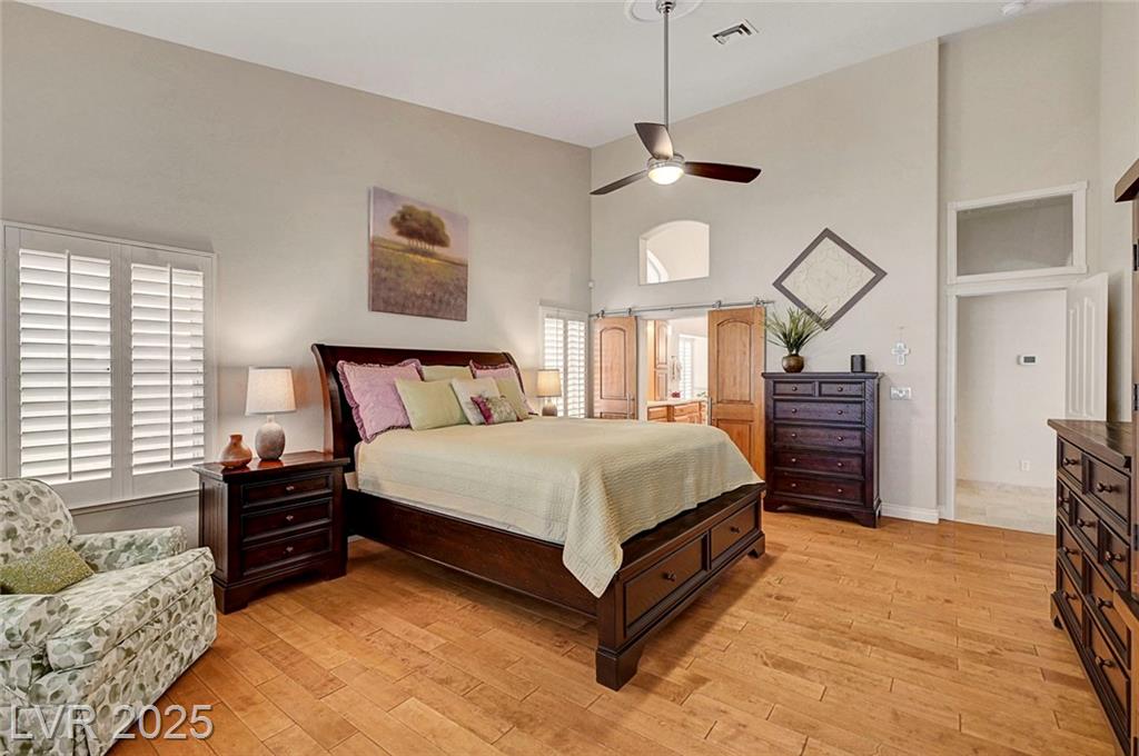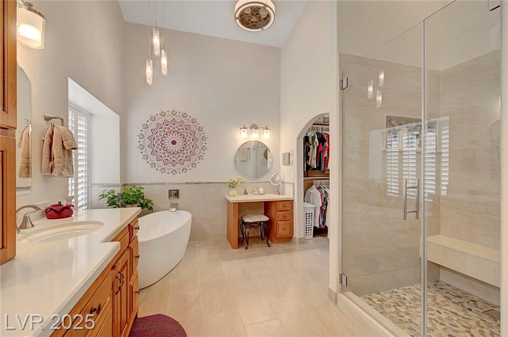 Beautifully renovated home in the heart of Peccole Ranch, where tree-lined walking paths, clubhouse, and playground create a welcoming community just minutes from Downtown Summerlin, Red Rock, and Tivoli Village. Sun-filled living spaces showcase wood flooring in bedrooms, elegant tile in living areas, and plantation shutters throughout. The gourmet kitchen is designed for both function and style, featuring Silestone counters, solid maple KraftMaid cabinets with roll-out shelves, island, walk-in pantry, and Kenmore Elite stainless appliances including double ovens and new water system. The spa-inspired primary suite offers freestanding tub, tiled shower, and spacious walk-in closet for a true retreat. Step outside to private backyard oasis with covered patio, misting system, pizza oven, fireplace, and BBQ stub—ideal for memorable gatherings. With no rear neighbors, solar screens, and heat/theft-resistant tinted windows, this move-in ready gem blends comfort, privacy, and peace of mind.