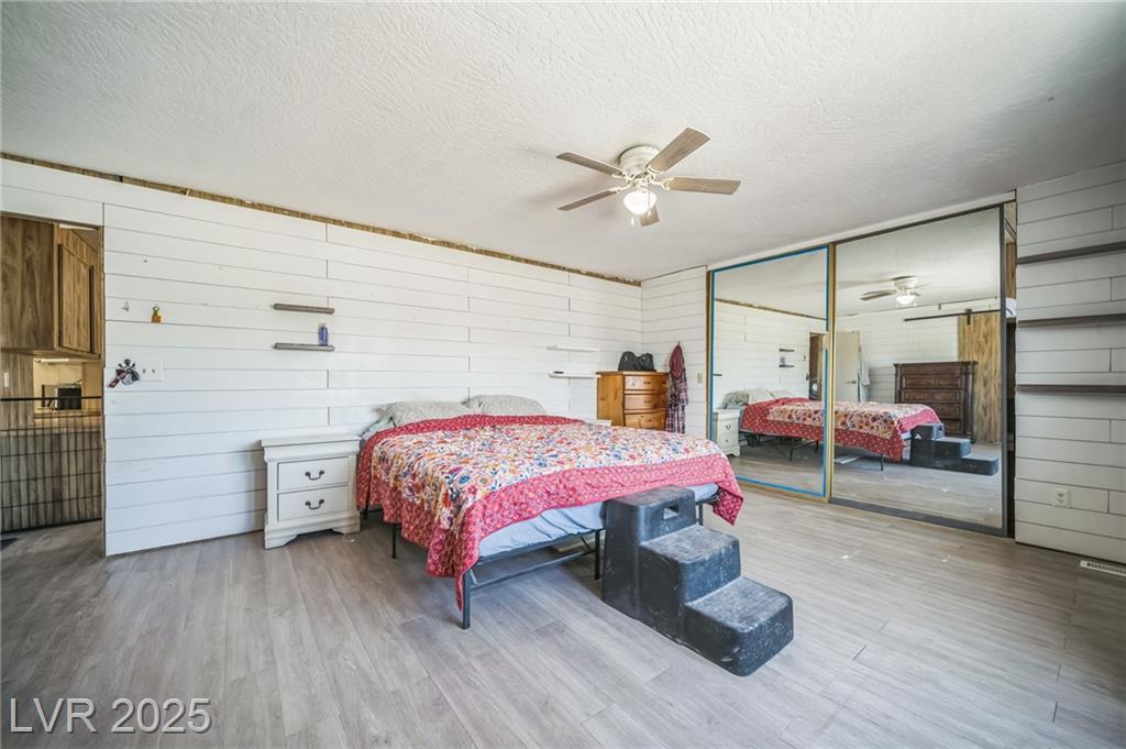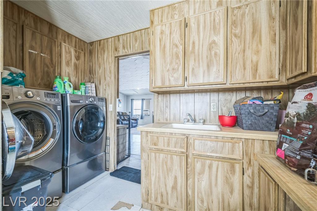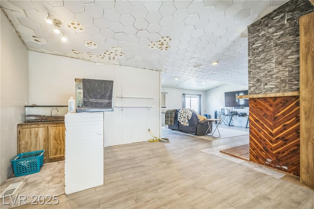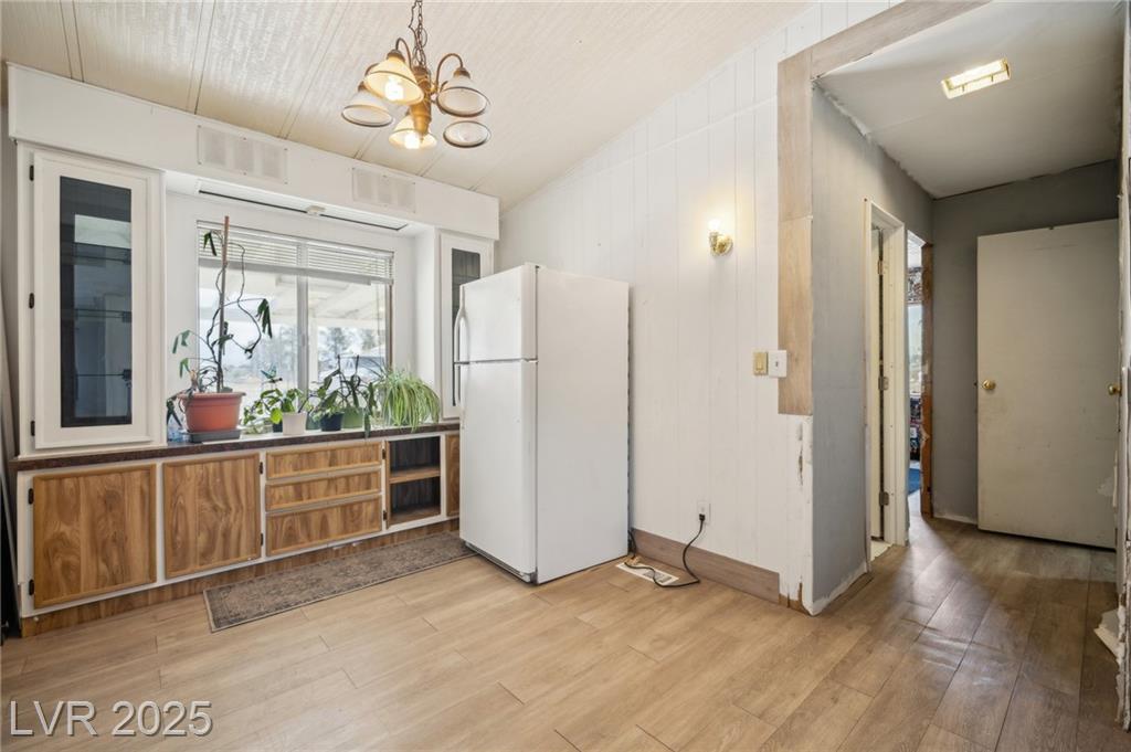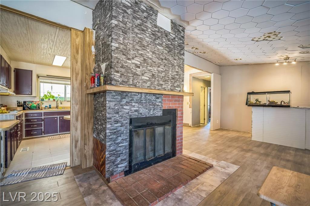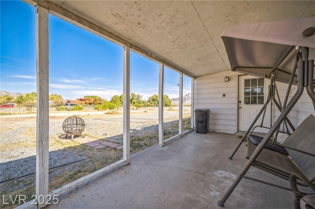 Welcome to this well-maintained 3-bedroom, 2-bathroom manufactured home offering 1,810 sq ft of comfortable living space. Situated on a generous 1.06-acre lot in northwest Pahrump. The inviting great room features a built-in fireplace and a wet bar, perfect for entertaining or relaxing evenings. The kitchen is equipped with abundant cabinetry, expansive counter space, built-in double ovens, a cooktop, dishwasher, and refrigerator—all included. A separate dining room adds to the home's functionality and charm. The primary suite boasts a large closet with mirrored doors and an en-suite bathroom featuring a garden tub and a separate walk-in shower. Additional highlights include a detached 2-car garage. The property's expansive lot offers endless possibilities for outdoor activities, gardening, or additional structures. Enjoy the tranquility of desert living with stunning mountain views, all while being conveniently located near local amenities.