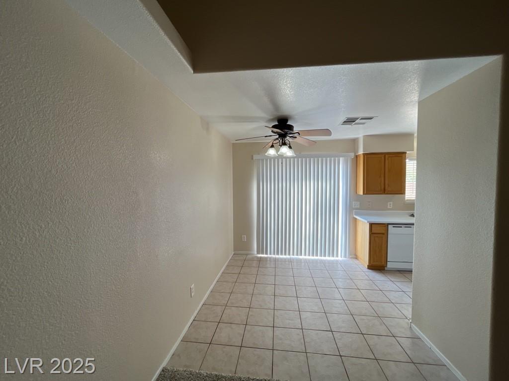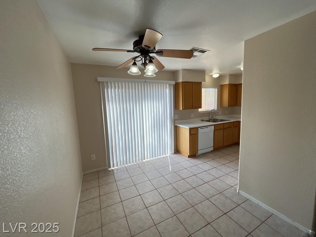 Stunning single story 3-bedroom 2-bathroom home with approximately 1408 SQ. FT located in the Eagle View Subdivision. Kitchen features laminate counter tops, plenty of counter space and window overlooking backyard. Primary bedroom has a huge walk-in closet, primary bath has double sinks and a stand-up shower. Plantation shutters throughout. Easy to maintain desert landscaping in both front and backyards. This home is located just a few minutes from Clark County Museum and Equestrian Park & Trailhead that offers dog park and trails for your early morning walks.