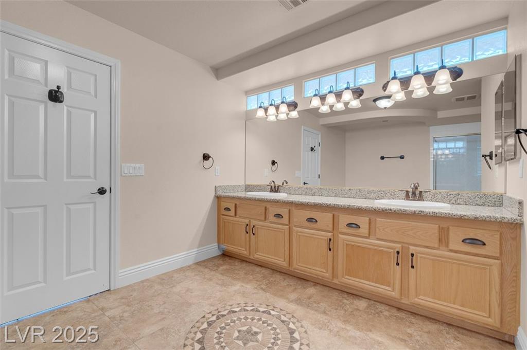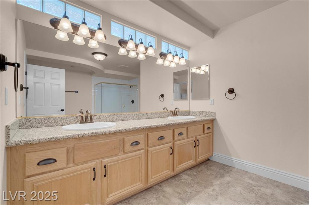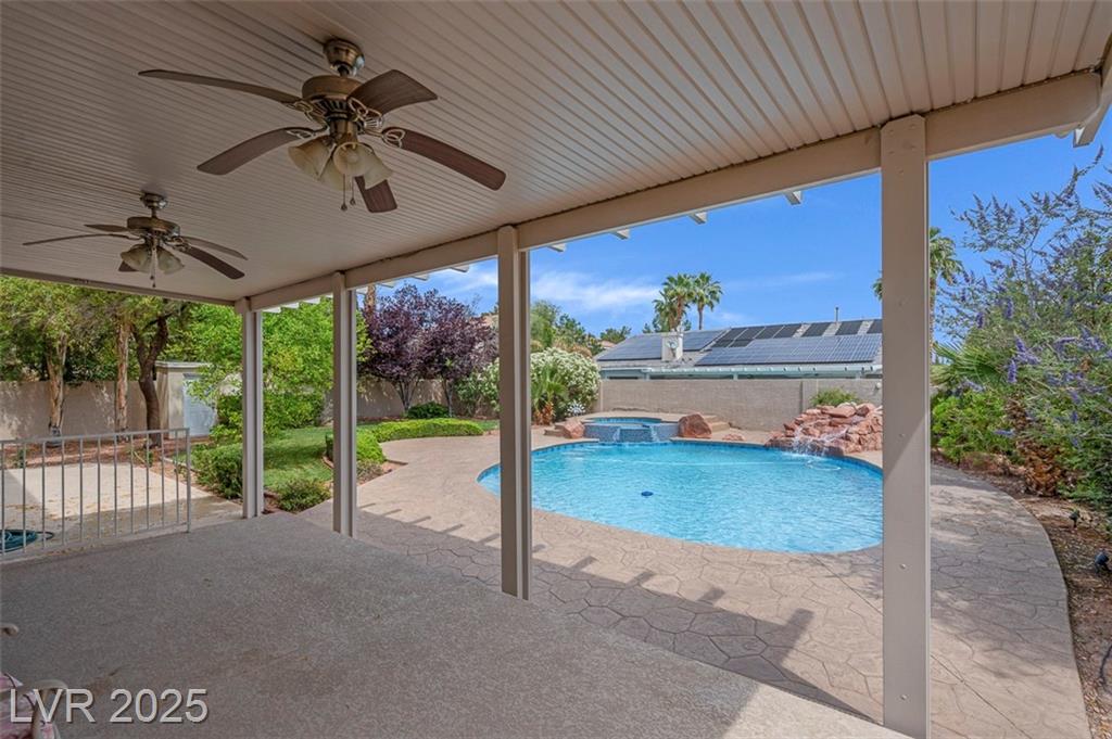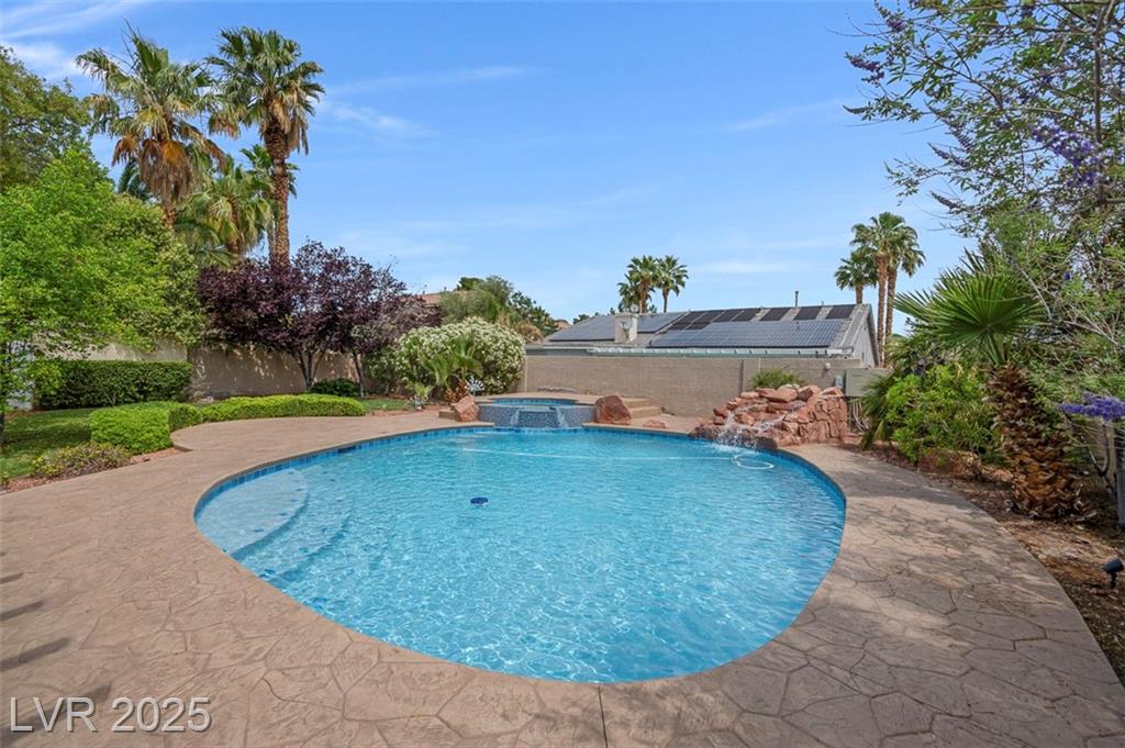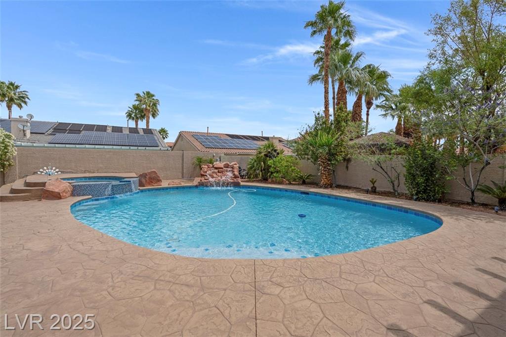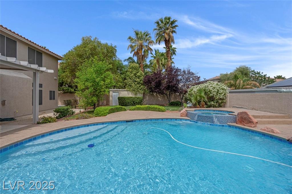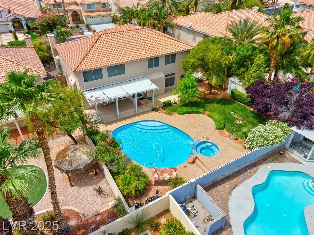 HUGE PRICE REDUCTION Functional 5-bed/5-bath residence nestled in the exclusive Silverado Ranch Estates gated community. This expansive 5,073 sq ft home sits on a premium .26-acre cul-de-sac street lot. Gourmet Kitchen featuring granite countertops, large island, double ovens, stainless steel appliances, and a 6 burner stove top. Spacious family room equipped with gas fireplace & wet bar perfect for entertaining. Finished BASEMENT providing additional living space is a rare find. Upstairs loft area with ceiling fans and closet. Owner's suite with double door entry, ceiling fan, 2 walk-in closets, raised vanities, dual sinks, shower, & soaking tub. 3 additional upstairs bedrooms, each with ceiling fans and walk-in closets. One bedroom on the main level with a bathroom. 3-car garage with epoxy floorings & shelving . Oversized backyard featuring a covered patio, pool and spa with waterfall, grass, and mature landscaping. This exceptional home offers a blend of comfort & functionality.