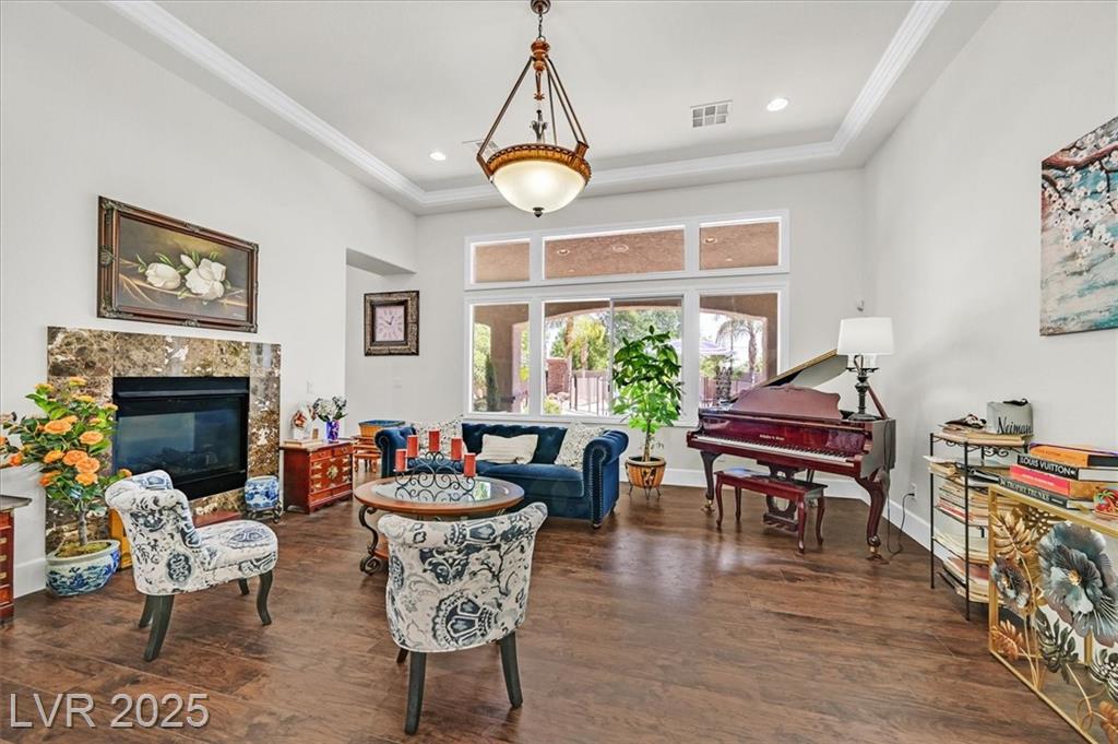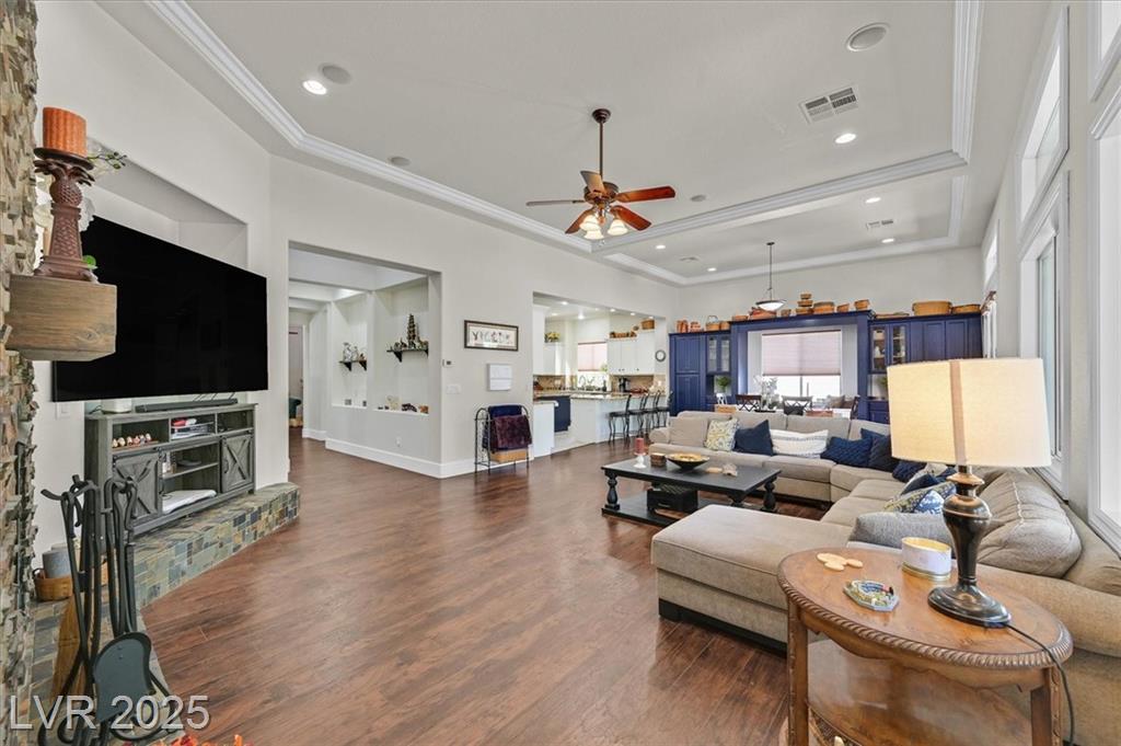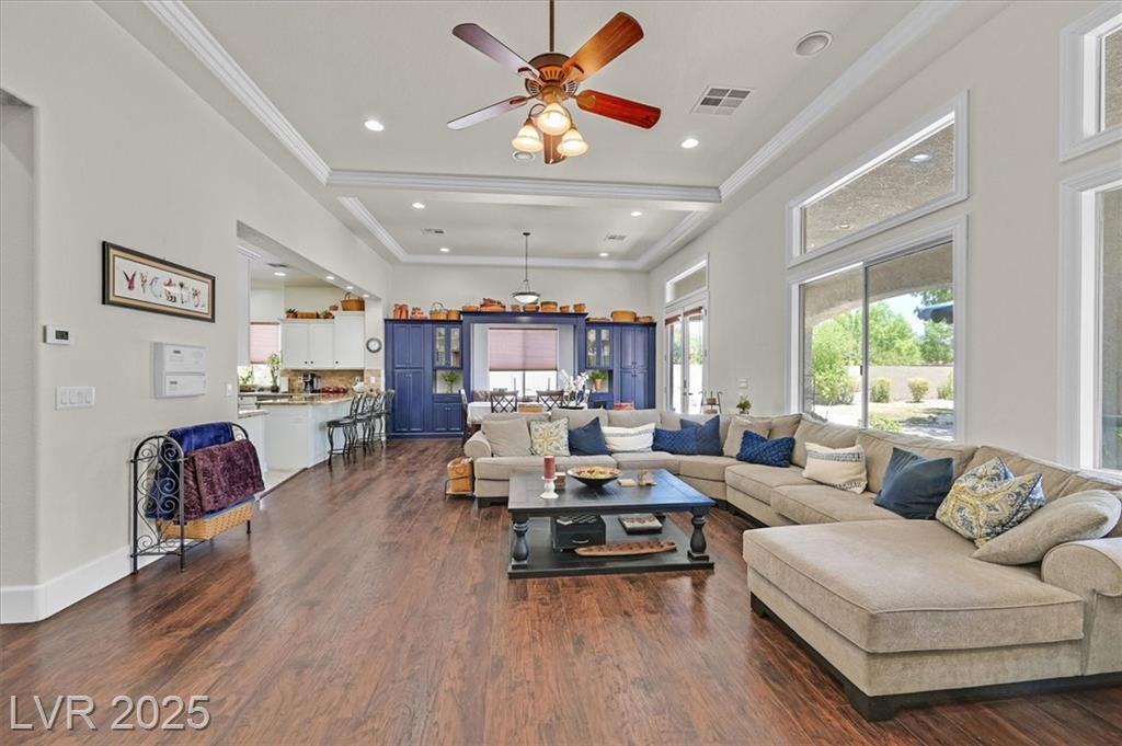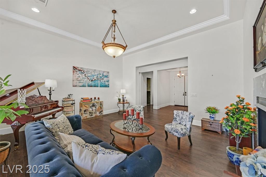 Elegant 4,036 SF Toll Brothers single-story in gated Toscana, nestled on nearly ½ acre with mountain views and no rear neighbors. Features 3 spacious bedrooms, 3.5 baths, and a den with attached bath—perfect as a 4th bedroom, office, or playroom. Bright, open floor plan with soaring ceilings, crown molding, oversized rooms, and a custom closet in the primary suite. Chef’s kitchen includes large island with vegetable sink, walk-in pantry, butler’s counter, and refreshed navy-blue cabinetry. Energy-efficient solar panels installed. Double gated spacious RV parking fits recreational toys, and/or two 45-ft RVs with electrical hookup. Oversized 3-car garage offers built-in workspace. Resort-style backyard with sparkling pool, built-in BBQ, and covered patio—ideal for entertaining or relaxing. Lush landscaping and a welcoming courtyard complete this stunning home in one of the northwest’s most desirable communities.