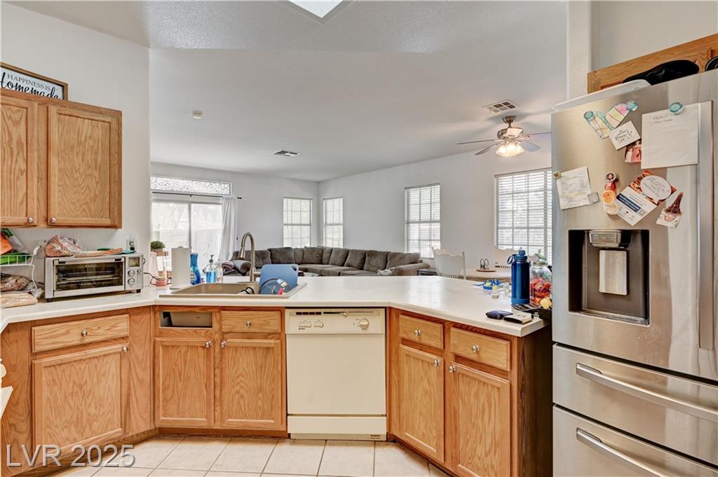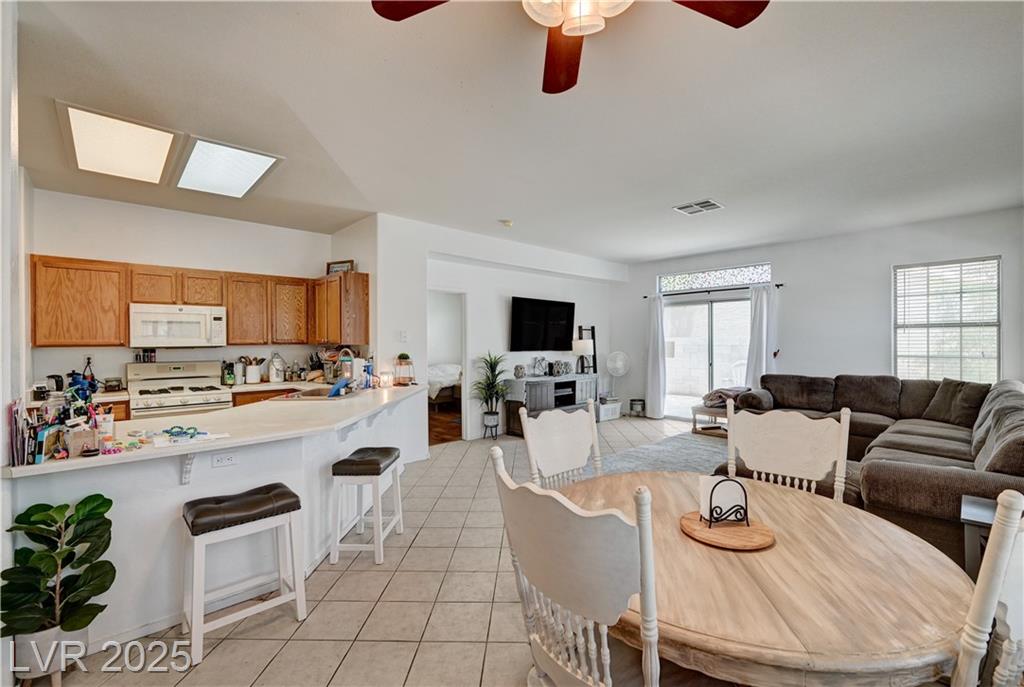 THIS WELL CARED FOR HOME IS BEING SOLD BY 2nd Owner**GREAT ROOM FLOOR PLAN WITH 9' CEILINGS*3 BEDROOMS (PRIMARY IS SEPARATE FROM OTHERS)**CERAMIC TILE THROUGH OUT EXCEPT BEDROOMS ARE LAMINATE**NEWER SS REFRIG.**NEWER MICROWAVE AND H20 HEATER WITH RECIRC. PUMP. VERY PRIVATE REAR YARD