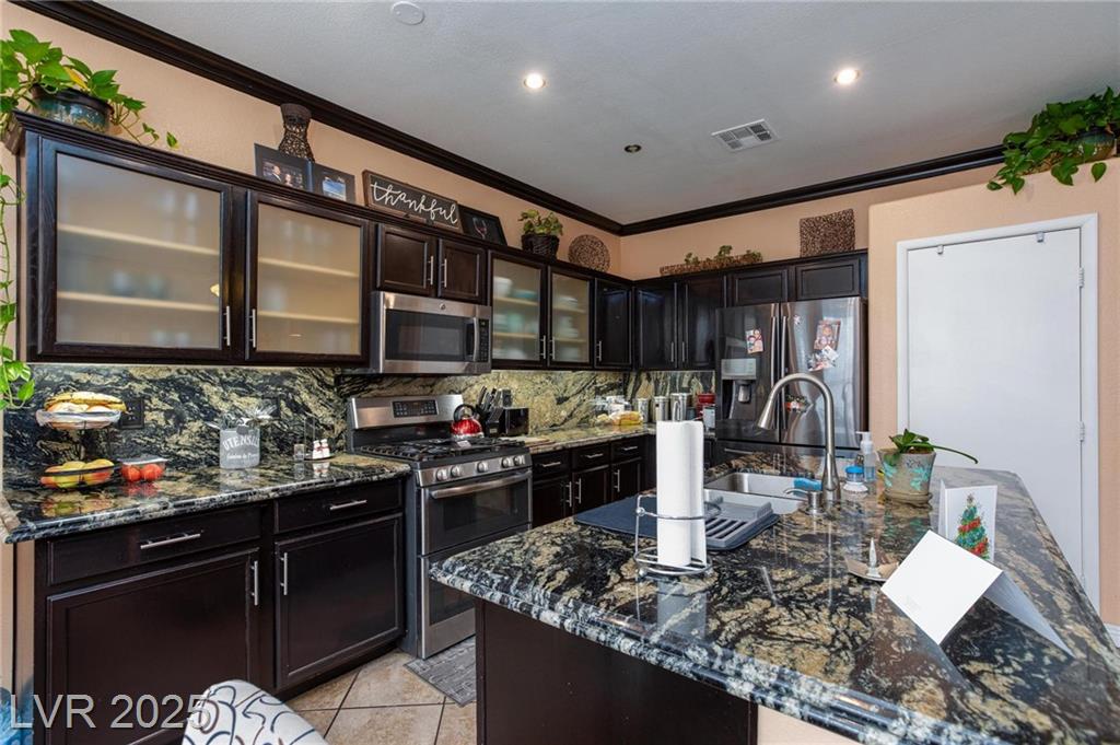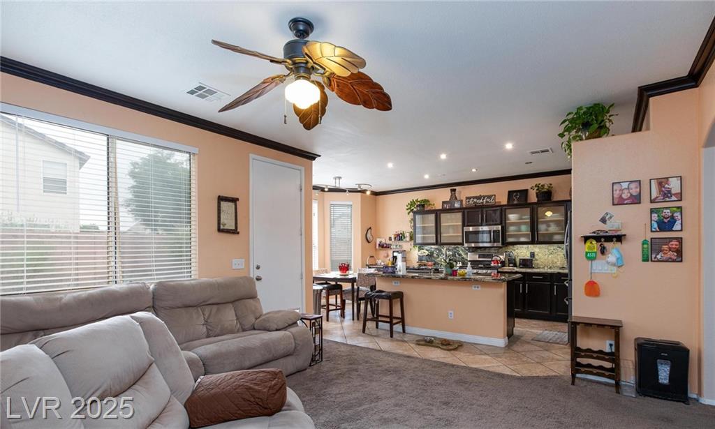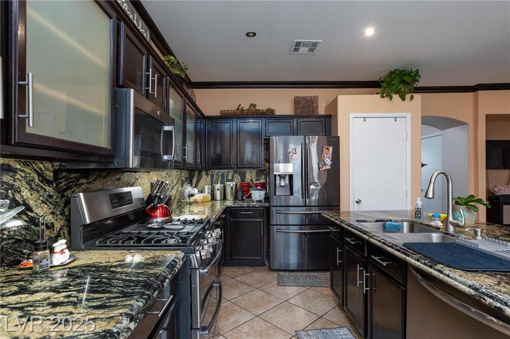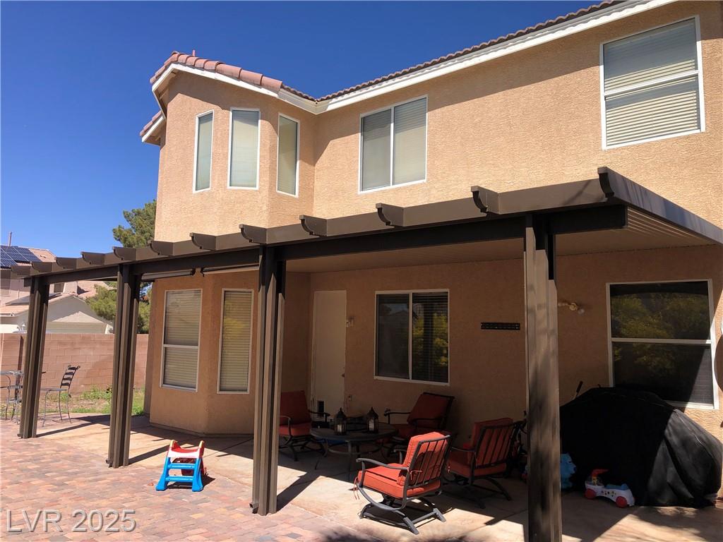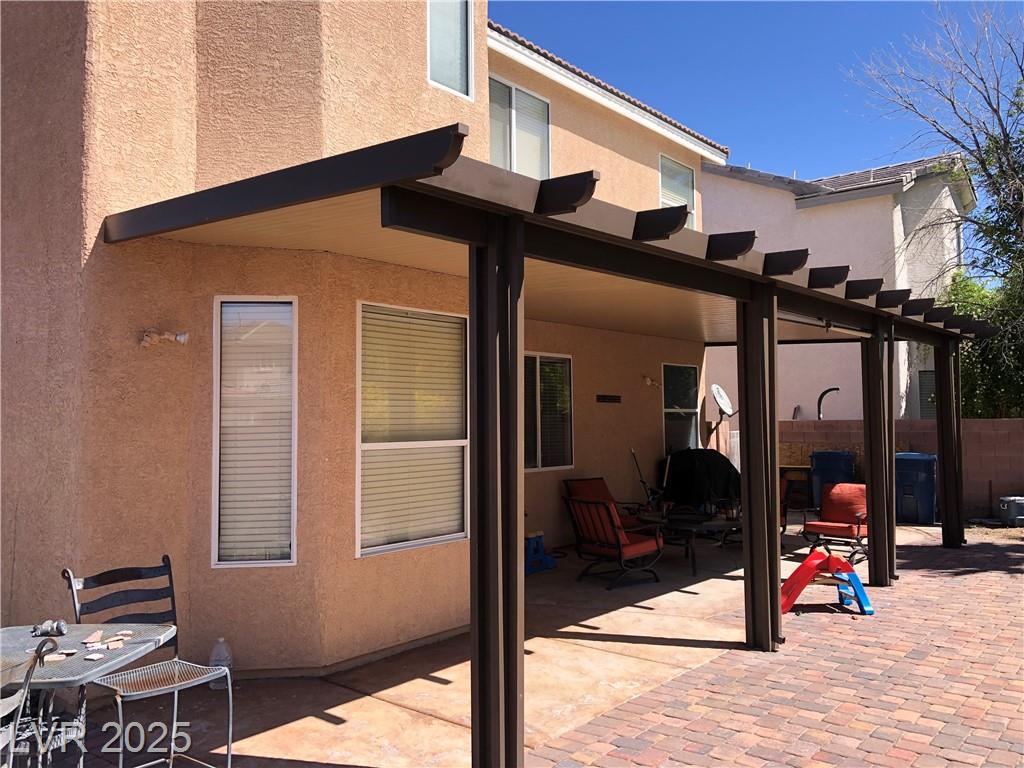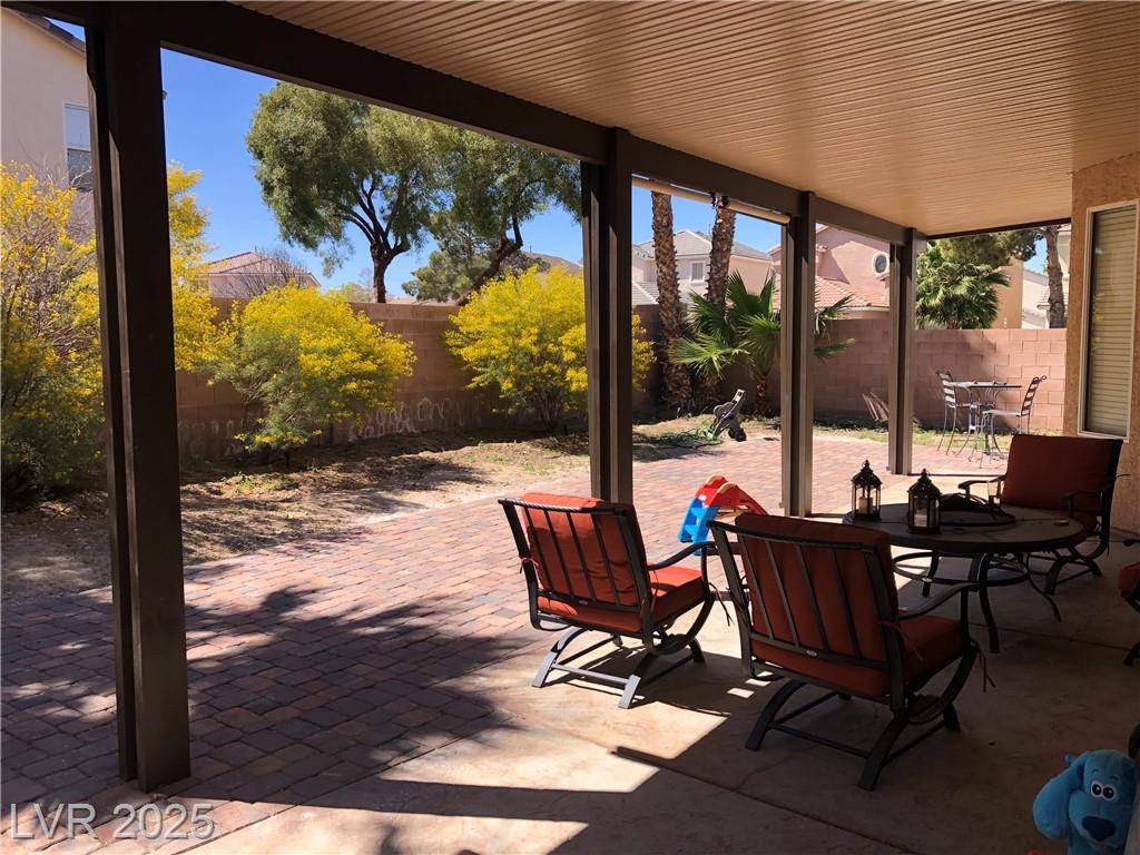 Wow...this one is a must-see! This beautiful corner-lot gem is tucked inside the gated community of Heritage, just 10 minutes from Nellis Air Force Base. From the moment you walk in, you’ll be wowed by the soaring vaulted ceilings and spacious layout featuring 4 bedrooms, 3 full bathrooms, and a flexible loft space perfect for a home office, game room, or cozy retreat. The kitchen is the heart of the home, with sleek granite counters, a large island, and a bright breakfast nook—just right for your morning coffee. Step outside to your private backyard escape, complete with a brand-new patio cover that’s perfect for relaxing or entertaining guests. You’ll also enjoy a full 2-car garage, low HOA, and a great location close to shopping, dining, and more. And the best part? The homeowner will be there to chat and answer any questions—giving you the inside scoop on what it’s like to live here. Priced to sell, this just might be the forever home you’ve been waiting for!