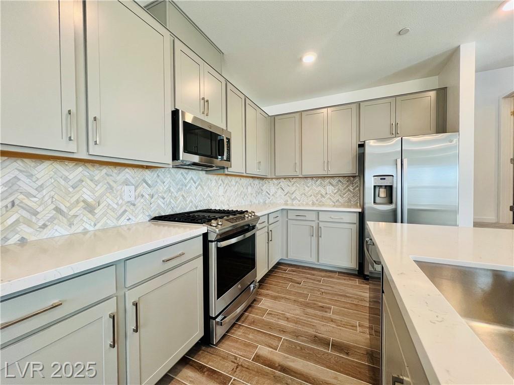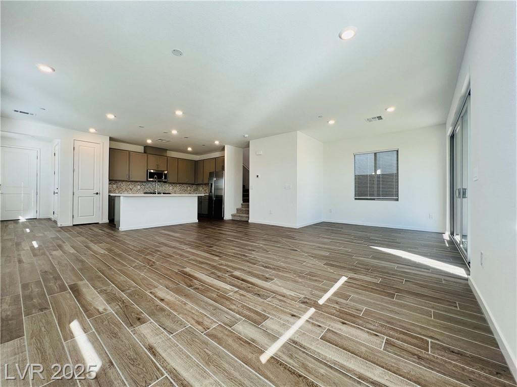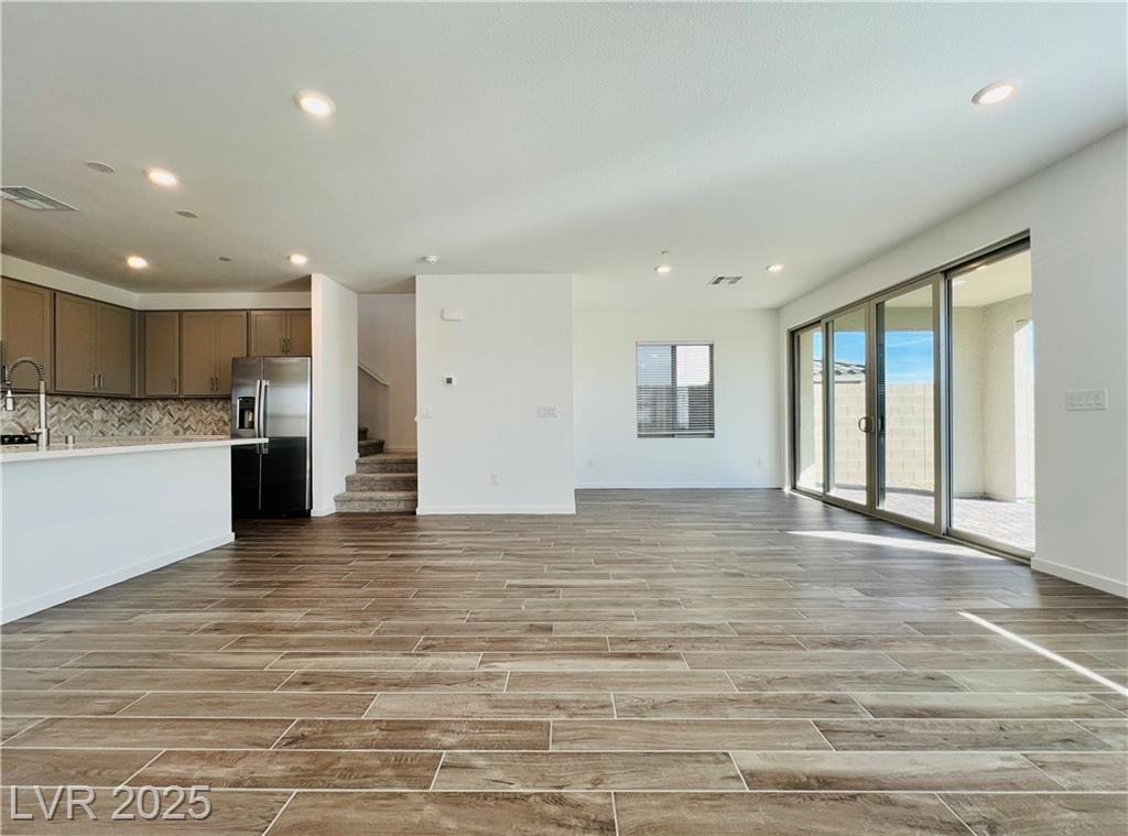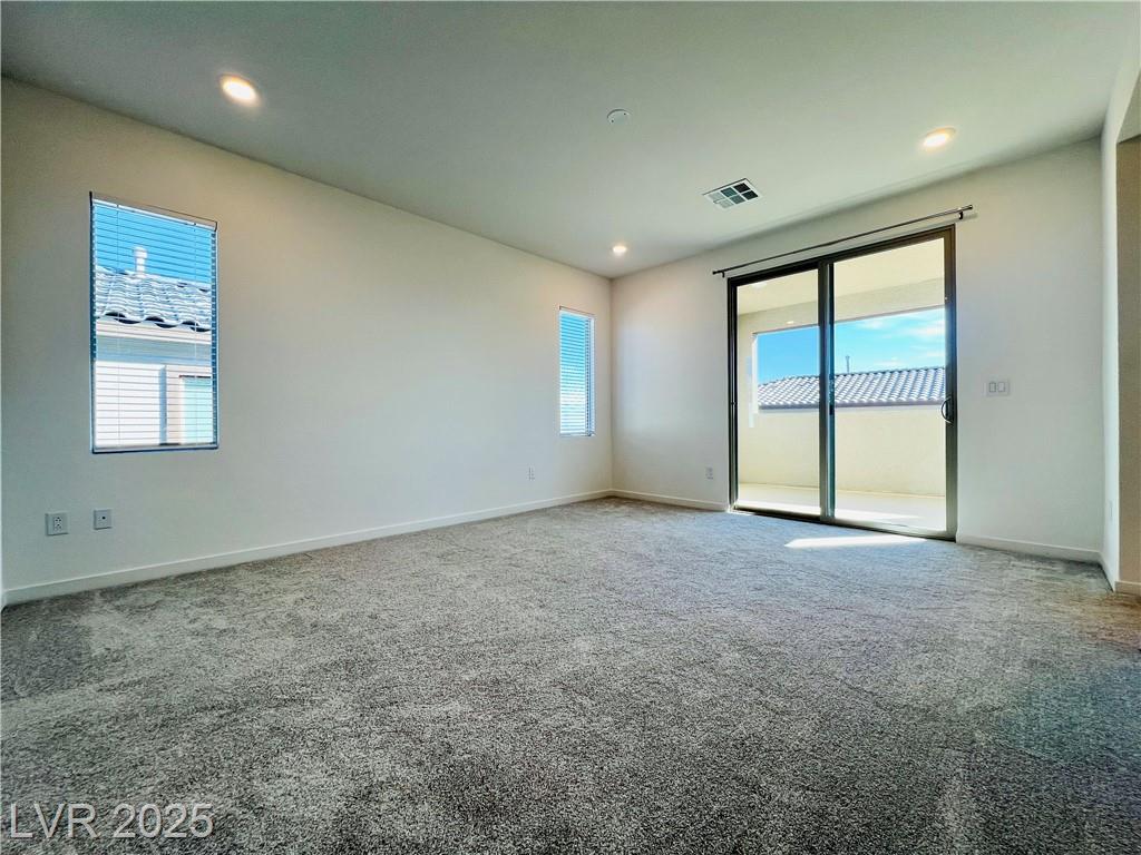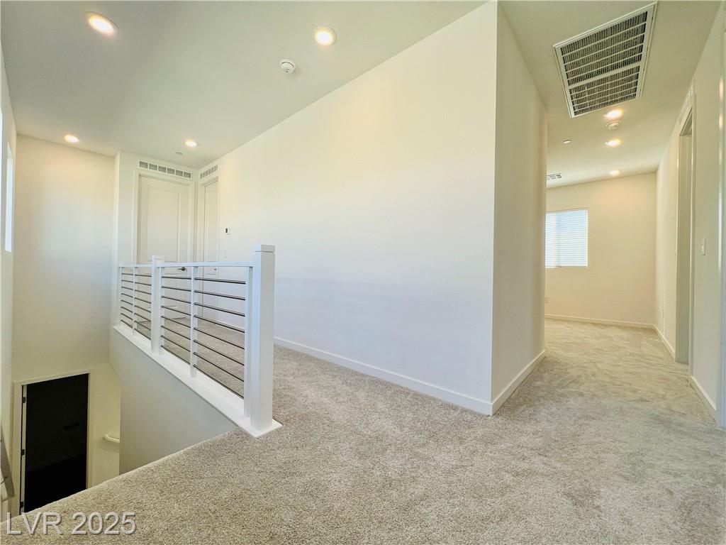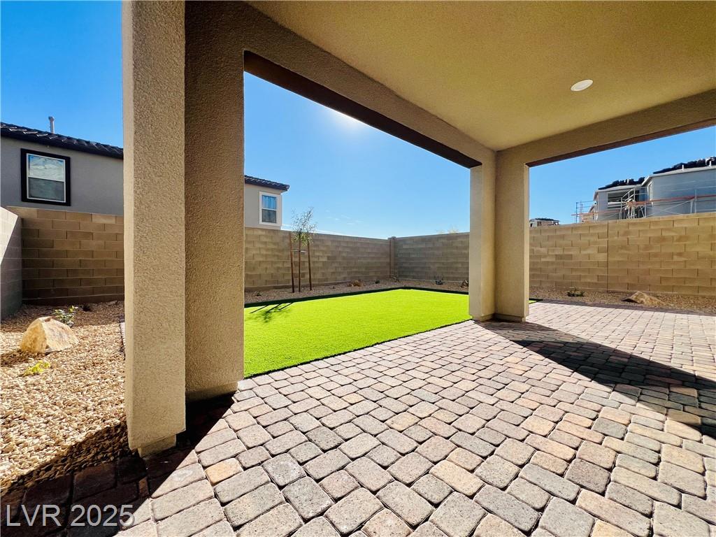 Stunning 4-bedroom, 2.5-bathroom home with a loft, located in the vibrant city of Summerlin. This brand-new build is a must-see, a desirable feature. Step inside to discover a spacious, inviting living area with recessed lights that create a warm and welcoming ambiance. The kitchen is a chef's dream, equipped with sleek stainless steel appliances that elevate your cooking experience. Enjoy the convenience of a sliding patio door that leads to a covered patio, perfect for outdoor entertaining or simply enjoying the fresh air. The back deck features beautiful pavers, adding a touch of elegance to your outdoor space. The 2.5-inch faux wood blinds provide privacy and style throughout the home. A loft upstairs offers plenty of room for a home office and play area. This home is ideally situated near shopping and dining options, ensuring you have everything you need within reach. Please NOTE-(Rent Includes: Rent $3900, Trash $24, Sewer $26, Landscape $100)