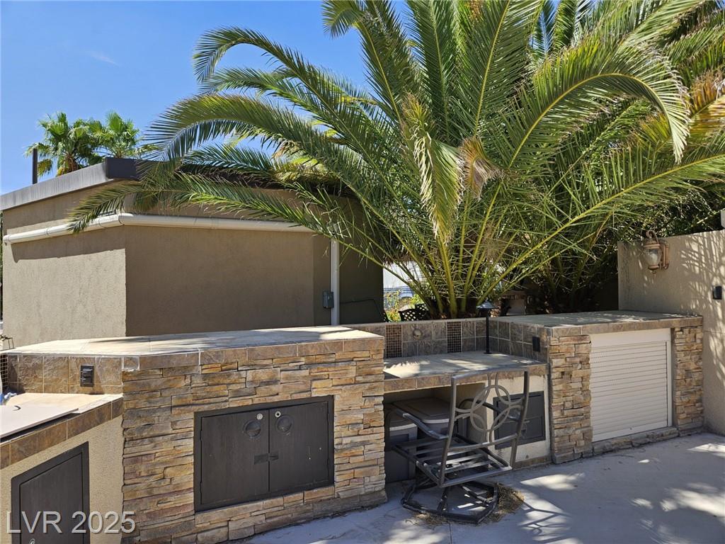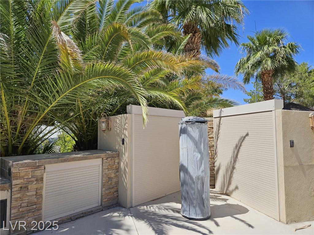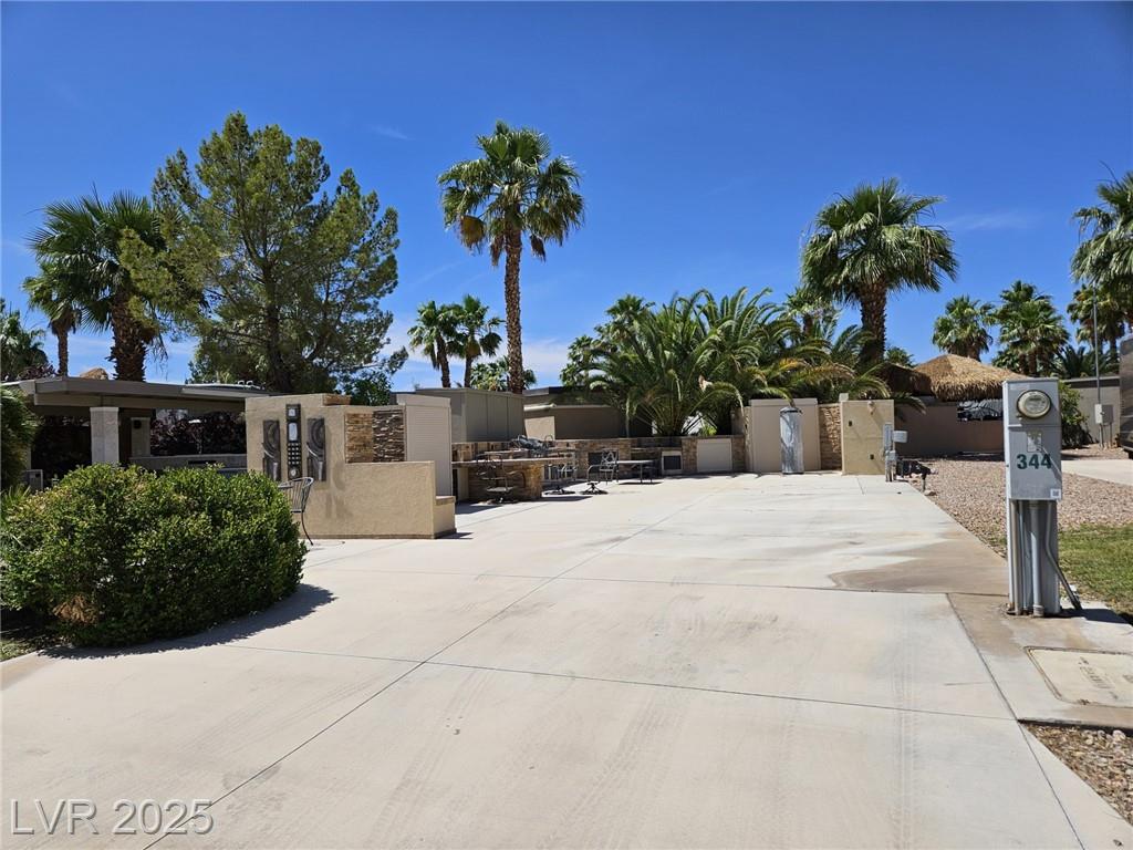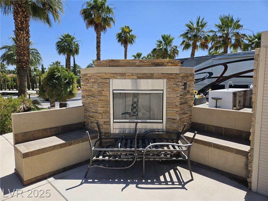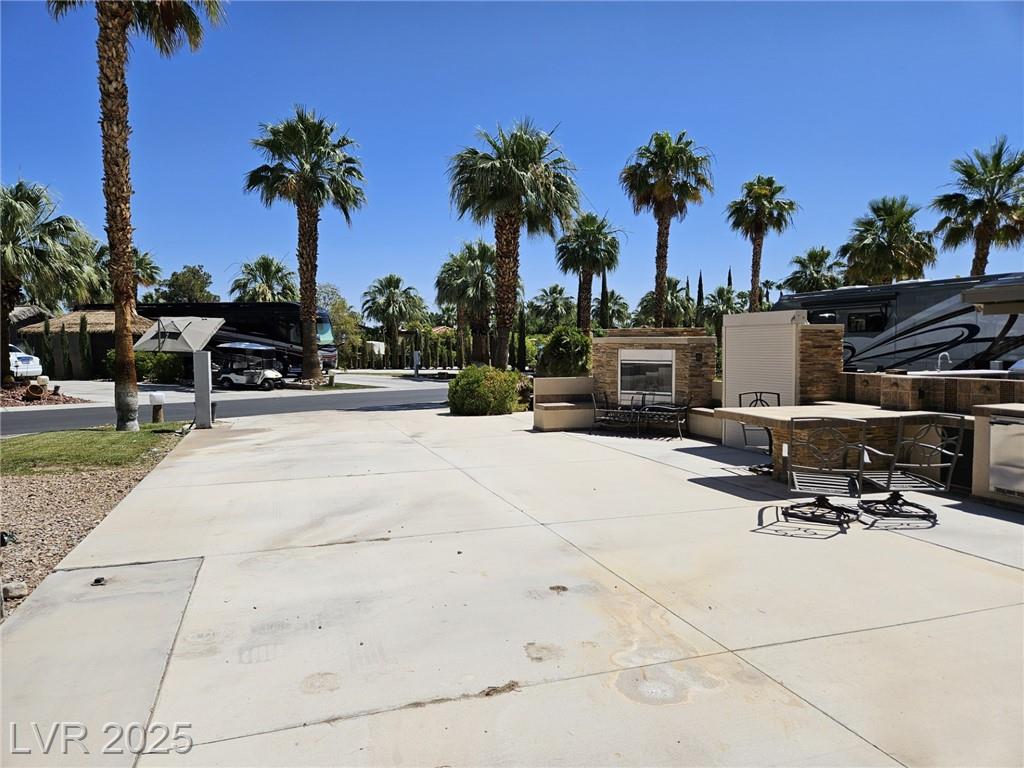 Located within the Class A Las Vegas Motorcoach Resort, this fantastic north facing site has a lot of potential with a built-in table for dining, outdoor kitchen, TV area, fireplace, and large double storage. Priced to sell quickly!
