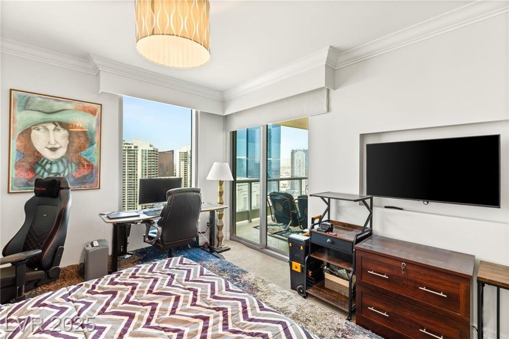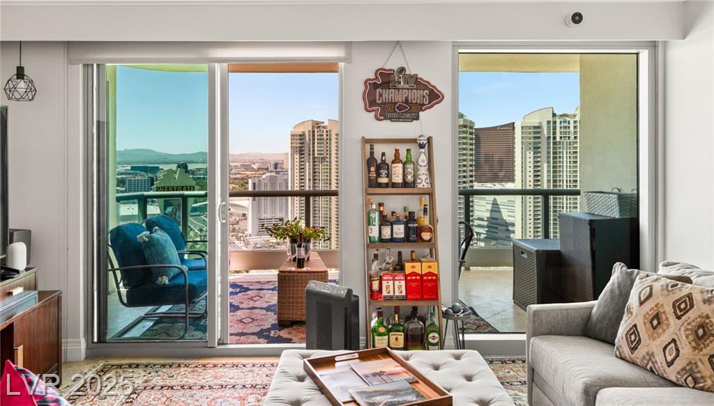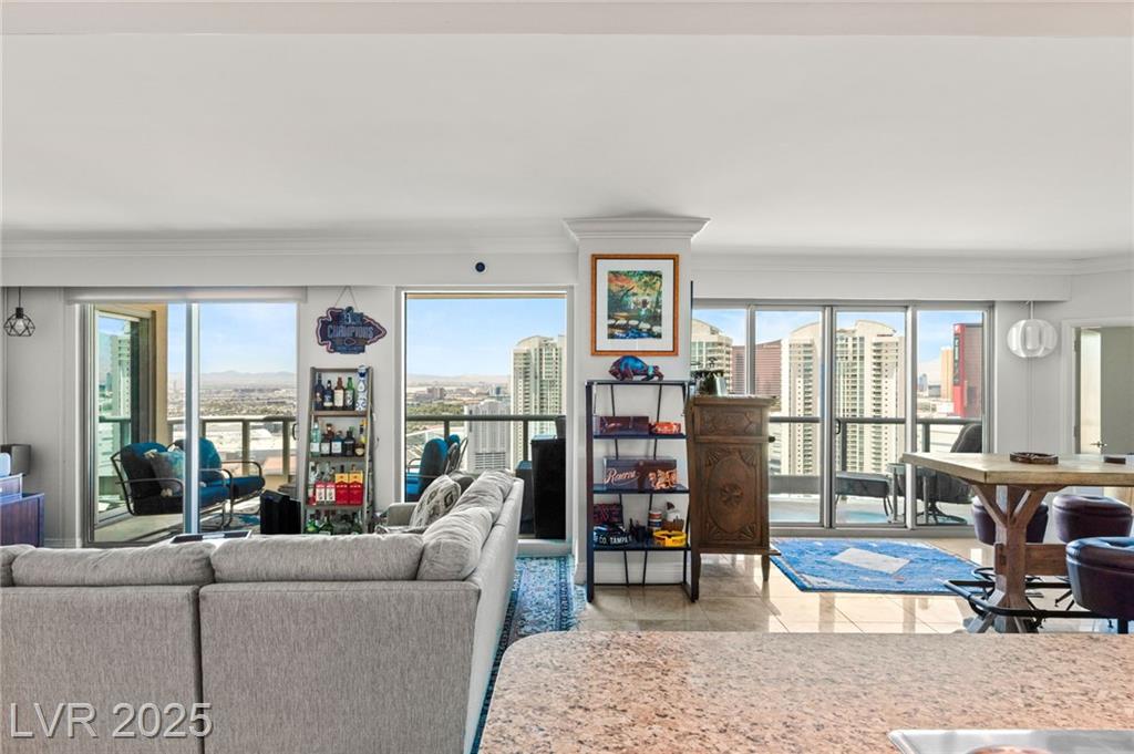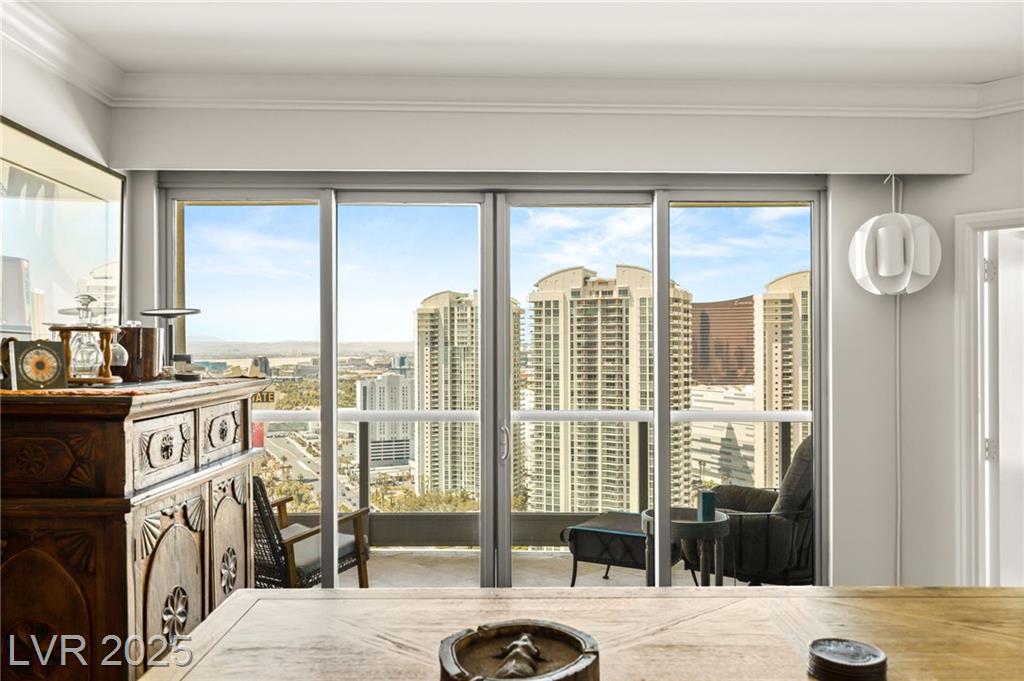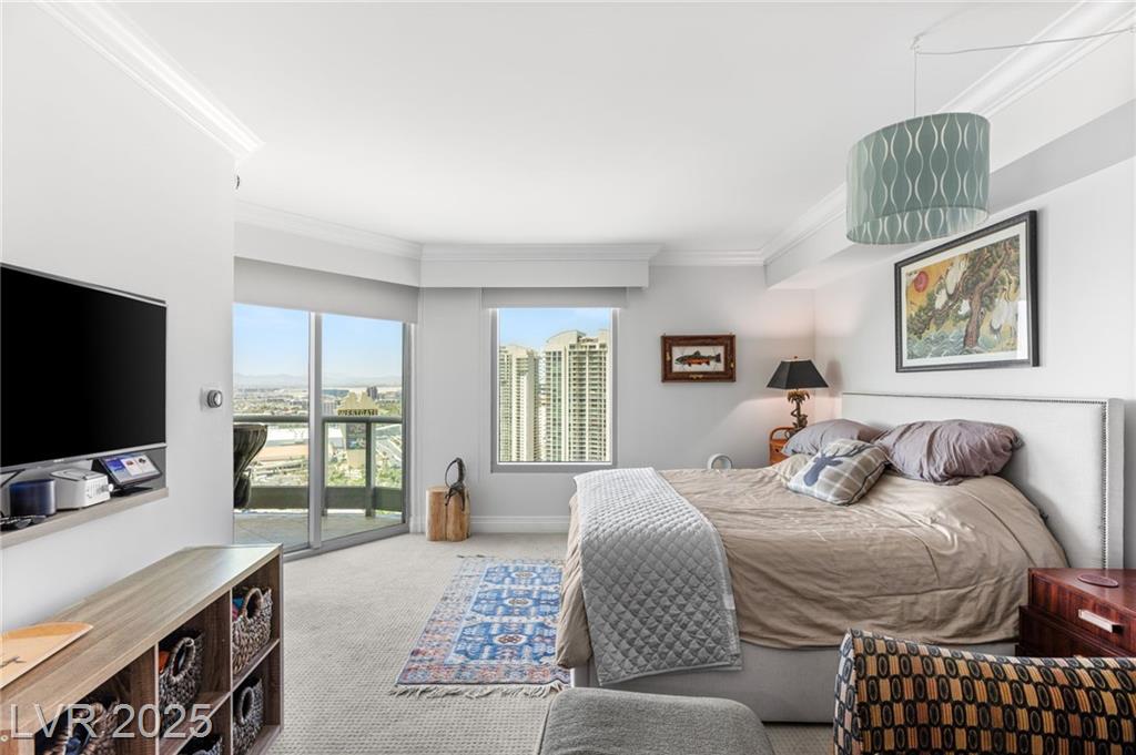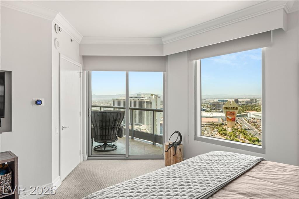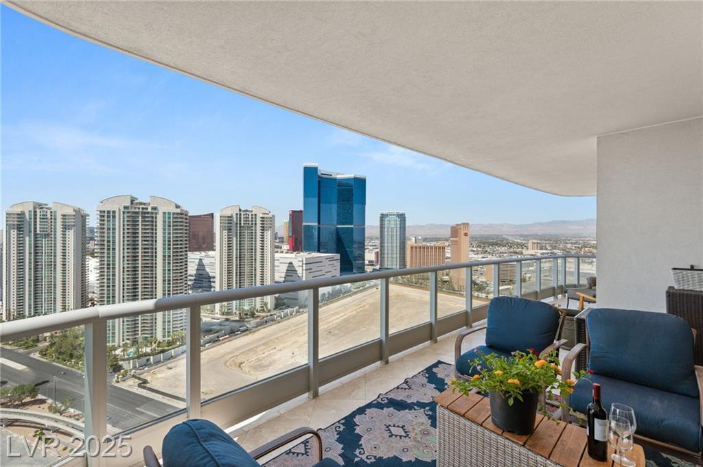 Perched high above the city, this coveted 2-bed, 3-bath luxury residence at Turnberry Towers boasts one of the most desirable floorplans in the building. The expansive terrace spans the full length of the unit with direct access from every room—perfect for indoor-outdoor living. Floor-to-ceiling windows frame panoramic views of the Las Vegas Strip, surrounding mountains, city lights, and the iconic Las Vegas Country Club. The open-concept living area has been expanded for even more flow and natural light. Both bedrooms offer en-suite baths, and a large laundry room includes custom storage and a wine rack. Turnberry Towers offers resort-style amenities, 24-hour security, valet, concierge, and more. A rare opportunity to own one of the tower’s most sought-after residences.