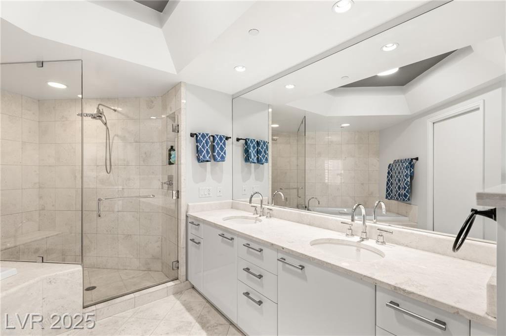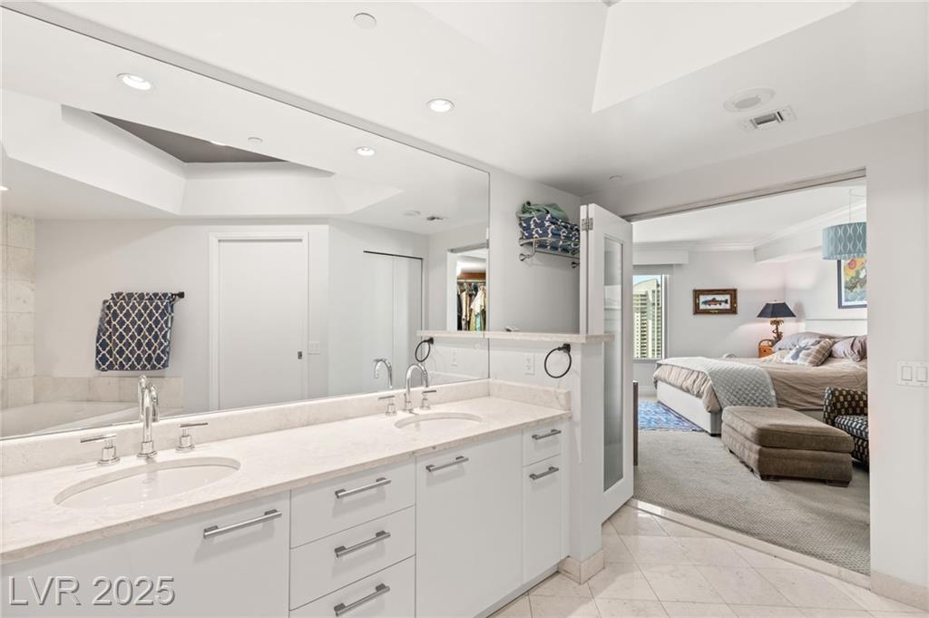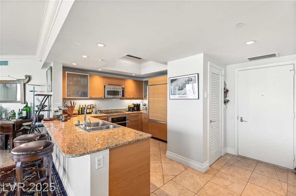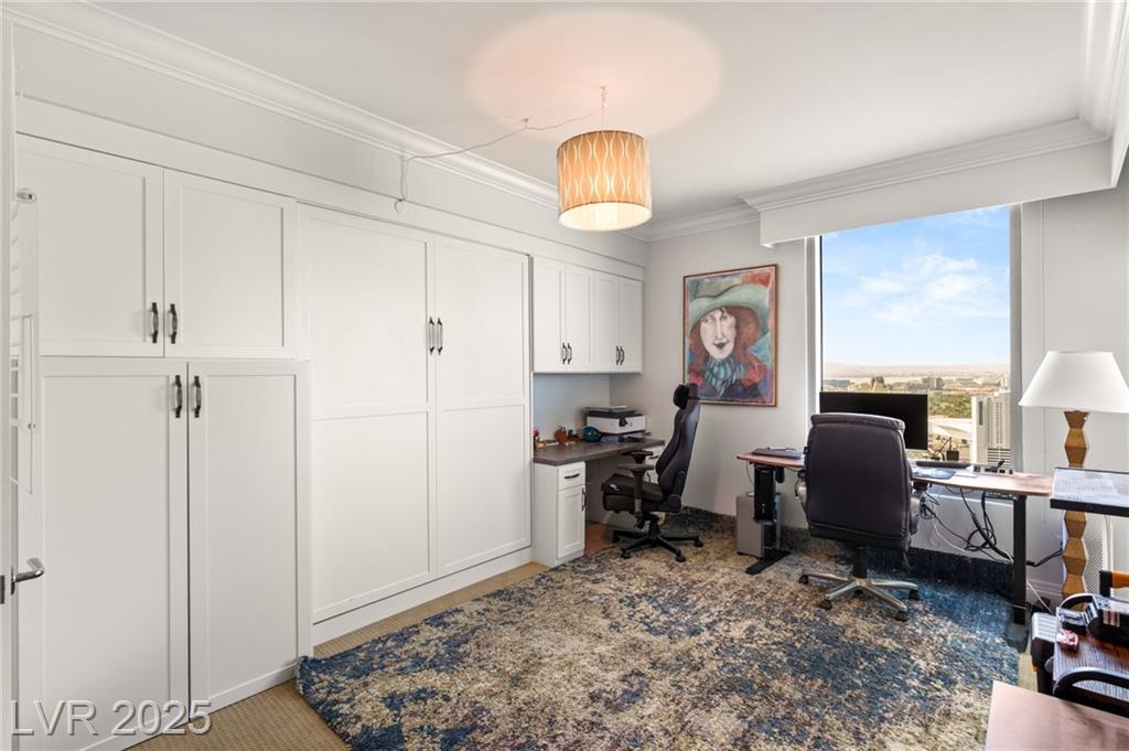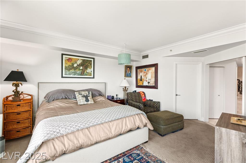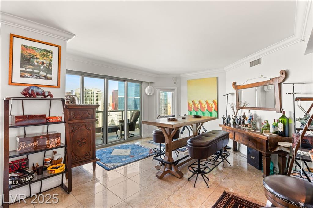 Perched high above the city, this coveted 2-bed, 3-bath luxury residence at Turnberry Towers boasts one of the most desirable floorplans in the building. The expansive terrace spans the full length of the unit with direct access from every room—perfect for indoor-outdoor living. Floor-to-ceiling windows frame panoramic views of the Las Vegas Strip, surrounding mountains, city lights, and the iconic Las Vegas Country Club. The open-concept living area has been expanded for even more flow and natural light. Both bedrooms offer en-suite baths, and a large laundry room includes custom storage and a wine rack. Turnberry Towers offers resort-style amenities, 24-hour security, valet, concierge, and more. A rare opportunity to own one of the tower’s most sought-after residences.