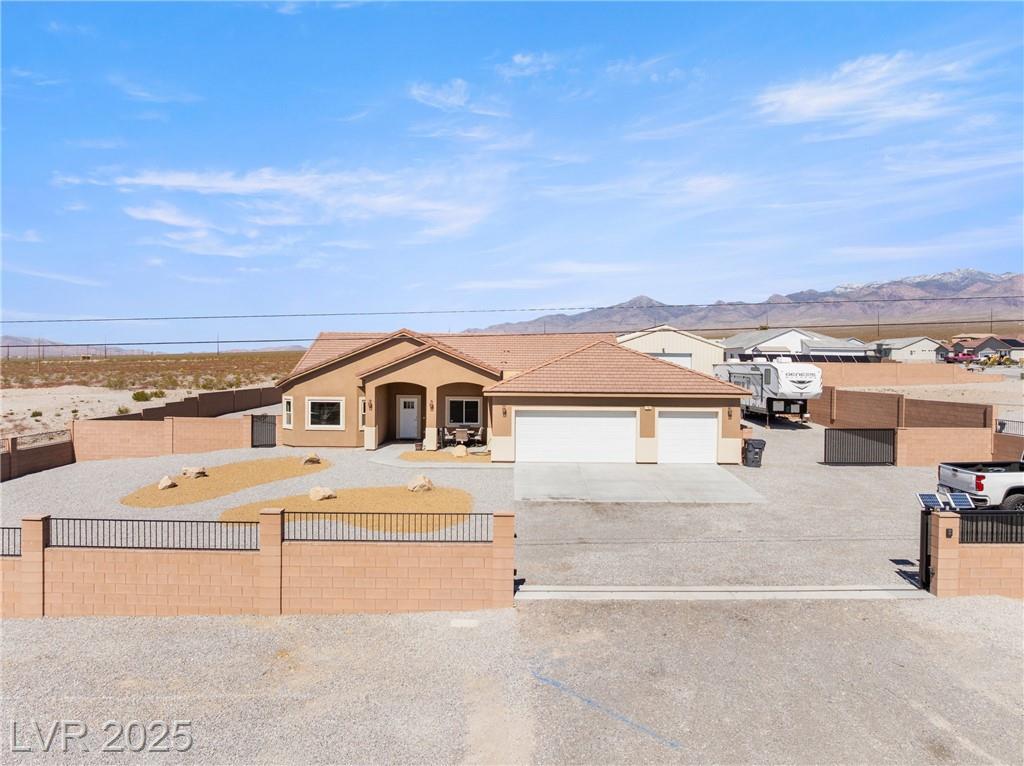 A private, future-ready retreat where upscale living meets sustainable design-modern comfort, eco-conscious features, and versatile functionality on a fully landscaped ¾-acre lot. In the main residence 2,215 square feet of open living space with 3 generously sized bedrooms and 2 full bathrooms. There's adtl 1100+ sqft in the 2-story 1bed/2bath mil/caregiver's quarters and attchd 1800sqft shop, complete with its own private entrance. Both structures are powered by 30+ owned solar panels, delivering significant utility savings and supporting an eco-friendly lifestyle while enhancing energy efficiency but also adding long-term value and peace of mind. The property has been reinforced with commercial-grade storm drainage and is already prepped and plumbed for a koi pond or lazy river and pool, giving you a head start on creating your ultimate backyard oasis. This estate also caters to travelers and adventurers with two full RV hookups, dual electric entrance gates, and a separate RV gate.