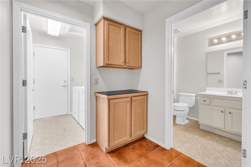 Well maintained townhome with beautiful terracotta tile floors through-out except bathrooms and kitchen, beautiful stained-glass window in the front entrance. Washer/Dryer/refrigerator all stay with the house. Large corner lot with huge concrete courtyard, security screen door and cement covered patio backyard. Sun City Summerlin is a 55+ community by Del Webb in Las Vegas, Nevada. Part of the Summerlin master-planned community, this Sun City neighborhood is nestled within the Spring Mountain Range at an elevation of 3,000 feet. 7,779 attached and single-family homes make up Sun City Summerlin. 34 different amenities to this beautiful community.