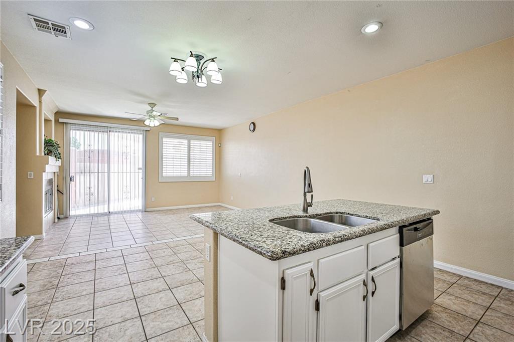 Nice single story house with 3 bedrooms, 2 bathrooms in nice southwest neighborhood. Laminate wood and tile floor throughout. Shutter window treatments. Granite countertop and tile backsplash in kitchen, stainless steel appliances, island. Convenient central location. Minutes to shopping and the strip. Low HOA fee.