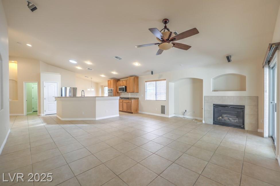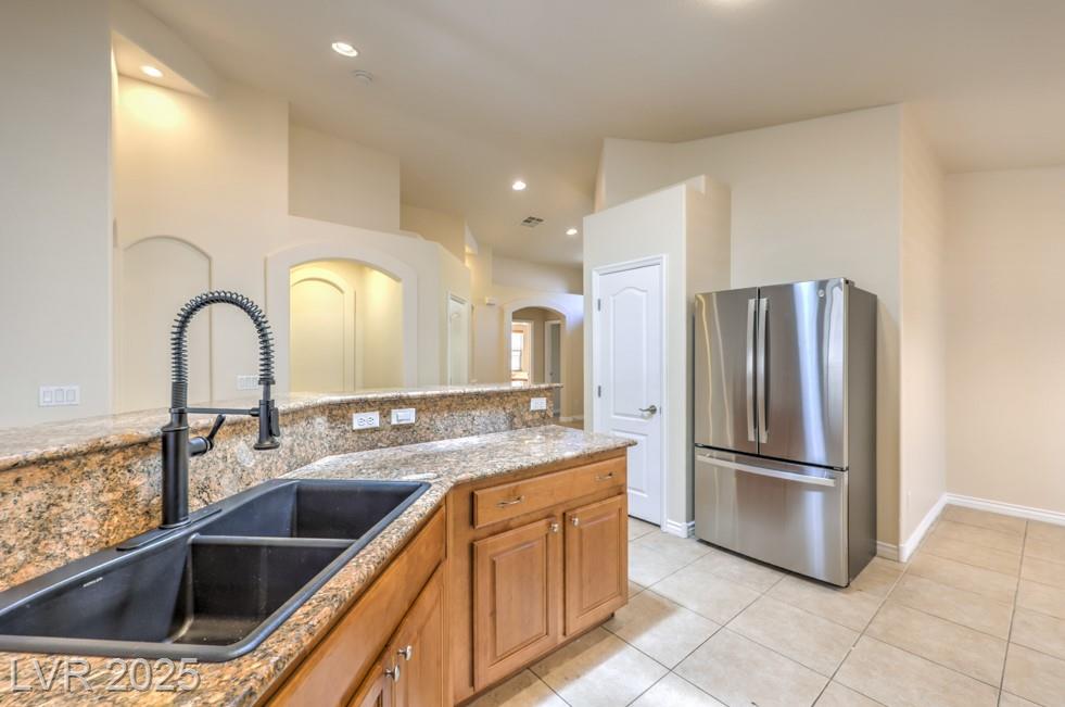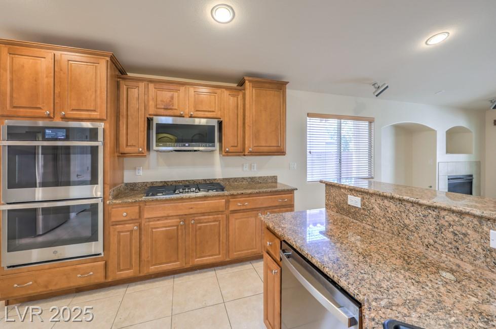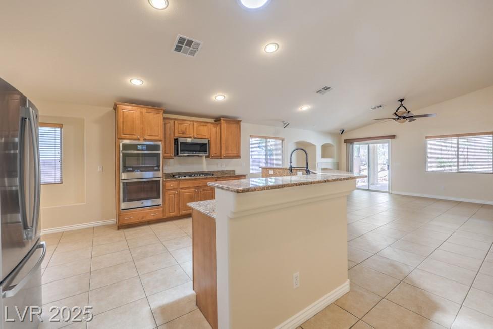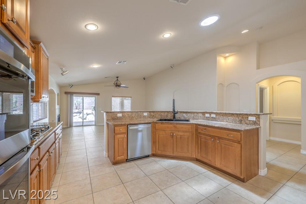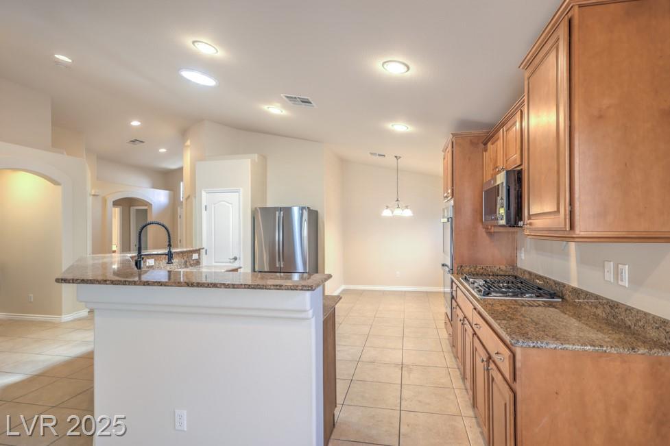 Beautiful single-story home located in a prestigious guard-gated community within Mountain’s Edge. The open floor plan boasts vaulted ceilings and a spacious great room filled with natural light. The kitchen features brand-new appliances, granite countertops, a large island with breakfast bar, and a sun tube for added brightness. Mature desert landscaping enhances both the front and back yards, while the backyard offers a covered patio—perfect for relaxing or entertaining.