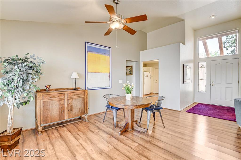 Charming 2-bed, 2-bath single-story patio home with 1196 SF in the age-qualified Sun City Summerlin community. Features include a spacious living/dining room with pot shelves and abundant natural light, and a kitchen with a window overlooking the entry courtyard. Bedrooms are separated for added privacy. High-quality wood laminate flooring runs throughout all living areas. The 2-car garage offers a laundry tub and extra storage. Sun City Summerlin includes golf courses, club houses, restaurants, exercise and meeting rooms, plus a very active social calendar. City Summerlin includes golf courses, club houses, restaurants, exercise and meeting rooms, plus a very active social calendar. Seller is highly motivated and is open to assisting with buyer costs, including the NORA, for the right offer. HOA covers exterior paint, landscape, and roof maintenance. Don’t miss this great opportunity! Sun