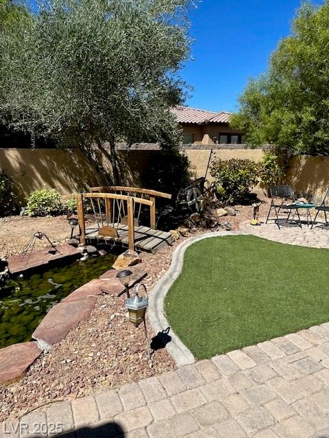 Beautiful 3 bed 2 bath home in Guard Gated Southern Highlands Golf Community. The property boasts a charming and well maintained exterior, with lush green lawn and lovely landscaping. The kitchen is equipped with sub-zero built in fridge. The primary is off the back of the house, while other bedrooms are located towards the front. The primary has bathtub and separate shower, double sink and walk in closet. Backyard has patio, pond, and mature landscaping.