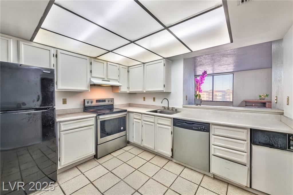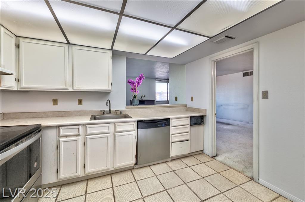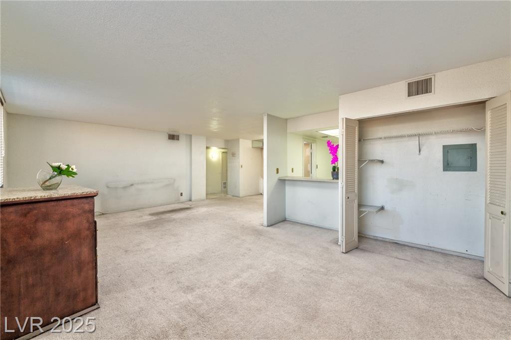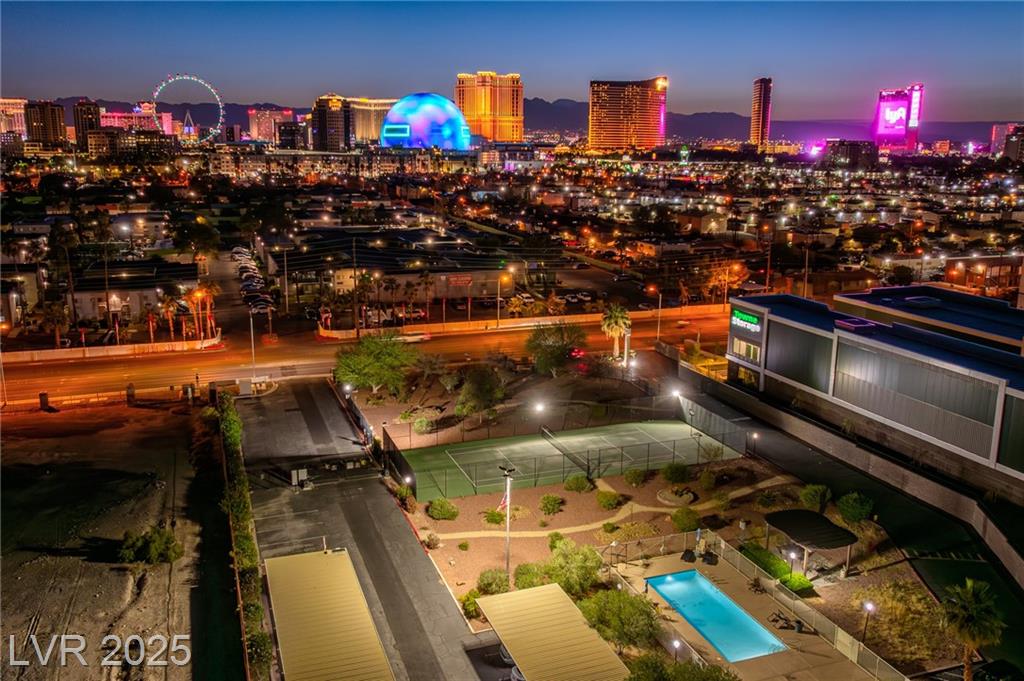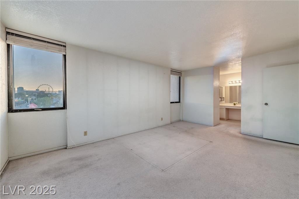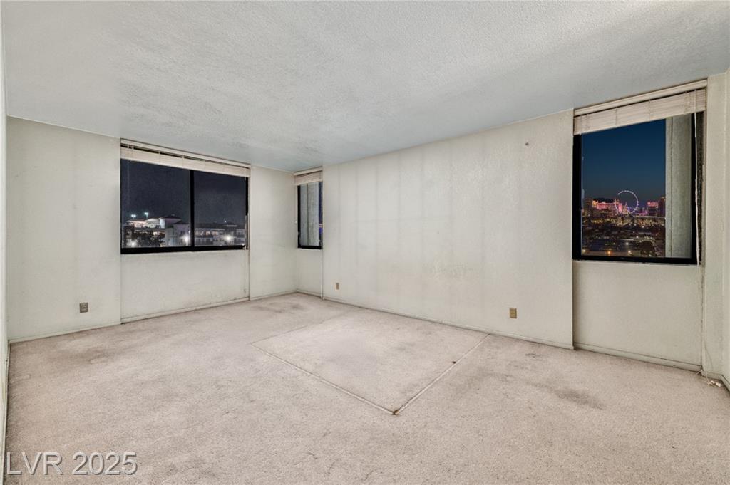 EXCELLENT OPPORTUNITY! Unbeatable price on highrise condo with tons of potential and GORGEOUS DIRECT STRIP VIEWS! This highly desirable end-corner unit is specious and has open floorplan with large living room with vaulted ceilings, lot's of natural light, two good size bedrooms and two baths. Amazing views of the famous Las Vegas Strip, Swimming Pool, Sphere and Ferris Wheel directly from your Primary Bedroom windows. Building is recently renovated and has great amenities to include fitness room, movie theater, ping pong table, outdoor BBQ area, tennis & basketball courts. Prime location in center of town with walking distance to UNLS, the Strip, world class restaurants and shows and just 5 minutes drive to the Harry Reid Airport. ***SOLD AS-IS*** Ready for your improvements! Great investment opportunity.