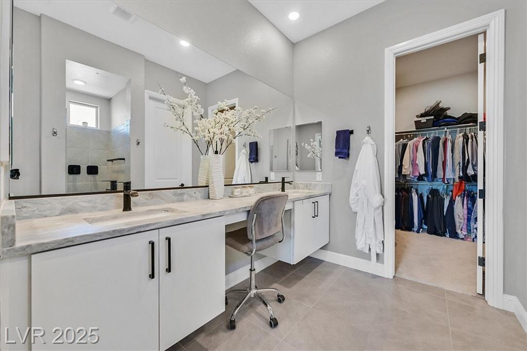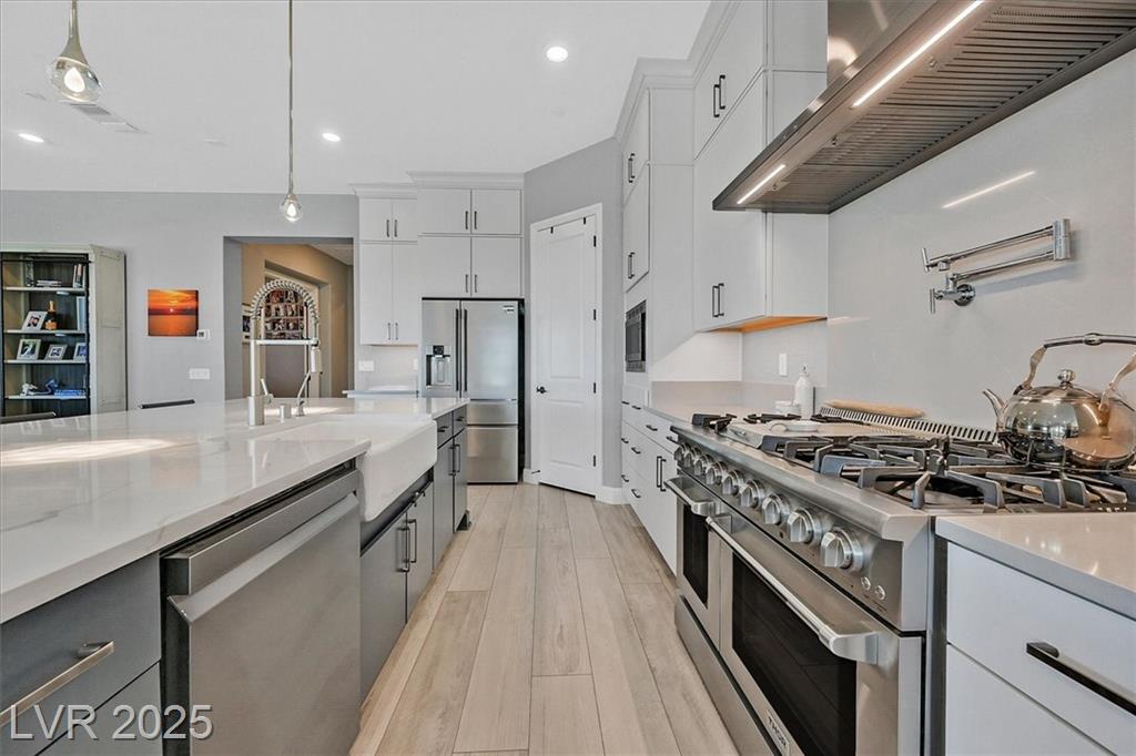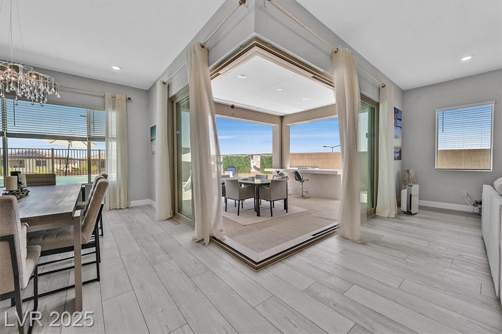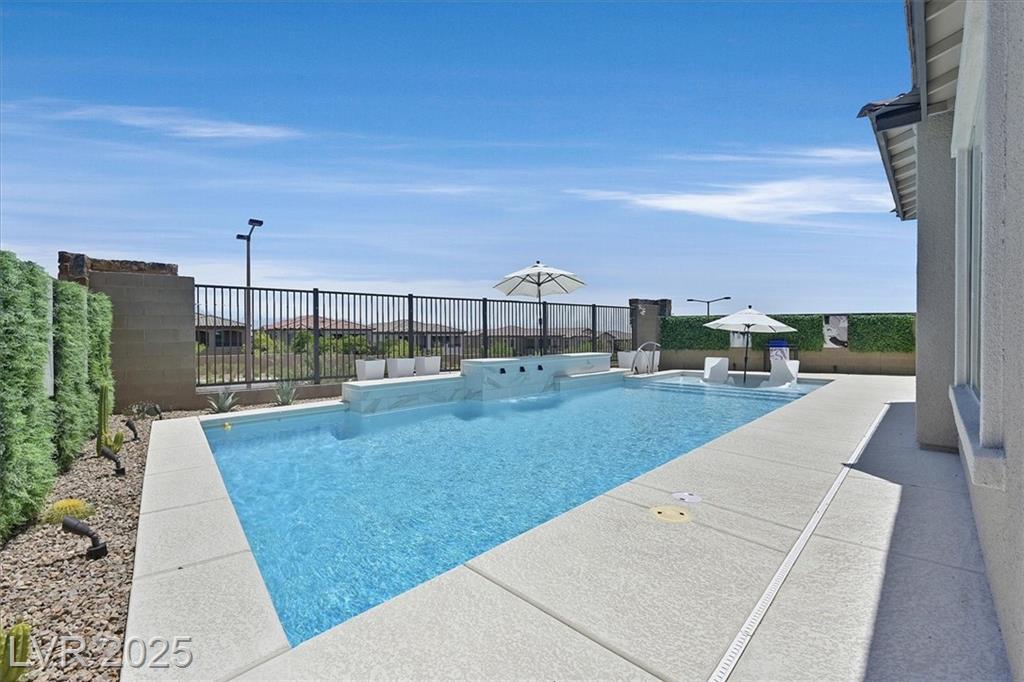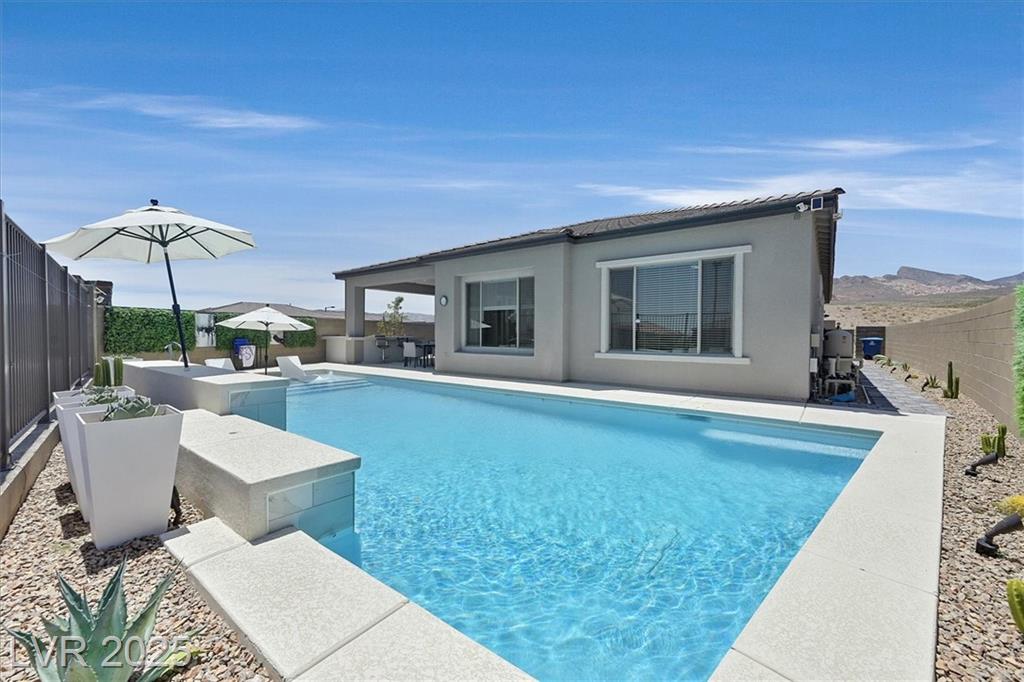 Experience elevated single-story living in this stunning home, nestled on an ultra-private cul-de-sac in the gated Foxtail community. With over $300K in upgrades, this residence blends luxury and function with 4 bedrooms, 3.5 baths, a den, and seamless indoor-outdoor flow via stackable corner sliders. The home gives bedrooms 2 & 3 a multi-gen-esque feel where you can close the hall door leading to the rooms and make it your own living area complete with a full bath. The chef’s kitchen features a Thor 6-burner range, griddle, pot filler, and farm sink. Enjoy sleek tile flooring, an electric fireplace, and a Ring security system with 5 cameras. The backyard is your personal resort—complete with a luxurious pool, BBQ build-out, and fire pit lounge area, perfect for hosting or unwinding with stunning mountain views. **Includes a rare second parcel, expanding the lot by .10 acres and is the ONLY home in the cul-de-sac.